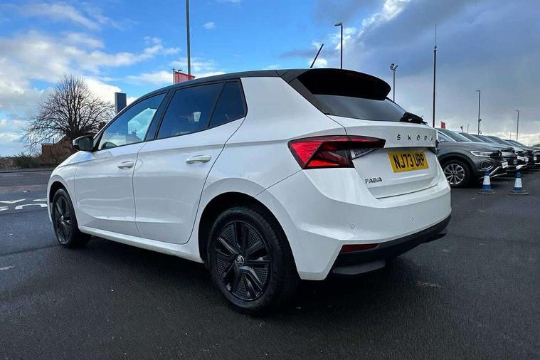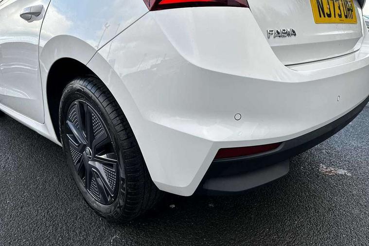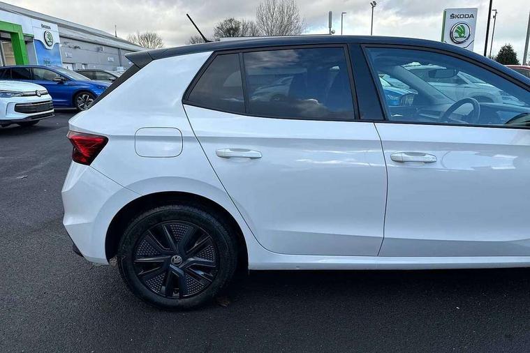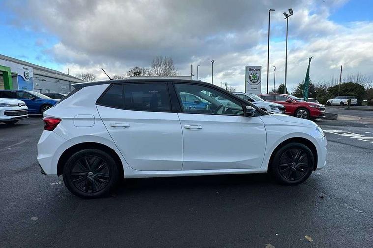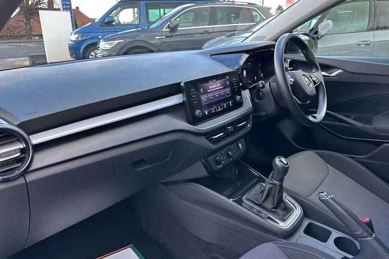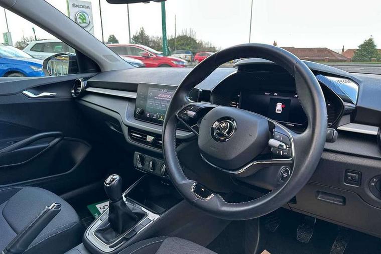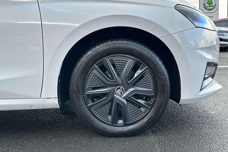 Bluetooth connection, Driver alert system - DAS, Electromechanical power steering, Exterior temperature gauge, Lane assist including road edge detection, Service interval indicator, Virtual cockpit with 10.25" colour display, 2x USB-C in the front (for data transmission and charging), 6 Speakers (4 in front and 2 in rear), Auxiliary socket for external MP3 player, Bolero radio with 8" colour display, DAB digital radio reception, Basic LED Headlights, Body coloured bumpers, Dimming rear view mirror with black frame, Door mirror integrated indicators, Electrically adjustable and heated door mirrors, Electrically adjustable front windows with function auto up/down, Front fog lights, Front window wiper intermittent control, Headlight range control - Automatic, Ice scraper in fuel cap, LED daytime running lights with coming and leaving home feature, Mechanical adjustable rear windows, Privacy glass, Rain sensor, Rear LED fog light, Rear side wing doors, Rear window wiper with washing nozzles, Roof mounted spoiler, SKODA tailgate lettering in chrome, Third brake light, 2 reading lights in front and 2 reading lights in rear, 3 rear headrests, Backrest split and folding, Central console with fixed cup holder and storage box, Chrome handbrake release button, Fabric upholstery, Gearshift knob/handle in leather, Grain satin black interior door handles, Hand brake lever handle in leather, Height adjustable drivers seat, Height adjustable front headrests, Height adjustable steering wheel, ISOFIX and TopTether anchorage points to the outer rear seats, ISOFIX and TopTether on the front passenger seat, Luggage compartment lighting, Pollen filter, Rear seat bench unsplit, Single front passenger seat, Storm grey headlining, Sun visors with mirror and airbag label on passenger side, Ticket holder, Umbrella in drivers door, 3-point height adjustable front seats belts with pretensioner and force limiter, Automatic warning lights in case of crash, Driver and passengers airbag with switch off function, e-Call+, ESC including ABS, MSR, ASR, EDS, HBA and XDS, Front and rear seat belt warning, FRONT ASSIST (AEB City and AEB Inter Urban), Front side airbags, Head airbags, One tone horn, Pedestrian protection, Three rear 3-points safety seat belts with pretensioner and force limiter including stop function for outer rear seat belts, Tyre pressure monitoring system, Anti-theft alarm system including immobiliser, interior monitoring, backup horn, and towing protection, Central locking with radio remote control, interior controls, SAFE function and 2 foldable keys, KESSY - Keyless engine start/stop, Anodized cross line upper decorative trim, Colour Edition air vents, Grain satin black central console cover, Grain satin black lower decorative trim, Satin black door and side trim panel in front, Anti-theft wheel bolts protection, Super-low rolling resistance tyres,