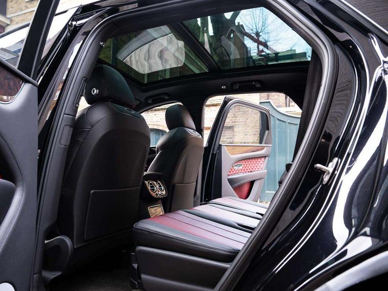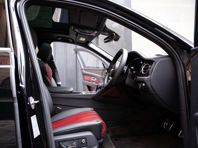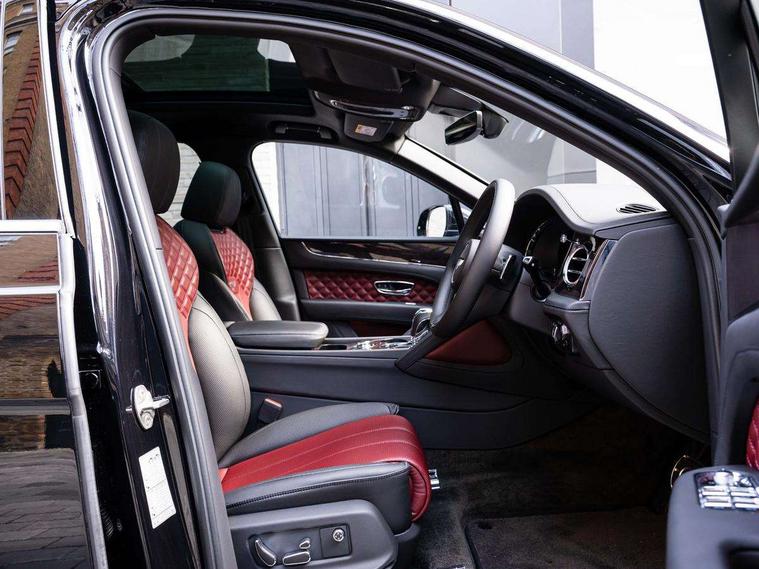 Apple car play, Blind spot warning, Bluetooth and Wi-Fi audio streaming, Brake pad wear indicator warning light, Collision prevention assist, Front/rear park distance control, Infotainment system with 12.3 high resolution touch screen retina disp + proximity sensors + advance music interface, single DVD/CD, 2 SD card slots, Navigation system, Park assist system, PAS, Power latching to all doors for easy entry, Reversing camera, Trip computer, 3 Chamber air suspension with continuous damping control, Battery charger, Dynamic ride height control + ground clearance function, 60GB hard drive, Acoustic and heat insulating front windscreen, Acoustic glass, Adaptive brake lights, Auto dimming rear view mirror, Black and Chrome bonnet and boot Bentley wing badges, Bright boot finisher, Bright wing vent with 12 in the black ribbed matrix, Deployable rear boot spoiler, Electrically adjustable door mirrors with heating, power fold, memory and dip on reverse functions, Full LED Matrix headlamps with high-beam assist, Full LED tail lamps, Heated rear windscreen, Lower front bumper grilles in black, Polished bright ware to side windows, Rain sensing windscreen wipers, Treadplates inner with "Handbuilt in Crewe, England" inserts, Twin oval exhaust finishers, 12v power sockets 2 in cabin and 1 in boot, 2 cupholders in front centre console, Bentley hide upholstery, Black seat belt buckles, Boot carpet in Beluga, Boot lid down lighters, Deep Pile Carpets to match upholstery, Electric tilt and reach adjustment steering column with memory and easy entry functions, Four occupant seating positions, Leather trimmed gearshift lever, Lockable cooled glovebox, Metal bulls eye vents with organ stop, Multi-zone automatic climate control - two zone, Rear headrests, Seats with straight fluted style hide cover, Single front armrest with fore/aft adjust and stowage, Ski hatch, Steering wheel gearshift paddles, Stowage to front doors, centre console and under centre armrest, Sunvisors with illuminated vanity mirrors, Two rear seats with centre stowage and cup holders including 12v socket and 2 USB charging points, Driver and passenger airbags, Electronic parking brake with drive away assist, Electronic stability programme with traction control, Anti lock braking System , Electronic brake force distribution, HBA + drag torque control, Electronic tyre pressure monitoring, Exit warning, Front vented 420x40mm disc brakes with Bentley branded black brake callipers, Multicollision braking system, Pre crash system, Pre sense braking system, Rear vented 380x30mm disc brakes with Bentley branded black brake callipers, Side airbags, Torque vectoring brake, Alarm, Bentley GPS advanced tracking system, Immobiliser, Keyless entry and start, 21" Summer tyres, Tyre inflation kit,