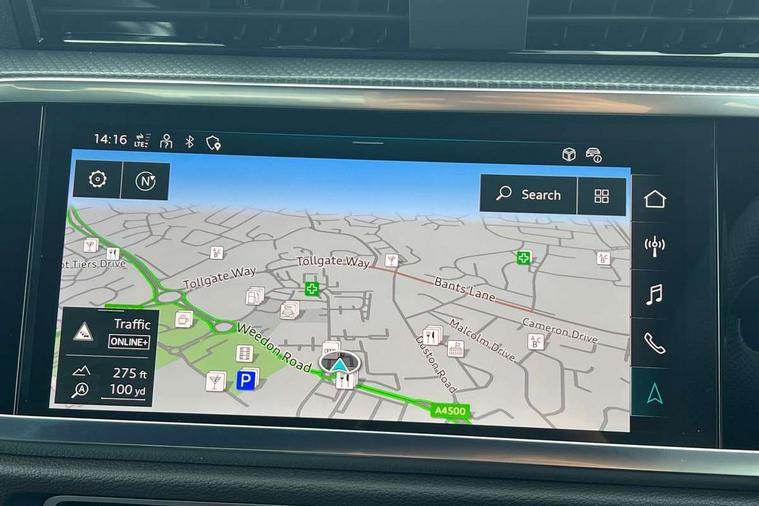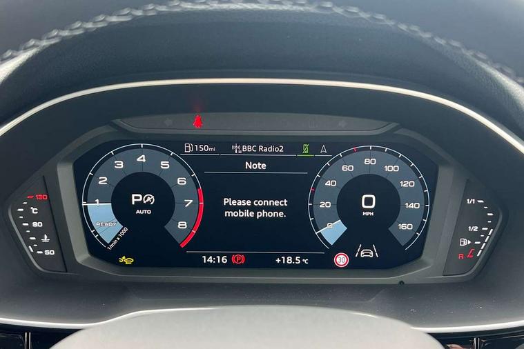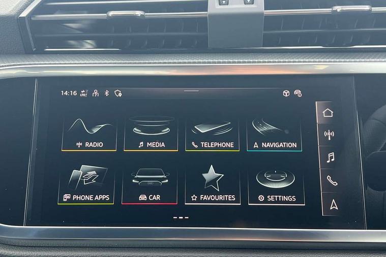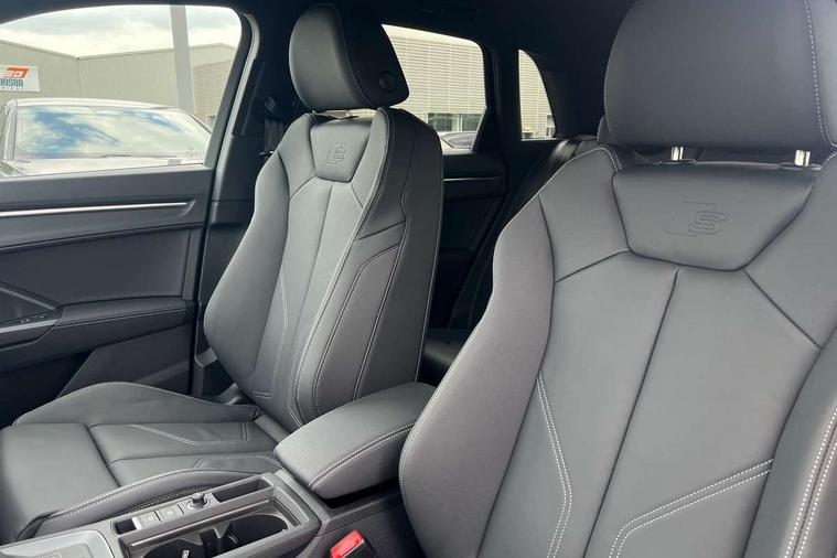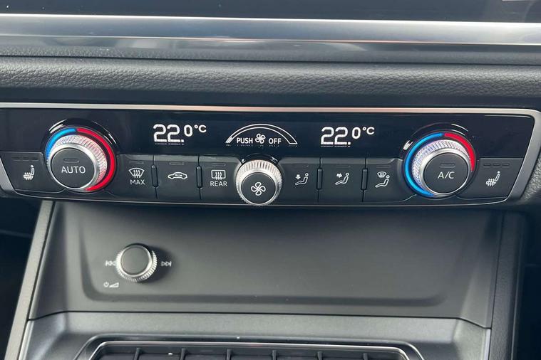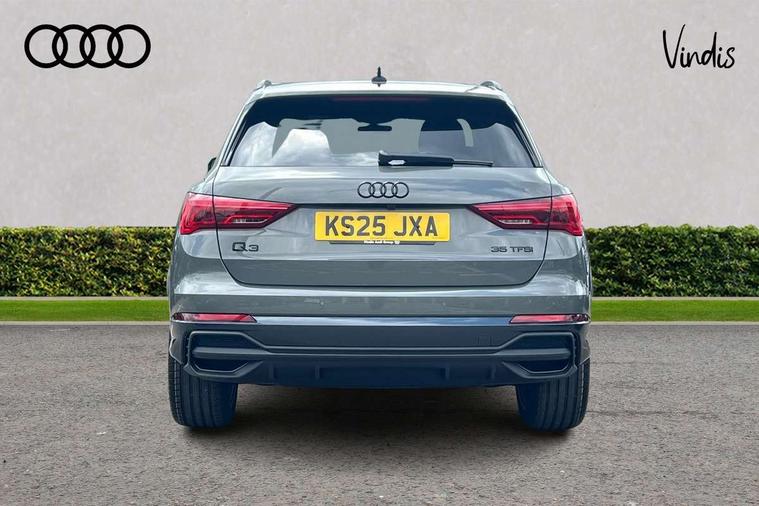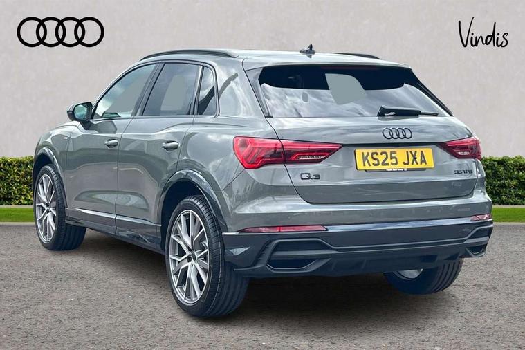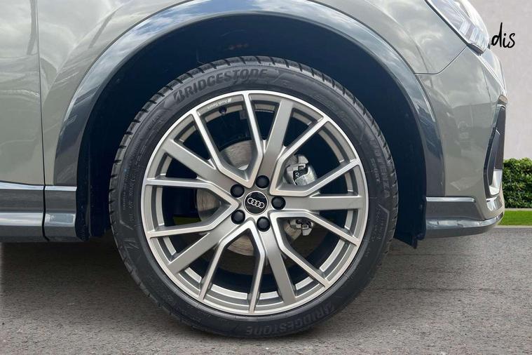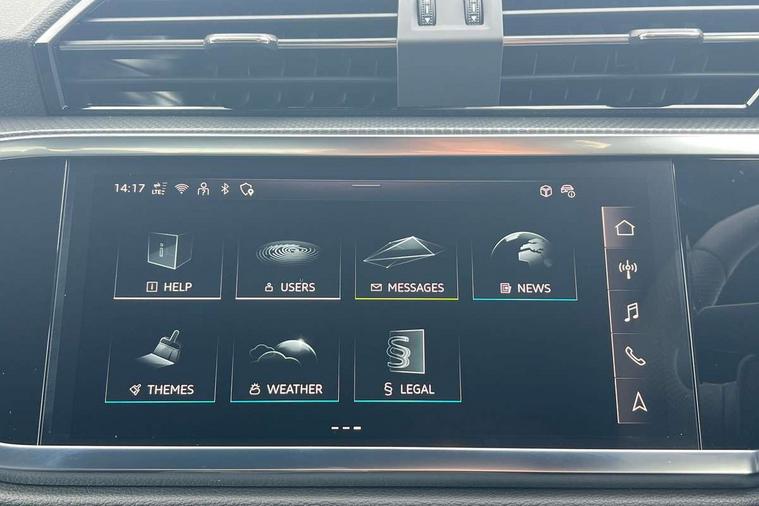 Amazon alexa Integration, Audi connect safety and service, Audi drive select, Audi lane departure warning, Audi Virtual Cockpit - 10.25" display, Bluetooth interface, Camera based traffic sign recognition, Distraction and Fatigue warning, Legal emergency call, MMI Navigation Plus with high resolution 10.1 inch touchscreen colour display, Power operated tailgate, Progressive steering, Service interval indicator, Smartphone interface includes wireless Apple carplay/Android Auto, Start stop system with recuperation, Voice control system with natural language interaction, Sports suspension, 2 USB-C ports with charge and data functions, 6 passive loudspeakers, DAB digital radio module, Acoustic windscreen, Audi Beam uses LEDs to project the Audi logo onto the ground as you exit your Q3, Auto dimming door mirrors, Auto dimming frameless rear view mirror, Black roof rails, Electrically folding, adjustable and heated door mirrors with integrated LED side indicators and kerb view function for passenger side, Front and rear electric windows, Front fog lights, Grille vertical bars in aluminium silver/Matt, High gloss black finish B and C pillars, LED Dynamic rear indicators, LED headlights with LED daytime running lights, LED rear lights, LED third brake light, Privacy glass dark tinted rear and rear-side windows (from B-pillar backwards), Rain and light sensors, Rear diffuser grille in grained matt black, Rear diffuser strip in matt anthracite black, Rear side wing doors, Rear wiper, S line bumpers in contrasting Manhattan grey, Variable front intermittent wipers, 12V socket in rear centre console, 3 seat bench in 2nd row, 40:20:40 folding with manual adjustment for 60:40 forwards/backwards position and backrest angle, Adjustable rear seat bench/backrest with centre armrest and cupholder, Black cloth headlining, Dual zone electronic climate control, Electric lumbar support, Front and rear black floor mats with contrast stitching in rock grey, Front and rear headrests, Front centre armrest, Height and reach adjustable steering wheel, Illuminated door sill trims with S logo, ISOFIX child seat mounting for front passenger with airbag deactivation and outer rear seat including top tether attachment point for outer rear seats, Manual front seats with height adjustment, Perforated leather gearknob, Single front passenger seat, Stainless steel luggage compartment sill finisher, Stainless steel pedals, Twin leather upholstery with front sport seats + S embossing, Black styling pack - Q3, Non smoking pack - Q3, 3x3 point rear seatbelts, 6 airbags - Driver, front passenger, curtain and side windows, Audi pre-sense front with pedestrain and cyclist recognition, Electrically operated child locks on rear doors, Electromechanical parking brake, Electronic stabilisation control including ABS, ASR and EDL, Front seatbelt reminder, Hill descent control, Hill hold assist, Pre sense basic, Seatbelt monitoring, Tyre pressure warning, Warning triangle and first aid kit, Anti theft wheel bolts, Immobiliser, Remote central locking, Thatcham approved category 1 anti theft alarm, Aluminium look interior elements, Detail dashboard around MMI touch colour display in glass look, black with surround in aluminium look, Leatherette door armrest, Piano black inlay,