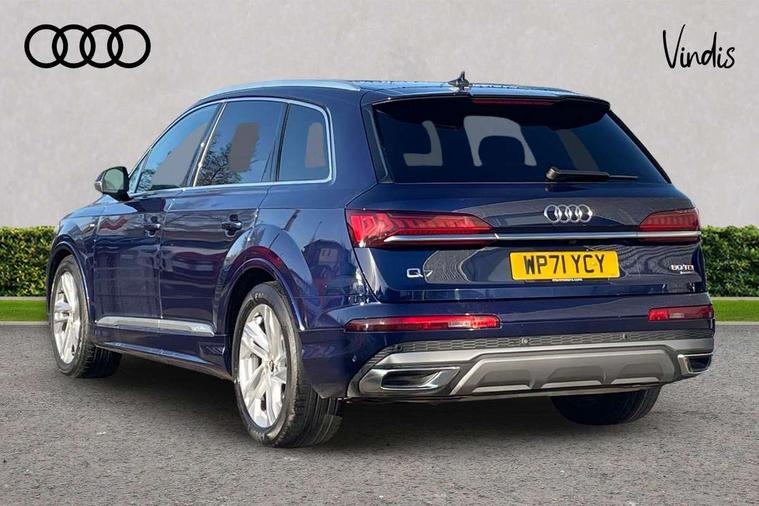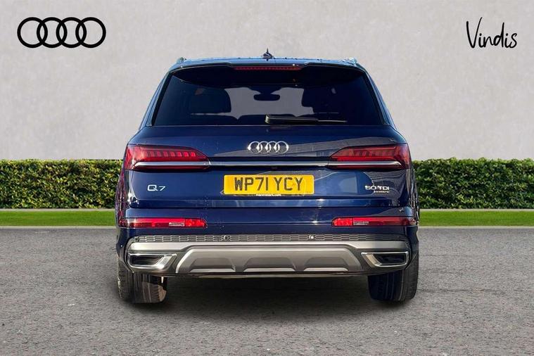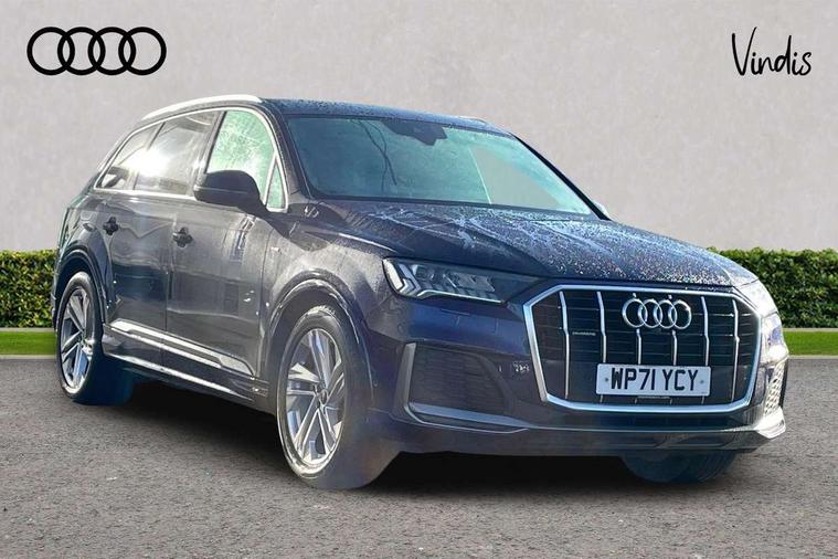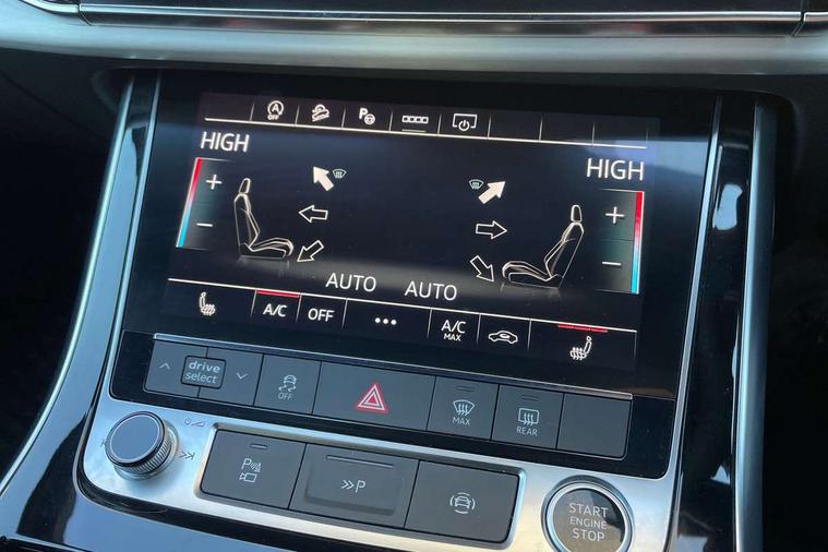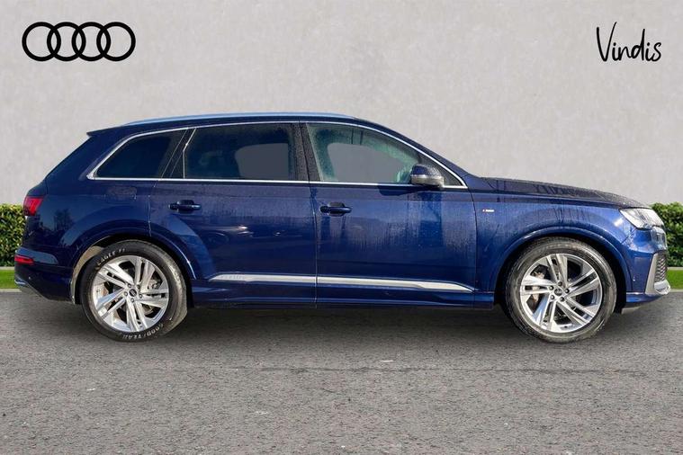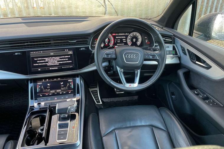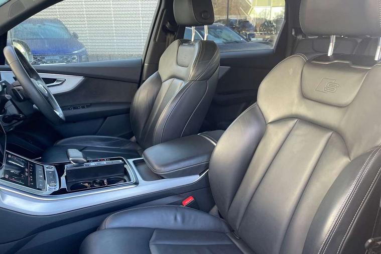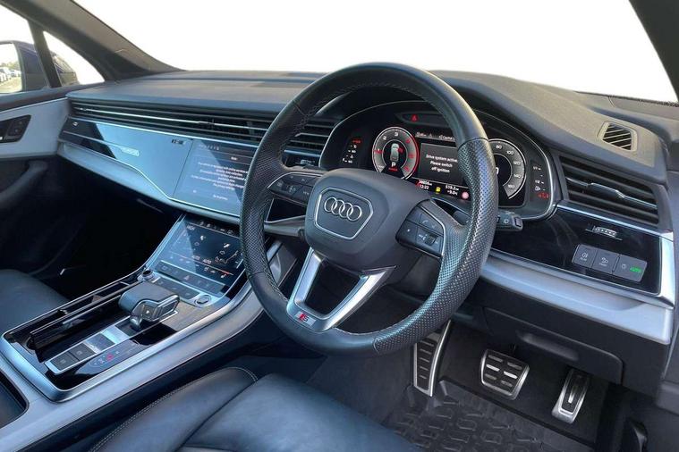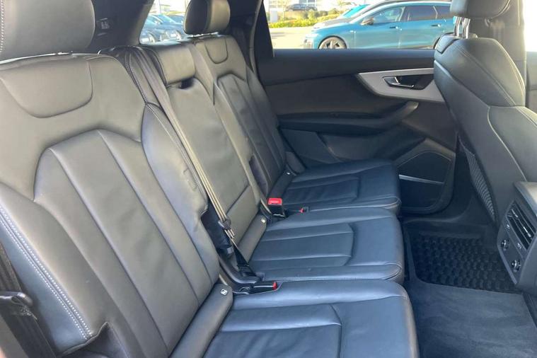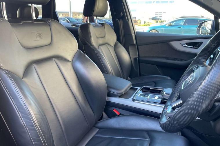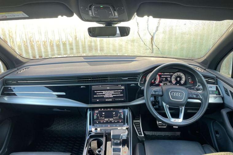 Audi connect safety and service (e-call), Audi connect with Amazon Alexa Integration, Audi drive select (Auto, Comfort, Dynamic, Efficiency, Individual, Off-road and All road), Bluetooth interface, Camera based traffic sign recognition, Electromechanical steering, MMI navigation plus with MMI touch screens includes 10.1" and 8.6" screens with haptic feedback, Natural voice recognition, Parking system plus with 360 degree display (front, rear and side sensors) - acoustic and visual park assist system, Power operated tailgate, Rear view camera, Smartphone interface includes wireless Apple carplay/Android Auto, Start/stop system, 48V Mild hybrid technology, Adaptive air suspension, Quattro all wheel drive with self locking centre differential, Audi music interface - front 2 USB-C ports with charger and data functions, Audi sound system with 6 channel amplifier, 180 watt amplifying capacity and 10 loudspeakers including subwoofer, DAB digital radio module, 3rd brake light, Aluminium roof rails, Aluminium window trim, Audi matrix LED headlights with dynamic front and rear indicators, Auto dimming frameless rear view mirror, Body coloured door mirrors, Electrically adj heated/folding + automatically dimming exterior mirrors with memory + automatic kerb side function for passenger side exterior mirror, Heat insulating glass in windshield, Integrated LED indications in door mirrors, LED daytime running lights, LED rear tail lights, Privacy glass - dark tinted rear and rear side windows from B-pillar backwards, Rear side wing doors, Rear wiper, S Line badge on wings, S line bumpers in full body colour paint finish, S line roof spoiler, S line styling side ventilation grilles and side skirts, 2 seat bench in 3rd row, 2 zone automatic climate control, 3 seat bench in 2nd row, 7 seat layout with ISOFIX points for the front passenger seat and rear passenger seat, Black cloth headlining, Comfort front centre armrest, Electric adjustable front seat with 4 way lumbar support, driver memory functionality, Folding rear seats, Front head restraints, Front/rear floor mats, Heated front seats, Illuminated door sill trims with S logo, LED interior ambient lighting, Luggage compartment cover, Luggage compartment sill protection in stainless steel, Rear head restraints, Single front passenger seat, Stainless steel pedals, Sunvisors with illuminated vanity mirrors, 3 point seatbelts on all rear seats, Audi pre sense front, Child locks on rear doors, Driver and front passenger, front side and curtain airbags, Electromechanical parking brake, Electronic Stabilisation Control (ESC) including ABS, ASR and EDL, Extended pedestrian protection measures, Hill hold assist, Seatbelt monitoring, Tyre pressure loss indicator, Warning triangle and first aid kit, Anti theft alarm, Anti-theft wheel bolts and wheel loosening detection, Keyless Go, Remote central locking, Darkened matt brushed aluminium inlays, Tool kit, Tyre repair kit,