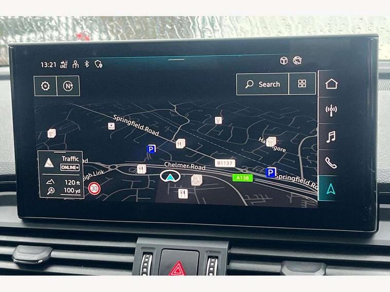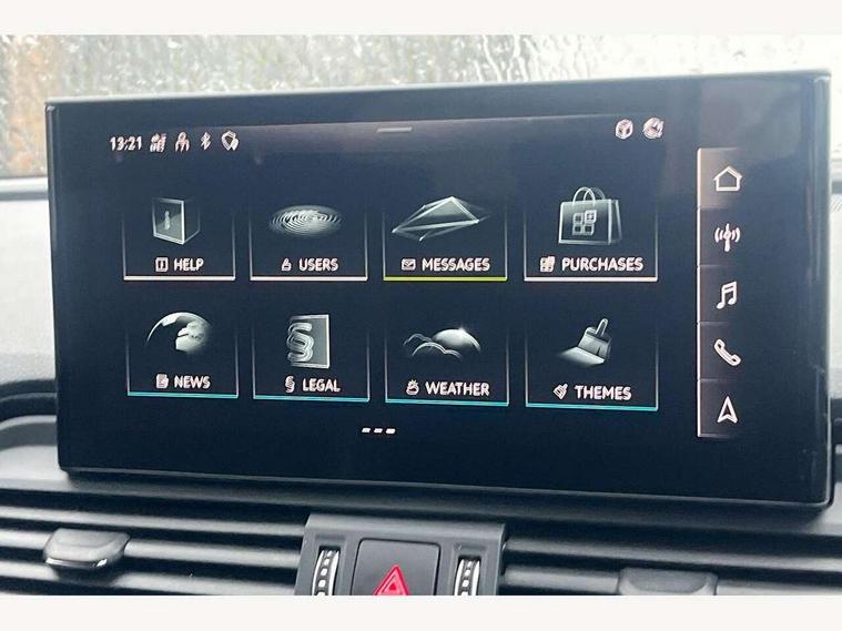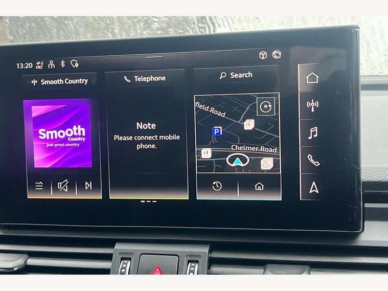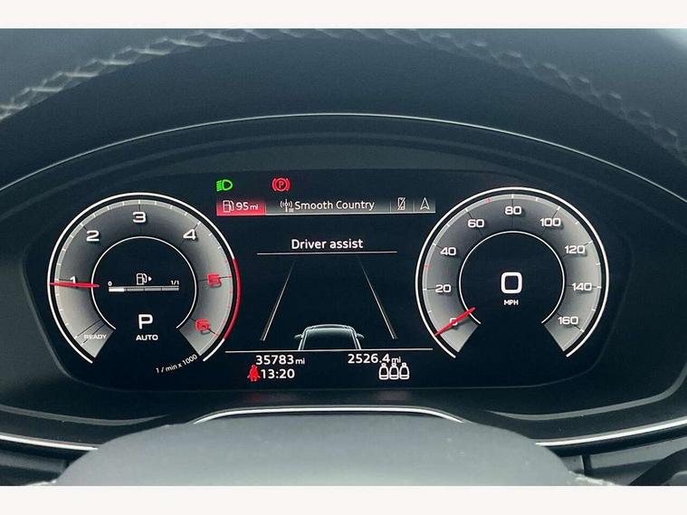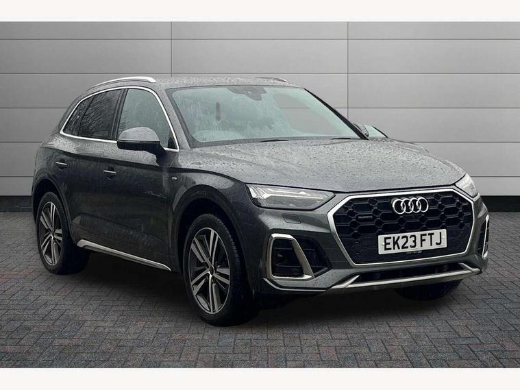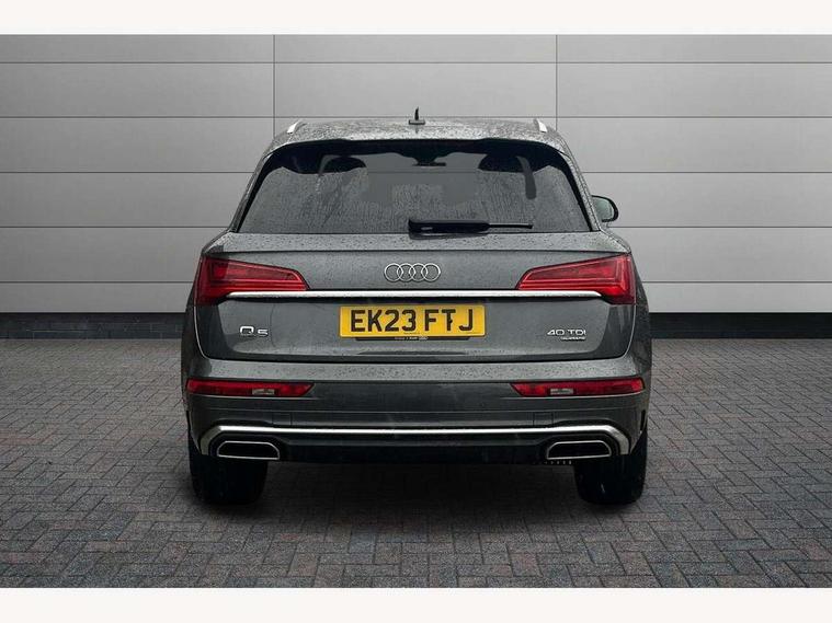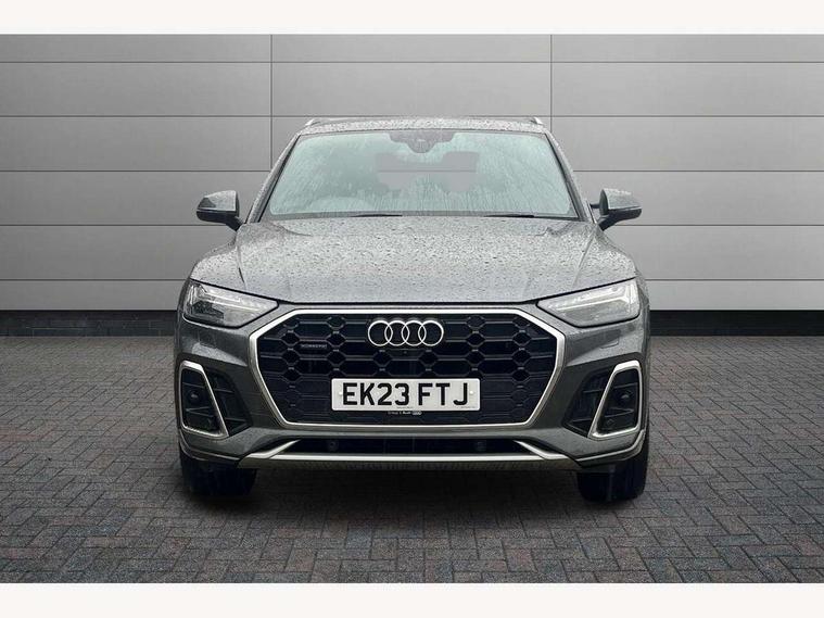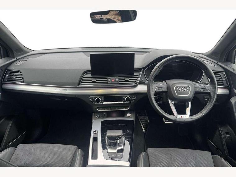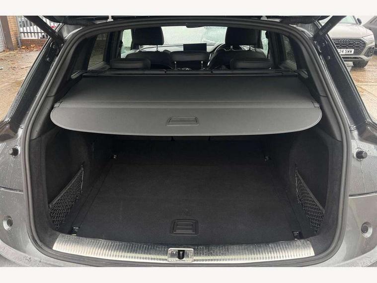 Acoustic front and rear parking sensor, Audi connect safety and service (e-call), Audi connect with Amazon Alexa Integration, Audi drive select, Audi virtual cockpit plus with 12.3" screen and three different layout designs, Audi wireless smartphone interface, Automatic start-stop system with coasting functionality and efficiency programme, Bluetooth interface, Electro - mechanical power assisted steering, MMI navigation plus with 10.1" touch screen, Power tailgate, Reversing camera, Service interval indicator, Voice control system with Audi hotword activation "Hey Audi", Diesel particulate filter, Quattro on demand, S line sports suspension, 2 x USB charging port with aux input socket, 8 loudspeakers, DAB Digital radio, Acoustic windscreen, Aluminium roof rails, Audi matrix LED headlights with dynamic front and rear indicators, Auto dimming door mirrors, Auto dimming frameless rear view mirror, Automatic headlight adjustment, Automatic headlights and windscreen wipers, Body colour bumpers, Body colour door mirrors, Body colour rear diffuser with matt aluminium silver surrounds, Body colour underbody protection, Chrome plated exhaust trims, Daytime running lights, Door sills in Selenite silver, Electric adjustable/heated/folding door mirrors, Front air inlet surrounds in aluminium, Front and rear electric windows, Front radiator grille in honeycomb design, Headlight washers, High level LED brake light, Lower bumpers painted in contrast Manhattan grey, Rear chrome trim strip below lights, Rear privacy glass and rear side windows, Rear side wing doors, Rear wiper, Roof bars, S Line badges on the front wings, S Line front and rear bumpers, S Line rear spoiler, S Line side skirts, 3 rear headrests, 3 spoke leather multifunction steering wheel with S badging perforated leather grips, 40:20:40 split folding 3 rear bench seat in 2nd row with rear centre armrest, Black cloth headlining, Comfort front centre armrest, Contrast stitching on seats, steering wheel and gear lever gaiter, Deluxe 3 zone electronic climate control, Front/rear floor mats, Gear lever in black leather, Heated front seats, Height adjustable front head restraints, Height/reach adjustable steering column, Illuminated door sill trims with S logo, Luggage compartment cover, Manual seat adjustment with 4-way electric lumbar support, Removable luggage compartment floor, Single front passenger seat, Stainless steel pedals, Sunvisors with vanity mirrors, High gloss pack - Q5, LED interior light pack - Q5, 3 point seatbelts on all seats, 6 airbags - Driver, front passenger, curtain and side airbags, Electrically operated child locks on rear doors, Electromechanical parking brake, Electronic stabilisation control including ABS, ASR and EDL, First aid kit with warning triangle and vests, Front passenger airbag deactivation, Hill descent control, Hill hold assist, ISOFIX child seat mounting for front passenger seat and ISOFIX child seat mounting with Top Tether for outer rear seats, Multi collision brake assist, Pop-up bonnet for pedestrian protection, Pre sense city, Seat belt force limiter, Seatbelt monitoring, Tyre pressure warning, Anti theft alarm, Anti-theft wheel bolts, Keyless Go access/ignition system, Remote central locking, Air vents inserts and centre console in gloss black, Matt brushed aluminium inlays,