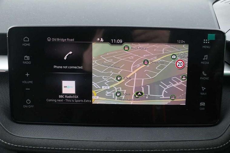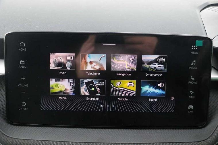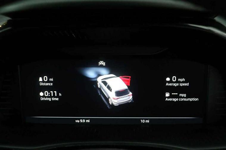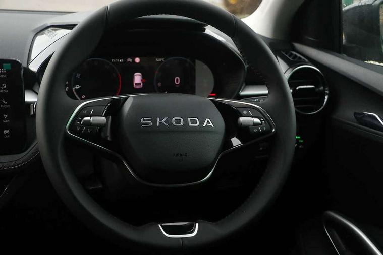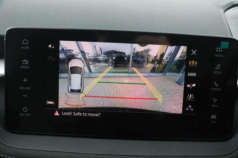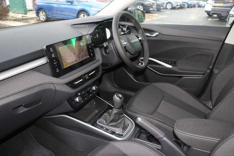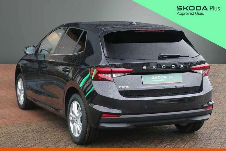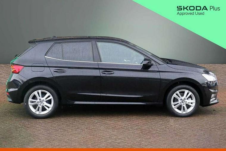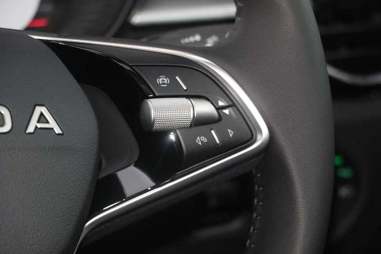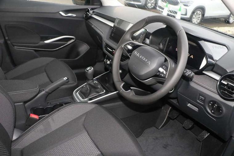 Advanced driver attention and drowsiness monitor, Bluetooth connection, Driver alert system, Electromechanical power steering, Exterior temperature gauge, Service interval indicator, Traffic sign recognition, Virtual cockpit with 10.25" colour display, Wireless SmartLink for Apple CarPlay and Android Auto, 6 Speakers (4 in front and 2 in rear), 9.2" colour display skoda navigation system with voice control and web radio, Auxiliary socket for external MP3 player, DAB digital radio reception, Auto dimming rear view mirror, Body colour door mirrors, Body coloured bumpers, Chrome window surround, Door mirror integrated indicators, Front and rear electric windows, Front window wiper intermittent control, Headlight range control - Automatic, Ice scraper in fuel cap, LED 3rd brake light, LED daytime running lights with coming and leaving home feature, LED rear lights, Privacy glass, Rear LED fog light, Rear side wing doors, Rear window wiper with washing nozzles, Roof mounted spoiler, SKODA tailgate lettering in chrome, Unique dark chrome design logo on alloy wheels, 2 LED reading lights in front and rear, 3 rear headrests, Backrest split and folding, Central console with fixed cup holder and storage box, Chrome handbrake release button, Comfort seats, Door sills with fabia badging, Dual zone air conditioning with climatronic electronic control, Fabric upholstery, Front centre armrest, Gearshift knob/handle in leather, Grain satin black interior door handles, Hand brake lever handle in leather, Height adjustable front headrests, Height adjustable front seats, Height adjustable steering wheel, ISOFIX and TopTether anchorage points to the outer rear seats, ISOFIX and TopTether on the front passenger seat, Luggage compartment lighting, Manually adjustable lumbar support in front seats, Pollen filter, Rear seat bench unsplit, Single front passenger seat, Skoda lettering on steering wheel, Storm grey headlining, Sun visors with mirror and airbag label on passenger side, Textile floor mats, Ticket holder, Umbrella in drivers door, Ambient lighting pack - Fabia Hatchback, 3-point height adjustable front seats belts with pretensioner and force limiter, Automatic warning lights in case of crash, Driver and passengers airbag with switch off function, e-Call+, ESC including ABS, MSR, ASR, EDS, HBA and XDS, Front and rear seat belt warning, FRONT ASSIST (AEB City and AEB Inter Urban), Front side airbags, Head airbags, One tone horn, Pedestrian protection, Three rear 3-points safety seat belts with pretensioner and force limiter including stop function for outer rear seat belts, Tyre pressure monitoring system, Anti-theft alarm system including immobiliser, interior monitoring, backup horn, and towing protection, Central locking with radio remote control, interior controls, SAFE function and 2 foldable keys, Chrome edged air vents, Grain satin black central console cover, Metallic grey upper decorative trim, Satin black door and side trim panel in front, Textile microsuede grey lower decorative trim with art grey stitching, Anti-theft wheel bolts protection, Super-low rolling resistance tyres,