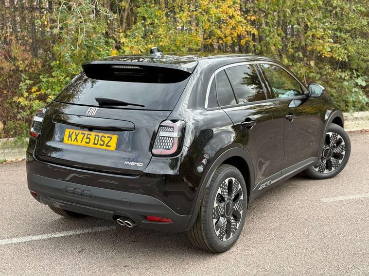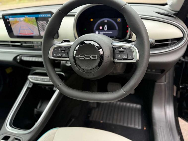 360 degree parking sensors with 180 degree rear view camera, 7" TFT digital cluster, Autonomous driving level 2: Adaptive cruise control with stop & go and lane centering, Blind spot detection, Bluetooth connectivity, BSRF connectivity box, Connected services, Drowsy driver detection, Emergency E-call assist, Engine emission level default, GSR II step 1, Hands free power liftgate, Intelligent speed assist, Lane keeping assistant (LKA), Odometer, Power assist steering, Rain and dusk sensors, Semi-automatic parking with Visiopark 1 system, Traffic sign recognition, Wireless apple car play/android Auto, Wireless charging pad for smartphones, Without drive mode selector, L2-AGM 12V battery, 1st Row USB type-A and USB type-C, 2nd Row USB type-C, 6 speaker audio system, Radio, Uconnect infotainment 10.25" touchscreen with integrated navigation system and DAB, All power windows express Up/Down, Auto dimming frameless rear view mirror, Automatic headlights, Automatic high/low beam, Body coloured door handles, Chrome day light openings, Chromed exhaust tip, Electric adjustable/heated/folding door mirrors, Exterior chrome accents, Front and rear Chromed 600 logo, Gloss black finish B pillar, Gloss black shark fin antenna, Glossy black door mirrors, Heated windscreen wiper blade area, LED 3rd brake light, LED daytime running lights, LED Fog lamps with cornering function, LED front signature lighting, LED front turn indicators and position lights, LED rear lights, LED rear signature lighting, LED reflector headlamps, Matt black side skirts with 600 chromed logo, Privacy glass, Puddle lights, Rear bumper embossed 600 logo, Rear roof spoiler, Rear side wing doors, Rear wiper, 2 Spoke synthetic leather steering wheel with audio control, 3 rear headrests, 3 seat bench in 2nd row, 6 way manually adjustable front passenger seat, 6 way power adjustable driver seat with lumbar support and massage function, Adjustable trunk floor, Automatic climate control, Auxilliary 12V power socket, Cargo flex fit, Chrome interior door handles, Dark metachrome dashboard ring, English handbook, Front centre armrest, Front headrests, Front passenger grab handle, Front seatback pockets, Heated front seats, ISOFIX attachment on front passenger and rear passenger seats, Matt Ivory painted dashboard fascia, Metachrome central compartment bezel, Monogram Synthetic leather upholstery, Paddle shifts, Partial body cover for shipment, Predisposal for accessory upgrade to default tunnel pad cover (dedicated prnd bezel), Rear seat 40/60 split, Single front passenger seat, Smart 15L storage central tunnel with La prima tunnel pad cover, Sunvisor label ciao Fiat, Sunvisors with vanity mirrors, Velour floor mats, 3x3 point rear seatbelts, 6 airbags, ABS, Autonomous Emergency Brake (AEB) & Vulnerable Road User (VRU) Protection, Child locks on rear doors, Electronic parking brake with auto hold, ESC (Electronic Stability Control), Front passenger airbag deactivation, Seatbelt reminder and pretensioners for all seats, Anti-theft volumetric alarm, Anti-theft wheel bolts, Passive entry and keyless go, 18" Diamond cut alloy wheels, Fix and go puncture repair kit,