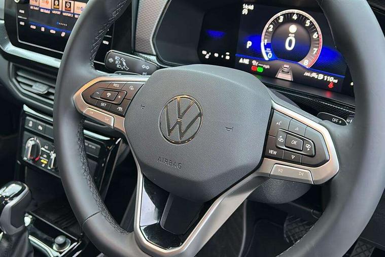 'Lights On' Reminder warning buzzer, 8" Digital cockpit, Advanced driver attention and drowsiness monitor, Bluetooth telephone and audio connection for compatible devices, Car information display, Dynamic road sign display, E-Sim card for online connectivity, eCall emergency call system, Front and rear parking sensors, Front assist, forward collision warning, autonomous emergency braking and speed limiter, Low washer fluid warning light, Multifunction computer with visual gear change recommendation for fuel consumption, Multifunction front facing camera for distance control, Operating permit alteration, Power assisted steering, Predictive adaptive cruise control, Preparation for navigation system with media and internet package, Preparation for We connect and We connect plus, Rear view camera, Semi-automated driving assistance, travel assist including lane keeping system Lane Assist and emergency assisst, Side assist, Speedo, rev counter, electronic odometer, trip, service interval display, exterior temperature and fuel gauge, Warning sound and light for doors and tailgate open, Warning sound and light for front seatbelts unfastened, Wireless Car net app connect with Apple CarPlay, combined functionality of Apple CarPlay/Android Auto and MirrorLink, Wireless charging, Misfuel prevention device, Start-stop system with battery regeneration (recuperation - energy recovery during braking), 2 USB C ports in front, 2 USB charging sockets on the centre console in the rear charging capacity upto 45W, DAB Digital radio receiver, Diversity antenna for FM reception, Multi device interface (MDI) with USB connection, Music playback - MP3, WMA and AAC files, Radio, Automatic dimming interior rear view mirror, Automatic hazard lights activation under emergency braking, Automatic headlight control with LED separate daytime running light and coming home and leaving home feature, Body colour door handles, Body colour door mirrors, Body coloured bumpers, Dynamic headlight range control with self adjusting whilst driving, Electric folding door mirror, adjustable, heated with front passenger exterior mirror lowering function, Exterior mirrors convex on the left and aspherical on the right, Front and rear electric windows, Galvanised body, Heat insulating and laminated safety glass windshield, Heat insulating darkened glass in side and rear windows, High Beam Assist, automatic sensing for switching between dipped and main beam, LED rear combination lights, LED third brake light, Lower door sills and door pillars in black, Rain sensor, Rear fog light on one side, reversing light on both sides, Rear side wing doors, Rear window aerial, Rear window wiper with intermittent control, Reflectors in all doors, Scuff plates, Tailgate with integrated roof spoiler, 12V Accessory socket in centre console, 3 rear head restraints, 3 seat bench in 2nd row, 60/40 split folding rear seat backrest, Ambient lighting and logo projection, Ceramique roof lining, Cloth upholstery, Door and side trim panel, Driver and front passenger sunvisor with vanity mirror, Dust and pollen filter, Front and rear reading lights X 2, Front centre armrest with storage compartment, Front seat back storage pockets, Glove compartment door with light, Heating and fresh air system with 4 stage blower, Height/reach adjust steering wheel, Instrument lighting white adjustable panel illumination, Interior light with switch off delay and dimmer, Isofix anchors for child seats on outer rear seats and front passenger seats, Leather gearshift handle, Leather wrapped multifunction steering wheel, Luggage compartment floor, Luggage compartment lighting, Manual front seats with height adjustment, Padded dashboard, Removable luggage compartment cover, Single front passenger seat, Storage compartment in drivers and front passengers door, Unsplit sliding rear seat bench, Without drawers under front seats, 3 point outer rear seat belts with ECE label, 3 Point seatbelt for centre rear seat, Anti-lock Braking System (ABS) with Hydraulic Brake Assist (HBA), Automatic post collision braking system, Disc brakes in front, Driver and front passenger safety-optimised head restraints, Drivers and Front Passengers airbags with front passengers airbag deactivation switch, Drum brakes in rear, ESC with EDL and ASR (traction control), Extended and predictive pedestrian/cyclist protection, Front and rear passenger curtain airbag system including front side airbags, Height adjustable front 3 point seatbelts + pretensioners, Hill start assist, Pre crash preventive occupant protection, Proactive passenger protection system in combination with front assist, Rear door child safety locks, Rigid safety cell with front and rear crumple zones, Single tone horn, Tyre pressure loss indicator, Volkswagen roadside assistance, Alarm with interior protection, Anti theft alarm system, Electronic engine immobiliser, Remote keyless entry using key fob including Start/Stop button on centre console with SAFELOCK, Remote tailgate unlocking using key fob, Low rolling resistance tyres,