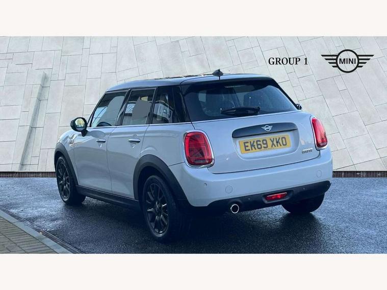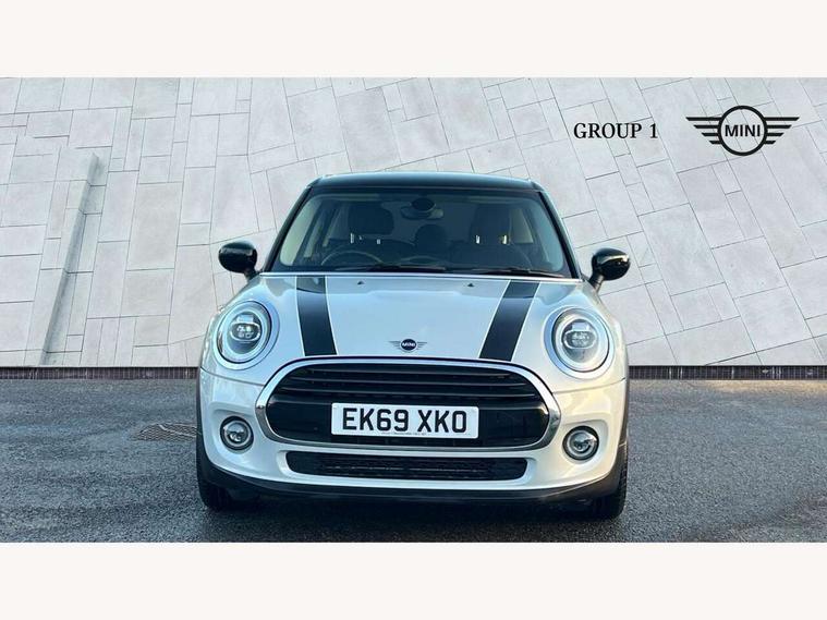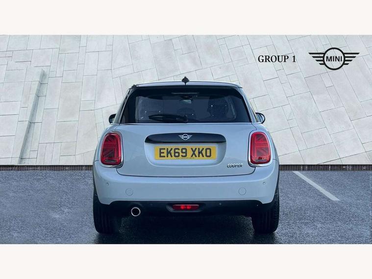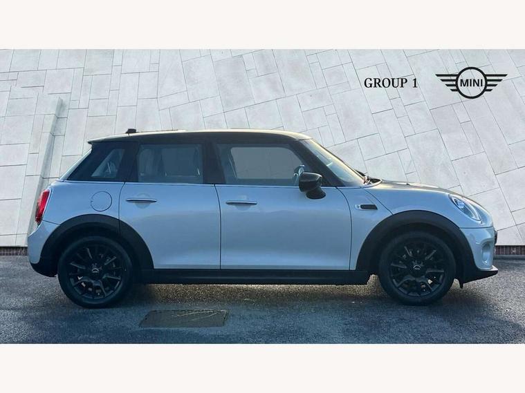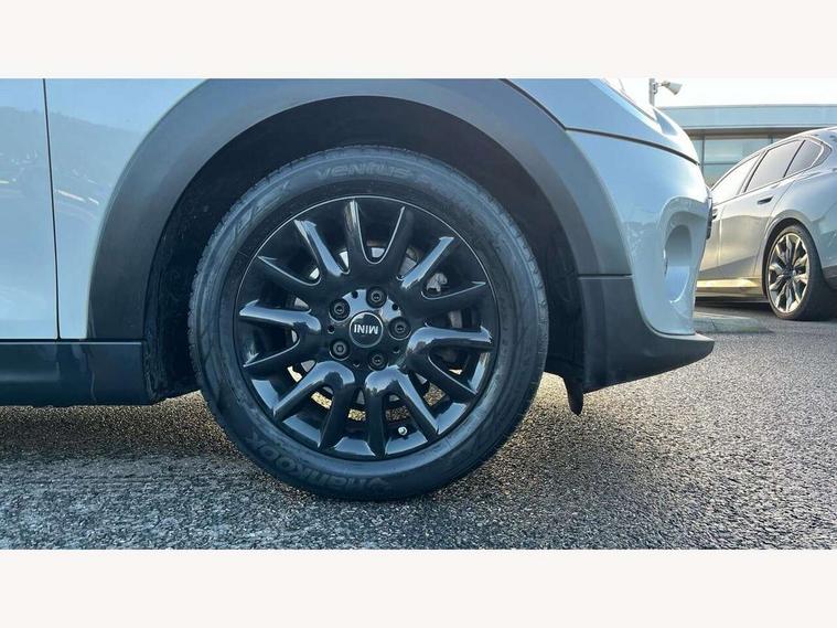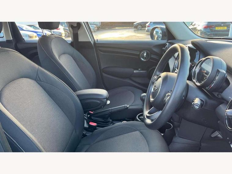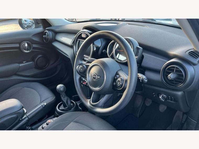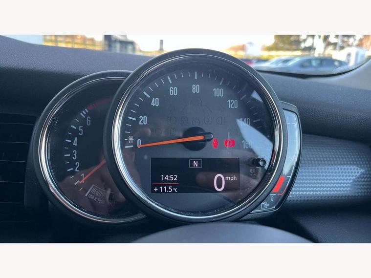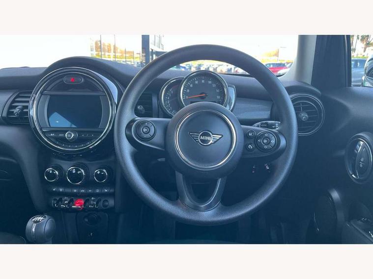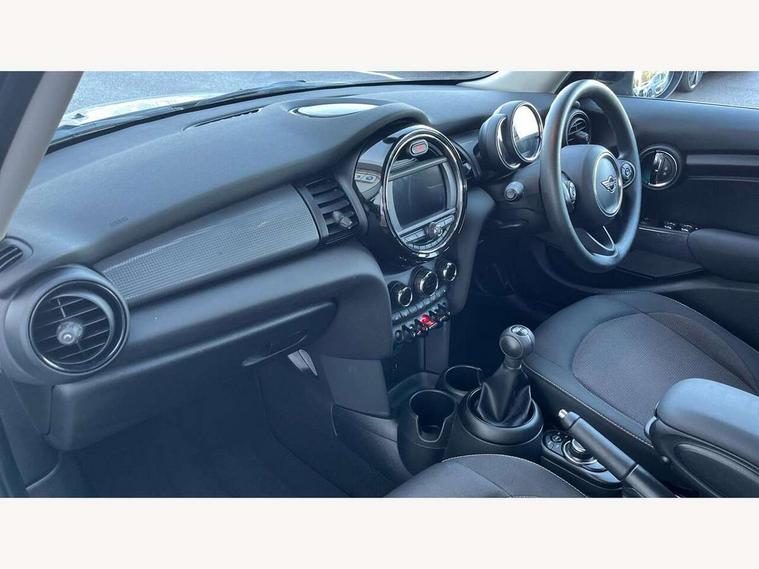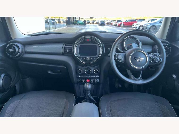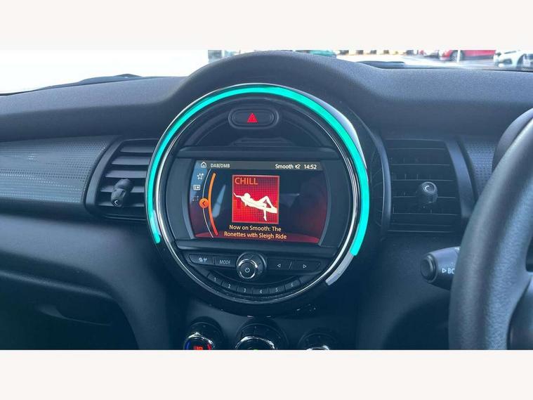 Automatic start/stop function with brake energy recuperation, Compatible mobile phone bluetooth with audio streaming, Electro-mechanical speed dependant steering assistance, Instrument cluster, Mini E-call, MINI TeleServices, On board computer, Service interval indicator, Double Vanos system, Fully variable valve control, High precision injection, 6.5" touchscreen with LED ring, FM tuner and DAB digital radio, Automatic headlight activation switch, Body colour fuel filler cap, Chrome border high gloss black slats radiator grille, Dynamic brake lights, Electric front+rear windows, Heated rear window, Heated windscreen washer jets, LED headlight with closed ring and daytime driving lights, Left exhaust tailpipe with chrome finisher, Metal door sill strips with MINI imprint, Model logo Cooper on right of tailgate, Rain sensor window wipers, Rear fog lights, Rear LED lights with union jack design, Rear window wiper, Side scuttle panel with integrated indicator, Sun/heat protection glass, White indicator lenses, 12V Accessory socket in centre console, 4 lashing eyes in luggage compartment, 60/40 split folding rear seat, Chrome interior highlights, Colour line - Carbon black, Cupholders, Front and rear head restraints, Front and rear isofix with front passenger airbag deactivation, Glove compartment, Height and length steering column adjustment, Interior lighting with 12 basic colours selectable via toggle switch in roof, Leather gearshift lever and handbrake gaiters, LED reading lights, vanity mirror lights, front foot well light and spotlight on front seats, Manual air conditioning, Mechanical seat adjustment, driver seat height adjust, forward/back and front seats backrest, Mini logo projection on floor from drivers exterior mirror, Multifunction steering wheel, Satellite grey headlining, Storage compartments in doors, Sunvisors with vanity mirrors, 3 point seatbelts on all five seats, 6 Airbags - front, side, head and seat belt tensioners, Anti-lock braking system (ABS), DSC - Dynamic Stability Control, Front and rear disc brakes, Hill start assist, Single tone fanfare horn, Tyre pressure monitoring system, Alarm system with tilt sensor, monitoring doors, bonnet interior and tailgate, Electronic vehicle immobiliser, Start/stop toggle with keyless go, Tool kit,