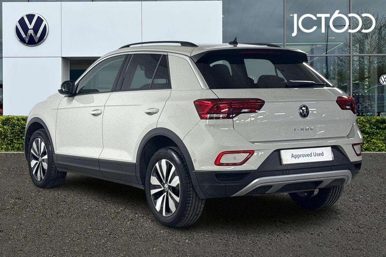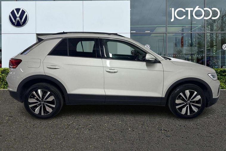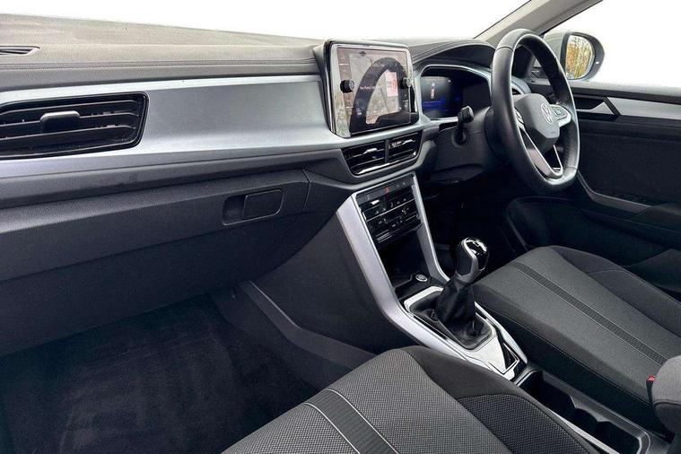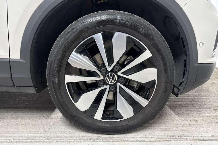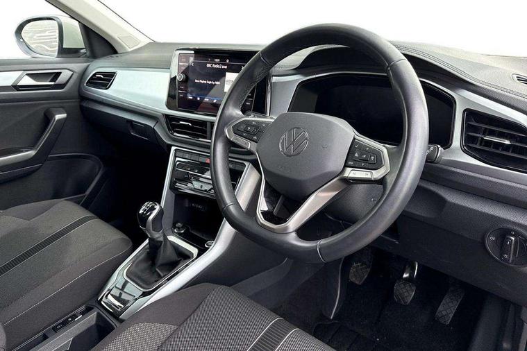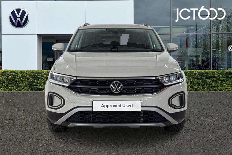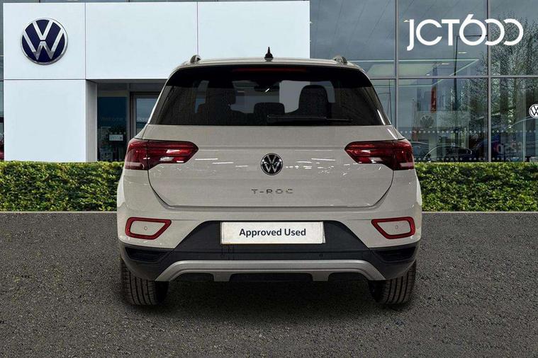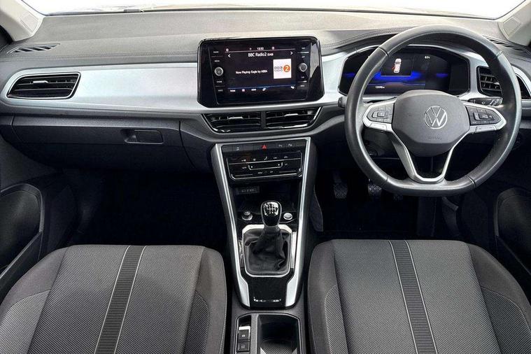 Advanced driver attention and drowsiness monitor, Dynamic road sign display, Emergency call service, Lane keeping system Lane Assist, Mobile phone interface, Modified key software - reduce switch off time for key status change to Long no motion, Online services, Park assist including front and rear parking sensors, Power assisted speed sensitive steering, Rear view camera, Service interval indicator, Tailgate/trunk lid release from outside, Think blue trainer driver tips and journey analysis, Warning sound and light for front seatbelts unfastened, Wireless app connect, Wireless Smartphone charger, Battery regeneration during braking, Front shock absorption, Rear shock absorption chassis with increased ride height, Start/stop function with battery regeneration, DAB Digital radio, Diversity antenna for FM reception, Front and rear 6 speakers, Music playback - MP3, WMA and AAC files, Premium USB cable in choice of either Apple or Android smartphone compatibility, SD card slot, Simultaneous pairing of 2 compatible mobile devices, Title and cover art display, We Connect and We Connect Plus functionality, Auto dimming interior rear view mirror, Automatic hazard lights activation under emergency braking, Automatic headlight control with LED separate daytime running lights with coming/leaving home function, Black roof rails, Body coloured bumpers and radiator grille with chrome trim and front fog lamps with chrome bezel, Body coloured exterior mirror housings and door handles, Electrically adjustable and heated door mirrors, Extended roof spoiler, Exterior mirrors aspherical on driver side, convex on front passenger side, External USB type C socket and charging sockets, Front windscreen wiper with intermittent wipe and 4 position delay, Heated rear window, LED 3rd brake light, LED rear combination lamps, LED rear number plate lights, Power windows with comfort operation and circuit breaker, Privacy glass for rear side windows and rear window, Rain sensor, Rear exhaust tailpipe, Rear fog light on one side and reversing lights on both sides, Rear side wing doors, Rear wash/wipe with intermittent wipe setting, Remote electrically foldable door mirrors, puddle lights and reverse activated passenger's door mirror, 12V power socket in centre console, 3 rear head restraints, 3 seat bench in 2nd row, 4 load lashing points in luggage compartment, Air care climatronic air conditoning system with active combination filter and 2-zone temperature control, Black stitching for floor mats, Ceramique roof liner, Cloth upholstery, Door and side trim panel in cloth, Drawer under drivers seat, Driver/front passenger seat height adjustment, Front centre armrest, Front comfort sports seats, Front cupholders x 2, Front reading light, Front seat back storage pockets, Glove compartment door with light, Instrument lighting, white adjustable panel illumination, Interior ambient lighting and surround lighting, Interior light delay, Isofix child seat preparation, Leather gearshift handle, Load-through provision with cup holder when folded down ('Unsplit rear seat bench, split folding backrest, with centre armrest), Luggage compartment lighting, Lumbar support for driver's and front passengers seat, Non-folding front passenger seat backrest, Single front passenger seat, Storage compartment in left and right luggage area, Storage compartment in rear doors, Storage compartments in driver and front passenger doors, Sunvisors with illuminated vanity mirrors, Variable boot floor, height adjustable and removable, Driver assistance pack without proactive passenger protection - T-Roc Life/Match, 3 point height adj front seatbelts + pretensioners, 3 point seatbelts in outer rear with ECE label, ABS, Child locks on rear doors, City emergency braking and pedestrian monitoring, Driver and front passenger airbag with front passenger airbag deactivation, Driver and front passenger safety-optimised head restraints, Drivers seatbelt reminder, Electronic parking brake, Electronic Stability Control (ESC) inc EDL (Electronic Differential Lock) and ASR (Traction Control), Front and rear passengers curtain airbag system including front side airbags, Front disc brakes, Hill start assist, Predictive pedestrian protection, Rear disc brakes, Two tone horn, Tyre pressure loss indicator, Volkswagen roadside assistance, Alarm with interior protection, Pewter matt decorative inserts for intrument panel, centre console and door panels at the front, Trims for alloy wheels,