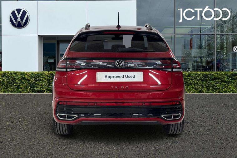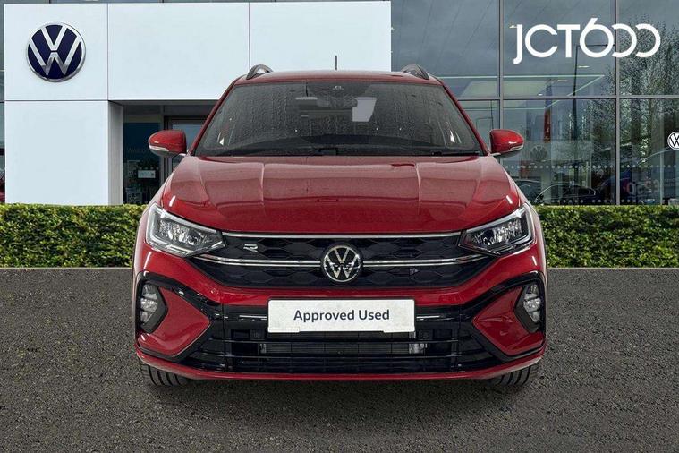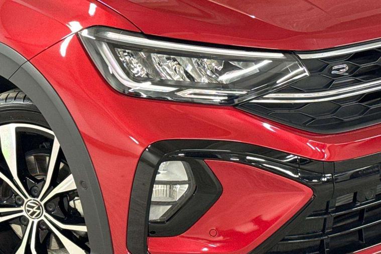 Adaptive cruise control, Advanced driver attention and drowsiness monitor, App-Connect including App-Connect Wireless, Digital cockpit pro - 10.25" high resolution TFT dash display screen with customizable menus and information, Driving profile selection, e-Call (emergency call), Power Steering, Travel assist including emergency assist, Washer fluid level indicator, Wireless Charging including Bluetooth, Start-stop system with battery regeneration (recuperation - energy recovery during braking), XDS electronic differential lock for improved traction and handling, Digital radio reception (DAB+), Diversity antenna for FM reception, WeConnect plus, Ambient lighting with logo projection, Aspherical driver's exterior mirror, Auto headlights, Body coloured bumpers, Bumpers in R-Line style, Electric windows, External USB type C socket and charging sockets, Front scuff plates with R-Line logo, LED rear combination lamp, LED third brake light, Left convex exterior mirror, Power folding adjustable/heated exterior mirrors and front passenger exterior mirror lowering function, Rear fog light on one side, reversing light on both sides, Rear side wing doors, Rear wash/wipe with intermittent wipe setting, 12V socket in centre console, 2 front reading lights, 3 rear head restraints, 3 seat bench in 2nd row, Air care climatronic air conditoning system with active combination filter and 2-zone temperature control, Black carpets, Black roof lining, Child seat anchor for child seat system i-Size, 2x top tether and child seat anchor in front on front passenger side, Chrome bezel for instrument cluster, vents, door handles + gear shift, Driver and front passenger seat height adjustment, Front + rear carpet mats, Front centre armrest, Front footwell illumination, Front sports comfort seats, Height and reach adjustable steering wheel, Interior ambient lighting and surround lighting, Karoso artvelours cloth upholstery, Leather trimmed gear knob, Leather wrapped multifunction steering wheel, Luggage compartment floor, Luggage compartment light, Lumbar support for driver's and front passengers seat, Seat covers in grey + titanium black, Single front passenger seat, Split folding backrest with centre armrest and unsplit rear seat bench, Stainless steel pedals, Storage compartment under front seats, Sun visors with illuminated vanity mirrors, Chrome Package - Taigo, Drivers assistance pack - Taigo, Light and Sight pack including High beam assist - Taigo, 2 x 3-point seatbelts/outer rear seats with ECE label, 3-point seat belts in front with pretensioner and height adjustment, 3-point seatbelt for centre rear seat, Adaptive driver and front passenger airbags with passenger airbag deactivation function, Driver and front passenger safety-optimised head restraints, Electronic stability control, Extended and predictive pedestrian/ cyclist protection, Front and rear disc brakes, Front curtain and side airbags with center airbag, Hill start assist, Manual rear child locks, Single tone horn, Tyre pressure loss indicator, Anti-theft alarm system with interior monitoring, backup horn, and towing protection, Grey anodised matte decorative inserts in dash and front door panels, Low rolling resistance tyres,