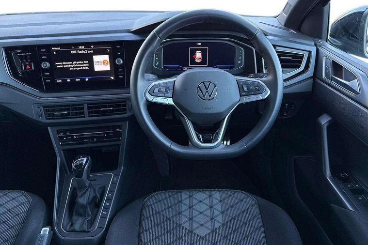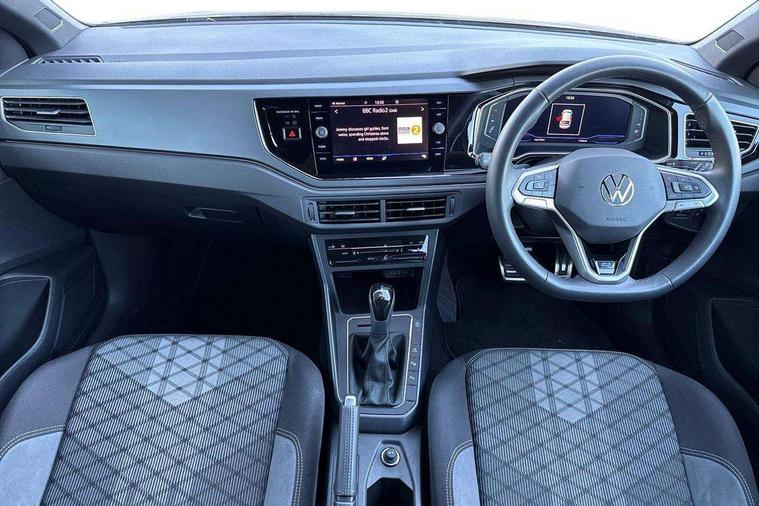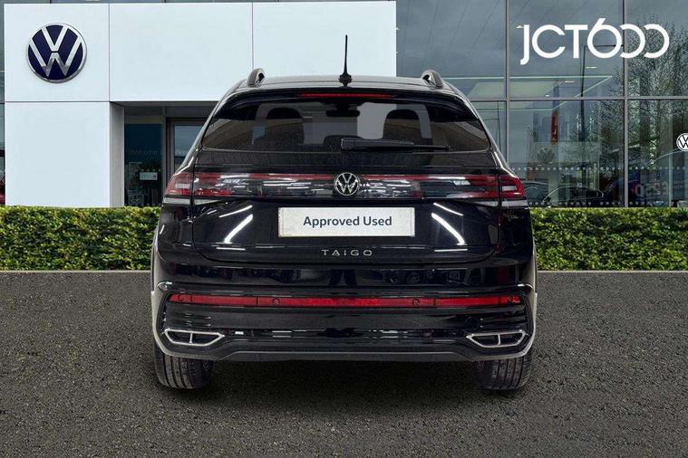 Adaptive cruise control, Advanced driver attention and drowsiness monitor, App-Connect including App-Connect Wireless, Digital cockpit pro - 10.25" high resolution TFT dash display screen with customizable menus and information, Driving profile selection, e-Call (emergency call), Power Steering, Travel assist including emergency assist, Washer fluid level indicator, Wireless Charging including Bluetooth, Start-stop system with battery regeneration (recuperation - energy recovery during braking), XDS electronic differential lock for improved traction and handling, Digital radio reception (DAB+), Diversity antenna for FM reception, WeConnect plus, Ambient lighting with logo projection, Aspherical driver's exterior mirror, Auto headlights, Body coloured bumpers, Bumpers in R-Line style, Electric windows, External USB type C socket and charging sockets, Front scuff plates with R-Line logo, LED rear combination lamp, LED third brake light, Left convex exterior mirror, Power folding adjustable/heated exterior mirrors and front passenger exterior mirror lowering function, Rear fog light on one side, reversing light on both sides, Rear side wing doors, Rear wash/wipe with intermittent wipe setting, 12V socket in centre console, 2 front reading lights, 3 rear head restraints, 3 seat bench in 2nd row, Air care climatronic air conditoning system with active combination filter and 2-zone temperature control, Black carpets, Black roof lining, Child seat anchor for child seat system i-Size, 2x top tether and child seat anchor in front on front passenger side, Chrome bezel for instrument cluster, vents, door handles + gear shift, Driver and front passenger seat height adjustment, Front + rear carpet mats, Front centre armrest, Front footwell illumination, Front sports comfort seats, Height and reach adjustable steering wheel, Interior ambient lighting and surround lighting, Karoso artvelours cloth upholstery, Leather trimmed gear knob, Leather wrapped multifunction steering wheel, Luggage compartment floor, Luggage compartment light, Lumbar support for driver's and front passengers seat, Seat covers in grey + titanium black, Single front passenger seat, Split folding backrest with centre armrest and unsplit rear seat bench, Stainless steel pedals, Storage compartment under front seats, Sun visors with illuminated vanity mirrors, Chrome Package - Taigo, Drivers assistance pack - Taigo, Light and Sight pack including High beam assist - Taigo, 2 x 3-point seatbelts/outer rear seats with ECE label, 3-point seat belts in front with pretensioner and height adjustment, 3-point seatbelt for centre rear seat, Adaptive driver and front passenger airbags with passenger airbag deactivation function, Driver and front passenger safety-optimised head restraints, Electronic stability control, Extended and predictive pedestrian/ cyclist protection, Front and rear disc brakes, Front curtain and side airbags with center airbag, Hill start assist, Manual rear child locks, Single tone horn, Tyre pressure loss indicator, Anti-theft alarm system with interior monitoring, backup horn, and towing protection, Grey anodised matte decorative inserts in dash and front door panels, Low rolling resistance tyres,