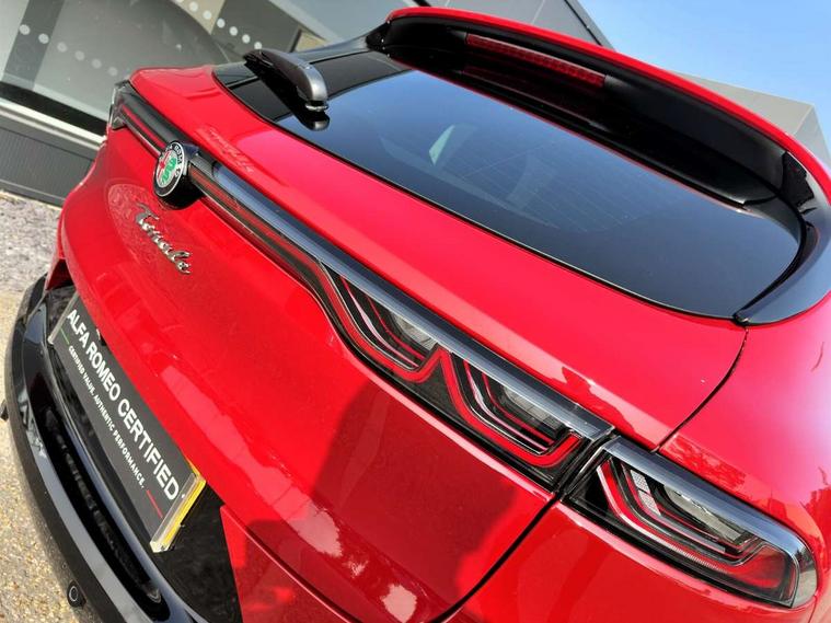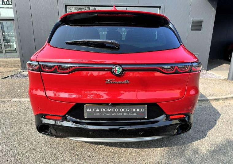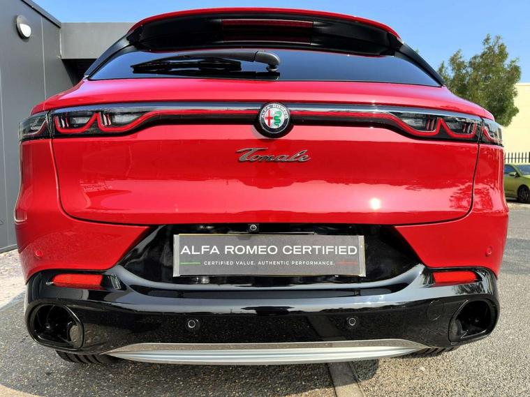Alfa connect box, Alfa connect services, Alfa dna with esc off (3 modes + esc off), Apple car play/Android Auto, Drowsy driver detection, e-Call (emergency call), Forward collision warning, Full tft instrument cluster - 12.3", Intelligent adaptive cruise control, Intelligent speed assist, Lane support system, PAS, Passive / keyless entry (front doors), Power liftgate, Qiuick guide in english, Speed limiting device, Traffic sign recognition (w/navigation), Warranty handbook uk, Wireless charging pad, 10.25" radio touchscreen, usb, bluetooth audio streaming, voice controls with navigation, DAB digital audio broadcast, 4 Interior puddle lights, Auto headlamps with dusk sensor, Auto high beam, Auto wipers with rain sensor, Auto-dimming rear internal mirror, Black painted mirror caps, Black rubber window surround, Body colour door handles, Body colour rear spoiler, Chrome finishing tonale badge, Chrome Ti badge, Electric exterior mirrors (heated), Electrical-folding exterior mirrors, Front and rear power windows with auto up/down and antipinch, Full LED rear lamps, Gloss black painted body kit w/ satin side and front inserts and skidplate, LED blade stop light, LED cornering projector light, LED license plate light, Matrix full led headlamps with adaptive system and fog light function, Phev exterior badging, Privacy glass, Rear side wing doors, Rear wiper, Roof, hood and exterior mirrors protection, Shark fin antenna, Ti badge on fenders, U shaped LED blades DRL signature and dynamic turn indicator, V front bezel satin chrome, Welcome/leaving lighting, 12v plugs in the front and in trunk, 4 way electric driver lumbar support, 4 Ways electric driver only lumbar adjustment, 60/40 Rear seats with ski pass, Aluminium sports pedals, Black ceiling and pillars, Bottle storage 1l on door panel, Dual zone air conditioning with aqs (with rear airvents), Front armrest (integrated in the central tunnel), Front headrests, Front usb plug type a + c (charge + data), Front/rear floor mats, Heated front seats, Mono colour ambient light (included in domelamp), Overhead console with domelamp led and switches, PU Dasboard with beige stitching, Rear air vents, Rear central armrest and 3 headrests, Rear usb plug type a + c (charge), Seat belt height adjustment, Single front passenger seat, Softskin ip dashboard and upper door panels, Sport leather steering wheel with start button, Sunvisor mirror with light (driver and passenger), 6 airbags, ABS, Autonomous emergency braking inter-urban, Electric parking brake with autohold, Emergency braking pedestrian and vulnerable road users - interurban, ESP, Manual rear child locks, Rear seatbelt reminder alert, Three 3 point rear seatbelts, Tyre pressure monitoring system (TPMS), Capless fuel filler, Keyless Go, Vehicle theft alarm with hood protection and intrusion sensor (thatcham), Coloured alfa romeo logo centre wheel caps, Fix and go puncture repair kit, Summer tires,