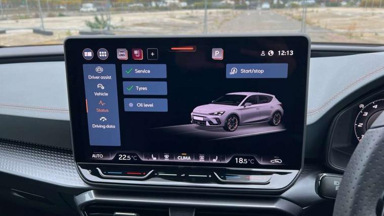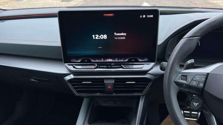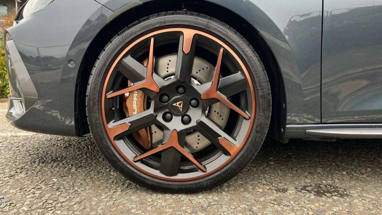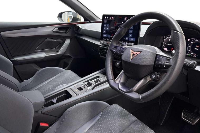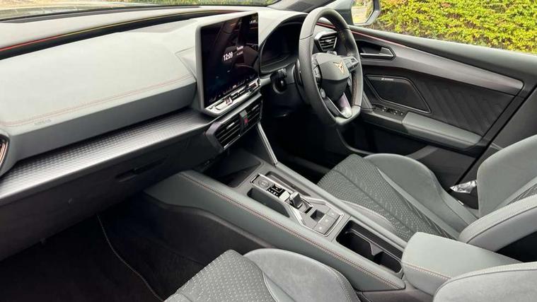 Adaptive cruise control with follow-to-stop and speed limiter, CUPRA drive profile selection with (Comfort/Sport/Individual), throttle response and gearshift mode, Digital cockpit, Dynamic road sign display, E-call, Four x USB Type C ports (2 in front and 2 in rear), Front and rear parking sensors, Front assist with forward collision warning braking reaction to vehicles, pedestrians and cyclists, Full link smartphone integration with Mirror Link, wireless Apple CarPlay and wired Google Android Auto, Intelligent park assist, Lane change assist with emergency assist, Lockable tailgate, Rear view camera, RPM, trip computer, outside temp gauge, instrument light brightness, low fuel warning light, lights on reminder, gearshift indicator, Service interval indicator, Side and exit assist, Start/stop system with regenerative braking, Wireless phone charger, Auxiliary input socket, Immersive by Sennheiser TM - 10 speakers, 1 central speaker, 1 subwoofer, Auto dimming rear view mirror, Body colour door handles, Body coloured bumpers, Cupra sports bumpers, Dark tinted rear windows, Electric front/rear windows, Electrically adjustable, heated and folding door mirrors, High beam assist, LED front fog lamps with cornering function, LED rear fog lamp, Matrix LED Headlights with variable light distribution, Matrix Beam and Dynamic headlight range control, Rain sensing wipers, Rear side wing doors, Rear wash/wipe, Separate daytime running light with automatic headlight control and coming home feature, Third brake light, Welcome light with logo projector in door mirrors, 12v power supply in centre console, 3 seat bench in 2nd row, 5 headrests, 60/40 split rear bench seat with armrest, Ambient lighting (glovebox, footwell, ambient lighting multicoloured), Black headlining, Cupra sports pedals, CUPRA Supersports, heated steering wheel with satellite buttons, Electrically adjustable driver seat and lumbar support with memory function + manually adjustable passenger seat, Folding boot cover, Front and rear reading lights X 4, Front centre armrest, Heated front seats, Height/reach adjust steering wheel, Illuminated interior front door sills, Interior wraparound lighting, ISOFIX points in outer rear seats with top tether anchorage points, Single front passenger seat, Sunvisors with illuminated mirror, Textile cloth upholstery, Three zone climate control, Dynamic and comfort pack - Leon Cupra, Media system plus with 12.9" display + navigation pack - Leon Cupra, 3 point seatbelts on all rear seats, ABS, Akebono performance brake calipers, Brake control system - ESC and brake booster, Child proof door locks, Driver and front passenger airbags with front passenger airbag de-activation, front side and curtain airbags, Electronic parking brake, Hill hold control, Pre-crash front and rear seat belt tensioner, window closure and hazard lights, Rear disc brakes, Seat belt reminder for front and rear seats, Tiredness recognition system, Tyre pressure monitoring system, Anti theft alarm system with interior monitoring in cab, backup horn and towing protection, KESSY Advanced - Keyless start, keyless entry, Locking wheel bolts, Chrome and copper interior detailing, 19" Hailstorm forged machined R black and copper alloy wheel with 91Y tyres, Breakdown kit, Tool kit,
