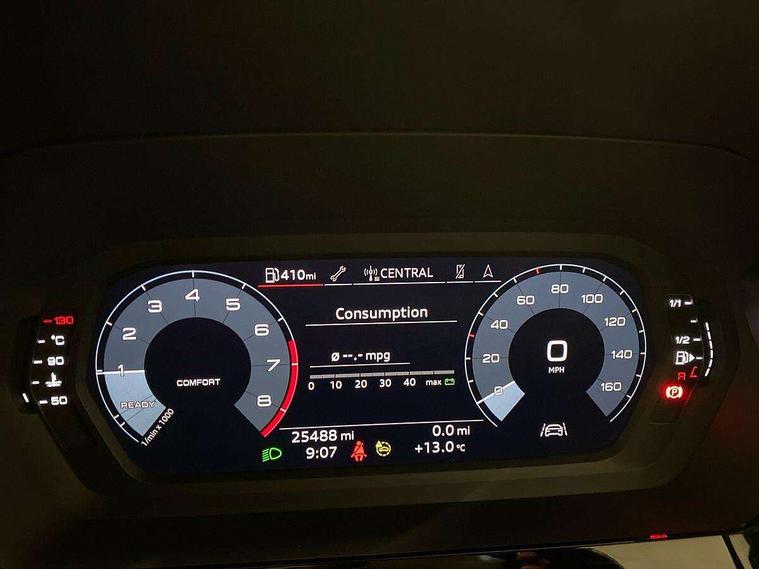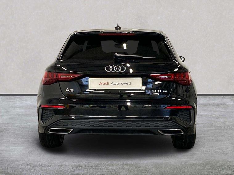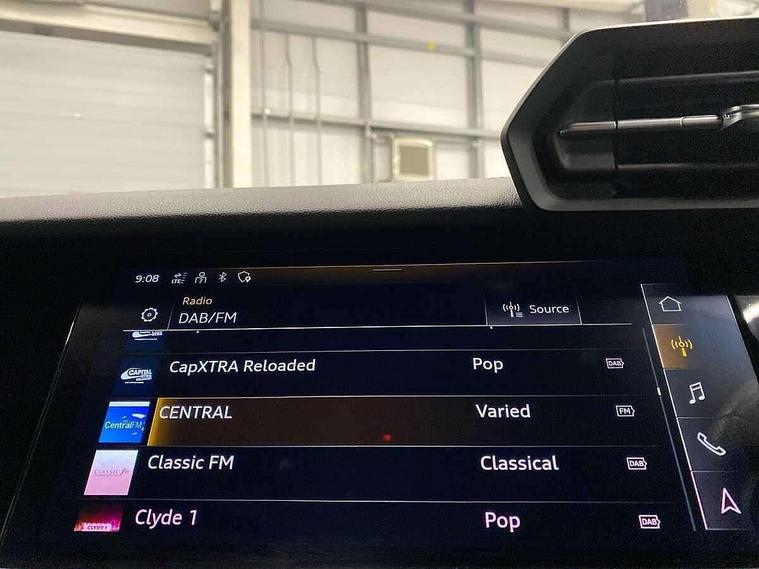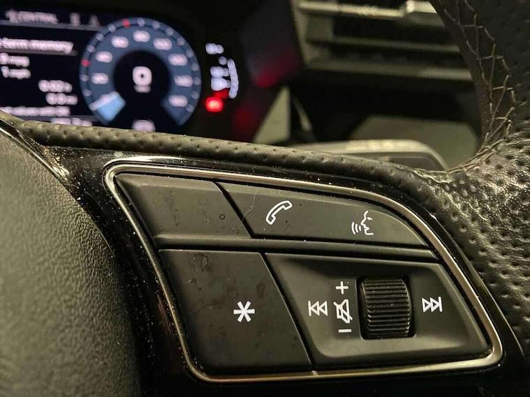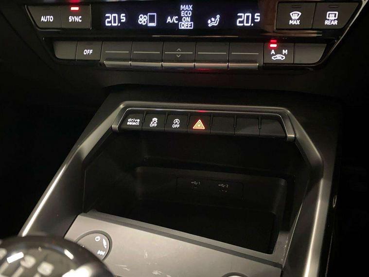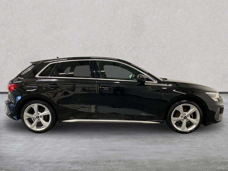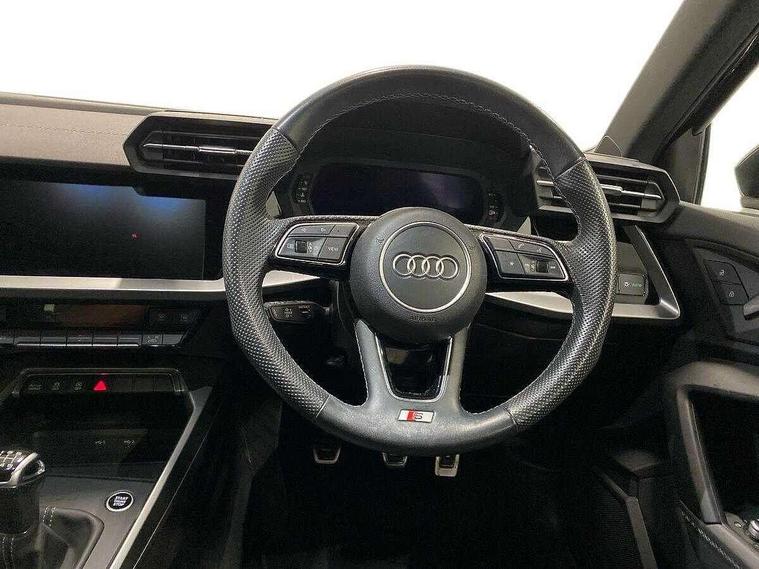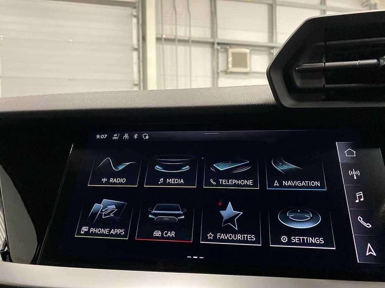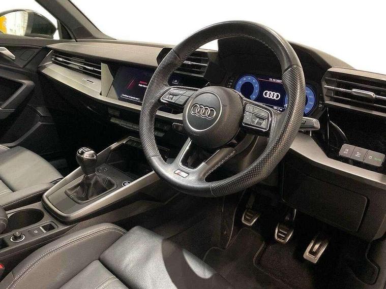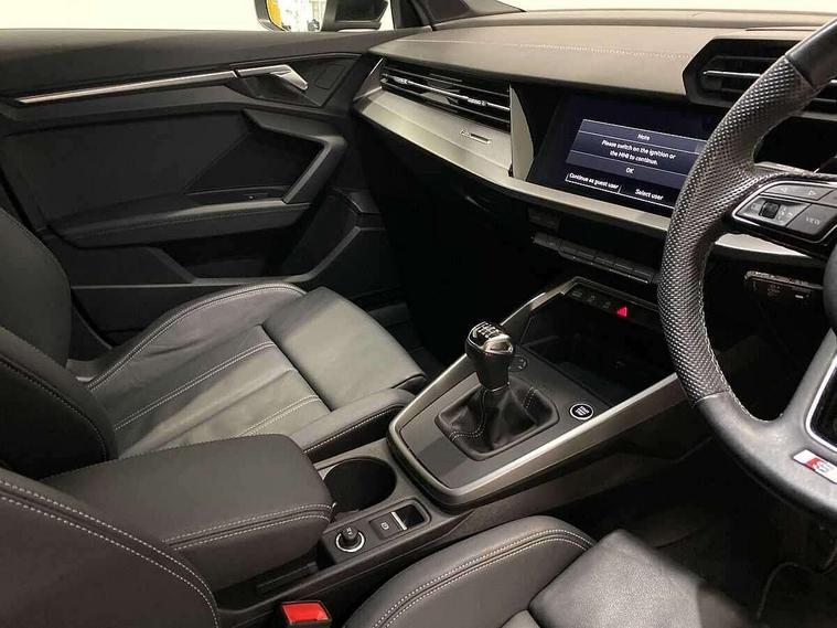 Audi drive select (Auto, Comfort, Dynamic and Individual), Audi smartphone interface, Audi Virtual Cockpit - 10.25" digital and colour instrument cluster, Automatic start/stop system with recuperation, Bluetooth interface, Collision avoidance assistant, Cruise control, e-Call (emergency call), Electromechanical power speed sensitive steering, Lane departure warning system, MMI Navigation Plus with high resolution 10.1" colour touch screen display, Rear parking sensors, Service indicator, Trip computer, Voice control system with natural language interaction, 2xUSB-C connection with data and charging functions, 6 passive loudspeakers, DAB Digital radio, 3rd brake light, Acoustic glass windscreen, Aluminium window trim, Auto dimming frameless rear view mirror, Electrically adjustable/heated/folding/auto dimming door mirrors with integrated LED indications + kerb view function for passenger side, Front electric windows, Illuminated aluminium inserts front door sills with S logo, LED daytime running lights, LED headlights with LED rear lights and dynamic rear indicators, Light and rain sensors, Privacy glass - dark tinted rear window, rear door and side windows, Rear electric windows, Rear side air outlets in grained matt black, Rear side wing doors, Rear wiper, S line bumpers, S roof spoiler, 12V socket and storage compartment in front centre console, 3 seat bench in 2nd row, 40/20/40 split folding rear seat bench with cupholder, Black cloth headlining, Dual zone electronic climate control, Front and rear centre armrest in leather, Front and rear headrests, Front/rear floor mats, Height and reach adjustable steering wheel, Illuminated vanity mirror, Interior lighting - glove compartment light and right hand side, Luggage compartment floor covering, Manual boot compartment lid, Manually adjustable front seats, Seat side bolsters, Single front passenger seat, Stainless steel pedals and front footrest in black, Twin leather upholstery with front sports seats S embossed logo, Aluminium interior elements pack - A3 Sportback, LED interior lighting pack - A3 Sportback, S line styling pack - A3 Sportback, 3x3 point rear seat belts, Audi pre sense front, Driver and front passenger airbag with passenger airbag deactivation, Electronic Stabilisation Control (ESC) including ABS, ASR and EDL, First aid kit with warning triangle and 2 safety vests, Front side airbags with head airbags and interaction airbag, Pre-sense front with pedestrian and cyclist detection, Seatbelt monitoring, Tyre pressure loss indicator, Anti theft alarm, Anti-theft wheel bolts, Electronically operated child lock, Immobiliser, Remote control central locking, Accent surfaces in the dashboard and centre console in platinum grey silk effect paint finish, Dark spectrum aluminium inlays,