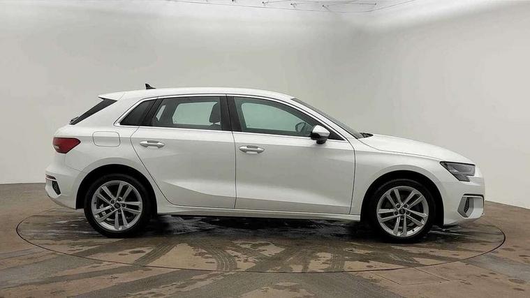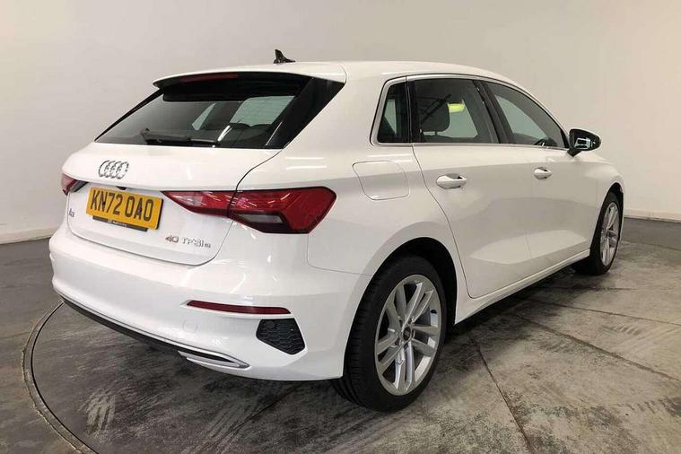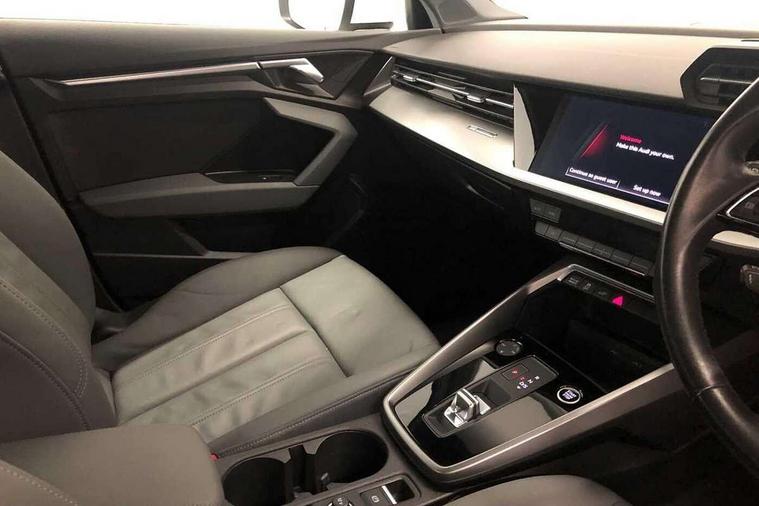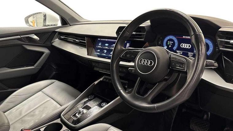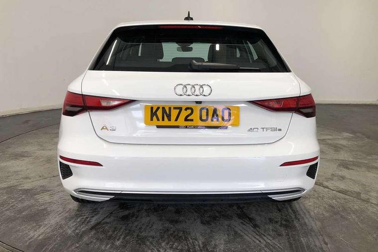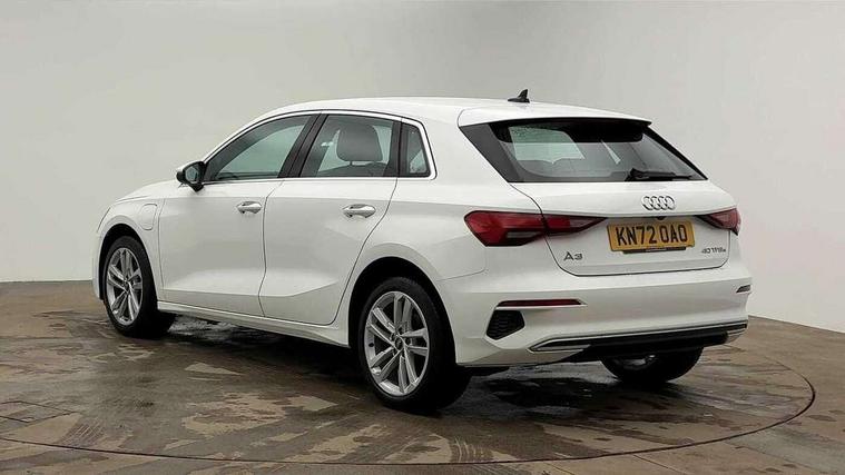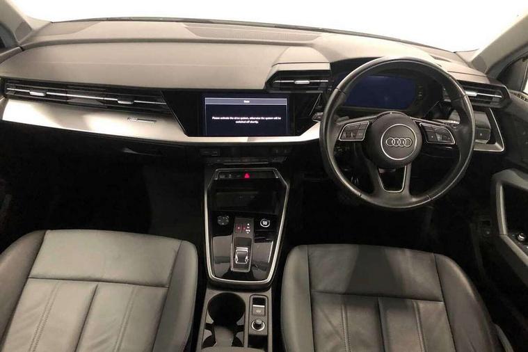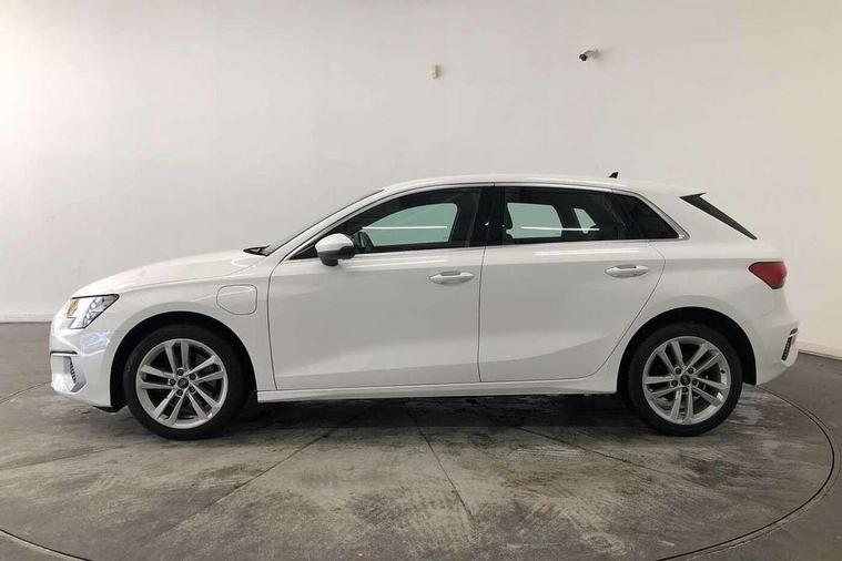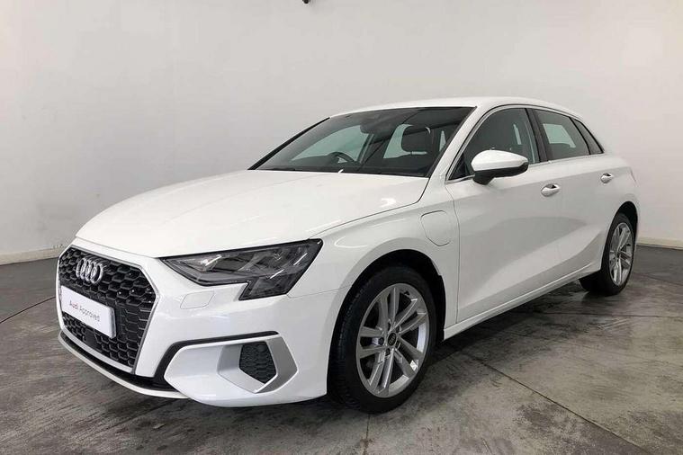 Audi drive select (Auto, Comfort, Dynamic, Efficiency and Individual), Audi smartphone interface, Audi Virtual Cockpit - 10.25" digital and colour instrument cluster, Automatic start/stop system with recuperation, Bluetooth interface, Collision avoidance assistant, e-Call (emergency call), Electromechanical power speed sensitive steering, Lane departure warning system, MMI Navigation Plus with high resolution 10.1" colour touch screen display, Service indicator, Trip computer, Voice control system with natural language interaction, 3 pin 10 amp domestic charging cable, 3.6 kw On-board charger, Standard suspension, Type 2 mode 3 32 amp charging cable, Type 2 socket for AC charging, 2xUSB-C connection with data and charging functions, 6 passive loudspeakers, DAB Digital radio, 3rd brake light, Acoustic glass windscreen, Aluminium window trim, Auto dimming frameless rear view mirror, Body colour exterior mirrors, Body colour roof spoiler, Electrically adjustable/heated/folding/auto dimming door mirrors with integrated LED indications + kerb view function for passenger side, Front electric windows, LED daytime running lights, LED headlights and halogen rear lights, Light and rain sensors, Rear electric windows, Rear side wing doors, Rear window, rear door windows and rear side windows in clear glass, Rear wiper, 12V socket and storage compartment in front centre console, 3 seat bench in 2nd row, 40/20/40 split folding rear seat bench with cupholder, Dual zone electronic climate control, Front and rear centre armrest, Front and rear headrests, Front door sill trims with aluminium inlay, Front/rear floor mats, Height and reach adjustable steering wheel, Interior lighting - Front and rear roof module including reading lights, glove compartment light and right hand side, Luggage compartment floor covering, Manual boot compartment lid, Manually adjustable front seats, Seat side bolsters, Single front passenger seat, Steel grey cloth headlining, Twin leather upholstery, Aluminium interior elements pack - A3 Sportback, Sport styling pack - A3 Sportback, 3x3 point rear seat belts, Audi pre sense front, Driver and front passenger airbag with passenger airbag deactivation, Electronic Stabilisation Control (ESC) including ABS, ASR and EDL, First aid kit with warning triangle and 2 safety vests, Front side airbags with head airbags and interaction airbag, Pre-sense front with pedestrian and cyclist detection, Seatbelt monitoring, Tyre pressure loss indicator, Anti theft alarm, Anti-theft wheel bolts, Electronically operated child lock, Immobiliser, Remote control central locking, Inlays with silk effect paint in platinum grey, Tool kit, Tyre repair kit,