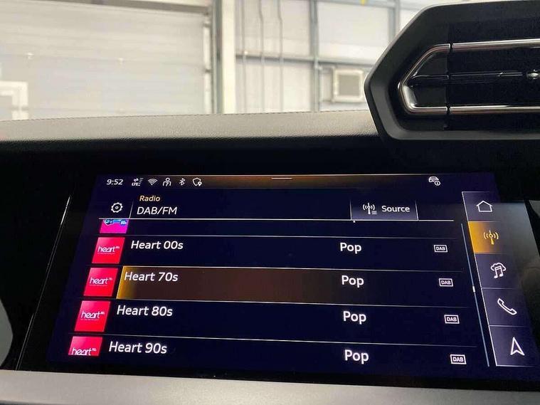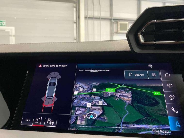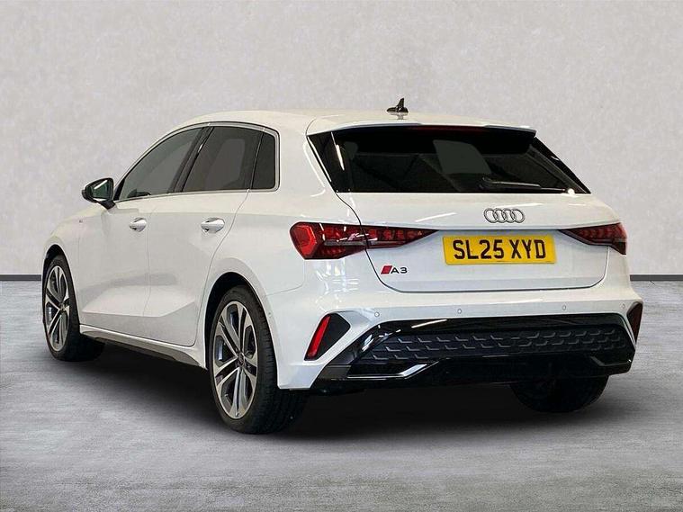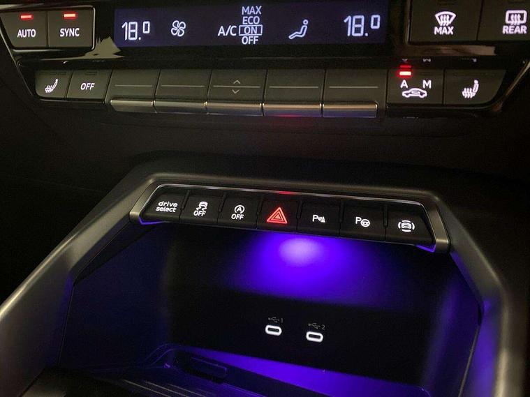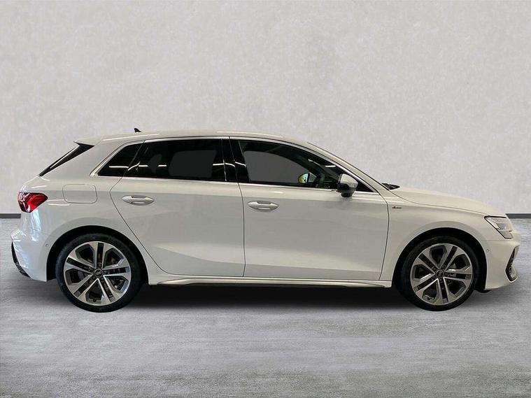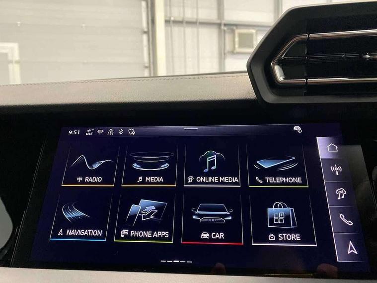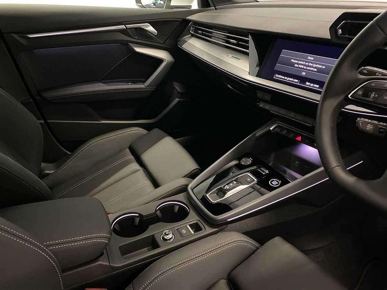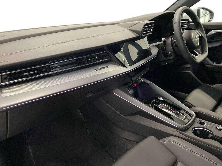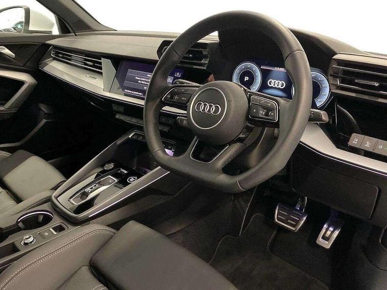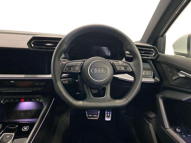 Adjustable speed limiter, Audi drive select, Audi smartphone interface with app store includes wireless Apple carplay, Android auto and Amazon alexa integration, Audi virtual cockpit plus - 12.3" full HD resolution dynamic digital instrument cluster, Automatic start/stop system with recuperation, Bluetooth interface, Camera based traffic sign recognition, Collision avoidance assistant, Cruise control, Distraction and Fatigue warning, e-Call (emergency call), Electromechanical power speed sensitive steering, Emergency assist, Lane departure warning system, MMI Navigation Plus with high resolution 10.1" colour touch screen display, Park Assist with parking system Plus, Service indicator, Tailgate, Trip computer, Voice control system with natural language interaction, Sports suspension, Audi Phonebox light with wireless charging, Audi sound system - 10 loudspeakers including centre loudspeaker and subwoofer, DAB Digital radio, USB ports with charging function in the rear, Acoustic glass windscreen, All weather light, Aluminium window trim, Auto dimming frameless rear view mirror, Automatic dynamic range control, Body colour exterior mirrors, Chrome exhaust tailpipes, Dipped beam, main beam, position light and turning light, Electrically adjustable/heated/folding/auto dimming door mirrors with integrated LED indications + kerb view function for passenger side, Exterior model badging, Front and rear side air inlets in grained matt black with dark liquid chrome frame, Front electric windows, Front radiator grill in high gloss dark chrome, Heat insulating glass windscreen, Illuminated door sills with aluminium inserts at the front with S logo, Intersection light, LED 3rd brake light, LED brake lights, LED daytime running x3, LED headlights with LED rear lights and dynamic rear indicators, LED rear number plate lights, LED reverse light, LED tail lights, Light and rain sensors, Manoeuvring light, Motorway light, Privacy glass - dark tinted rear window, rear door and side windows, Rear diffuser and grill in grained matt black with inlay in dark liquid chrome, Rear electric windows, Rear side wing doors, Rear wiper, S line bumpers, S roof spoiler, Side S line emblems on front wings, Side sill trim in dark liquid chrome, Static Cornering lights, 12V socket and storage compartment in front centre console, 3 seat bench in 2nd row, 3 spoke flat bottomed leather multifunction sport steering wheel with gear shift paddles, 3-zone deluxe automatic air conditioning, 4 way electrically adjustable lumbar support for driver and front passenger, 40/20/40 split folding rear seat bench, Black cloth headlining, Black front and rear floor mats, Front and rear centre armrest in artificial leather with contrasting stitching on armrests and instrument panel, Front and rear headrests, Heated front seats, Height and reach adjustable steering wheel, Manual boot compartment lid, Manually adjustable front seats, Rear centre armrest with cupholder, S badging on the steering wheel, Seat side bolsters, Single front passenger seat, Stainless steel pedals and front footrest in black, Twin leather upholstery with front sports seats S embossed logo, Aluminium interior elements pack - A3, Multi-coloured LED interior lighting package with Multi-coloured contour lighting of instrument panel - A3, 3x3 point rear seat belts, Driver and front passenger airbag with passenger airbag deactivation, Electronic Stabilisation Control (ESC) including ABS, ASR and EDL, First aid kit with warning triangle and 2 safety vests, Front side airbags with head airbags and interaction airbag, Hill hold assist, Pre-sense front with pedestrian and cyclist detection, Seatbelt monitoring, Tyre pressure loss indicator, Anti theft alarm, Anti-theft wheel bolts, Electronically operated child locks, Immobiliser, Remote central locking with safelock, Black dashboard, Inlay in dark aluminium spectrum,