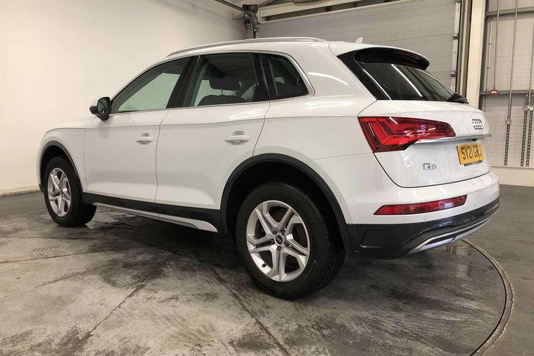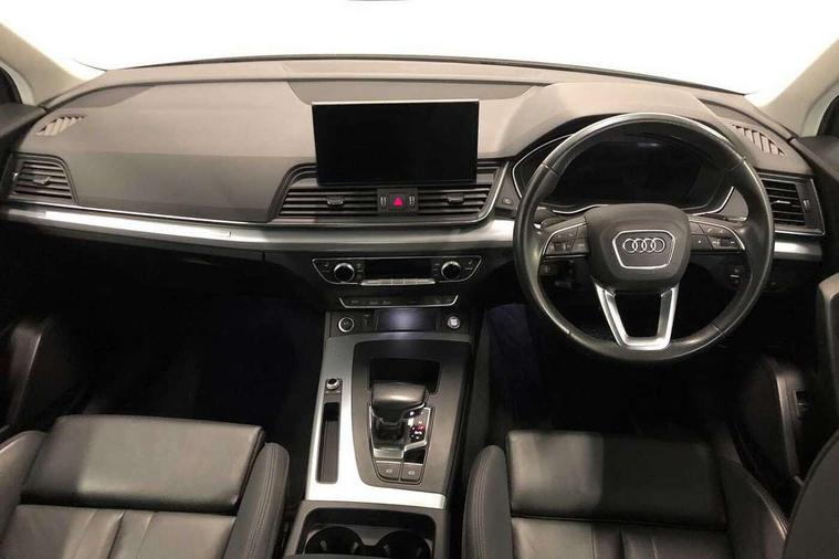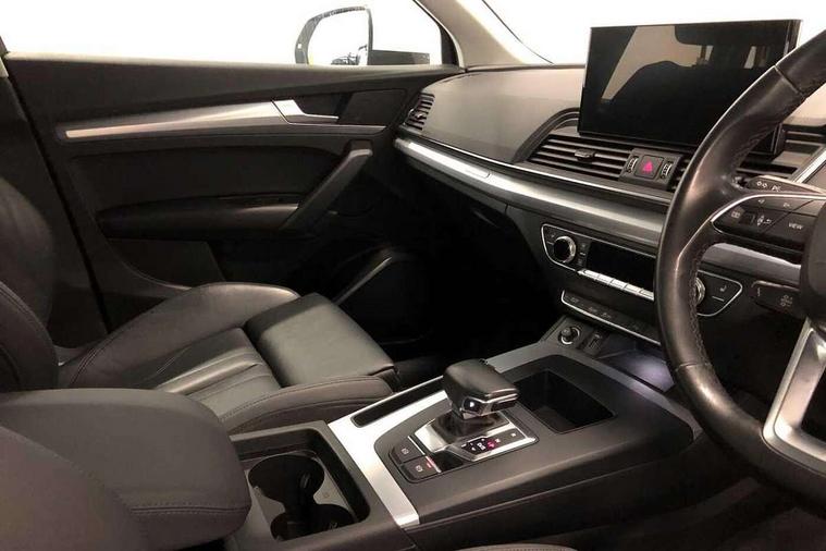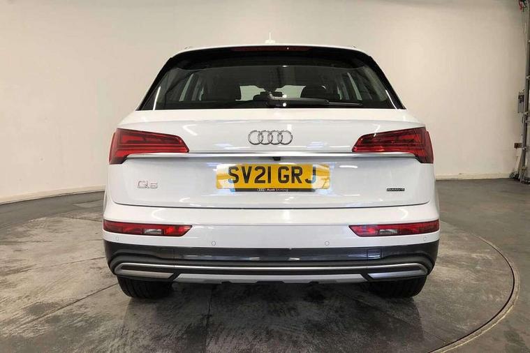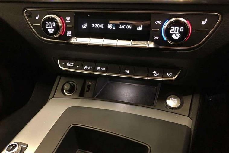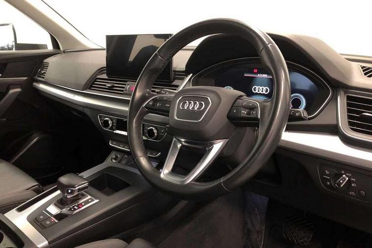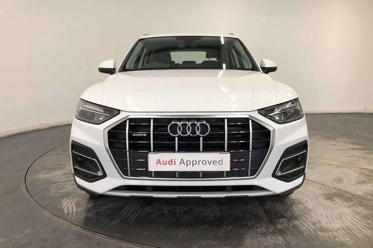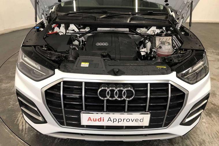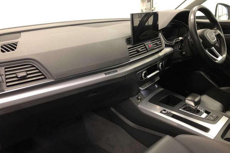 Audi connect safety and service (e-call), Audi connect with Amazon Alexa Integration, Audi drive select, Audi virtual cockpit plus with 12.3" screen and three different layout designs, Audi wireless smartphone interface, Automatic start-stop system with coasting functionality and efficiency programme, Bluetooth interface, Cruise control + speed limiter, Electro - mechanical power assisted steering, MMI navigation plus with 10.1" touch screen, Power tailgate, Reversing camera, Service interval indicator, Voice control system with Audi hotword activation "Hey Audi", Dynamic suspension, Quattro on demand, 2 x USB charging port with aux input socket, DAB Digital radio, Acoustic windscreen, Air inlets in matt titanium black with blades in matt aluminium silver, Aluminium roof rails, Auto dimming rear view mirror, Automatic headlights and windscreen wipers, Body colour bumpers, Body colour door mirrors, Chrome plated exhaust trims, Door sills in Selenite silver, Electric adjustable/heated/folding door mirrors, Front and rear electric windows, LED headlights and LED tail lights, Lower bumpers painted in contrast Manhattan grey, Matt selenite silver underbody protection, Matt twilight grey radiator grille with chrome vertical struts, Rear chrome trim strip below lights, Rear diffuser strip in selenite silver, Rear spoiler, Rear wiper, Roof bars, 3 rear headrests, 3 spoke multifunction leather steering wheel with shift paddles, 40:20:40 split folding rear seat with rear centre armrest, Comfort front centre armrest, Deluxe 3 zone electronic climate control, Door sills trims with aluminium inlays, Front/rear floor mats, Heated front seats, Height adjustable front head restraints, Height/reach adjustable steering column, ISOFIX child seat mounting and top tether, Luggage compartment cover, Manual seat adjustment with 4-way electric lumbar support, Removable luggage compartment floor, Silver cloth headlining, Sunvisors with vanity mirrors, Twin leather upholstery + front sports seats, High gloss pack - Q5, LED interior light pack - Q5, 3 point seatbelts on all seats, 6 airbags - Driver, front passenger, curtain and side airbags, Electrically operated child locks on rear doors, Electromechanical parking brake, Electronic stabilisation control including ABS, ASR and EDL, Front passenger airbag deactivation, Hill descent control, Hill hold assist, Multi collision brake assist, Pop-up bonnet for pedestrian protection, Pre sense city, Seat belt force limiter, Seatbelt monitoring, Tyre pressure warning, Warning triangle and first aid kit, Anti theft alarm, Anti-theft wheel bolts, Keyless Go access/ignition system, Aluminium rhombus inlay,