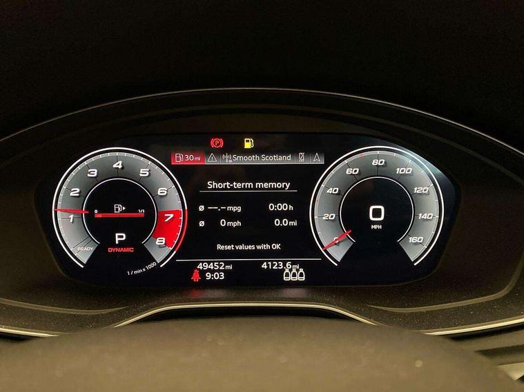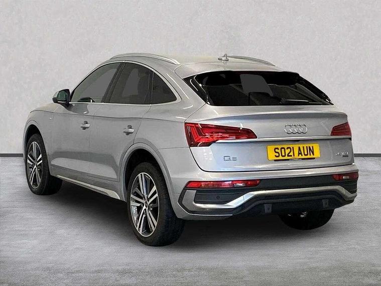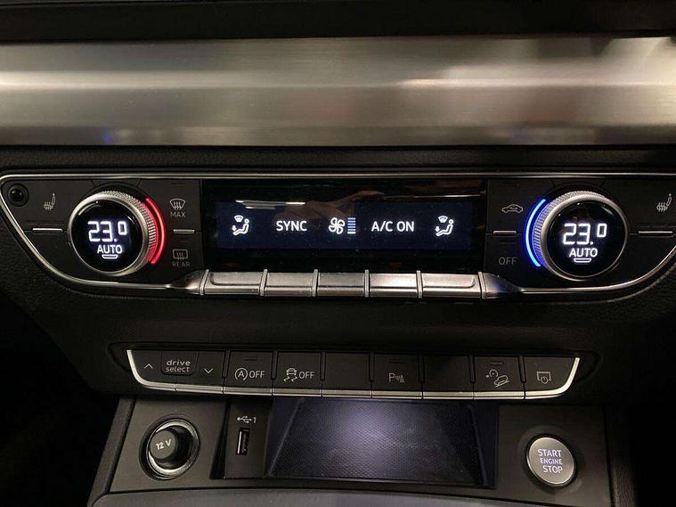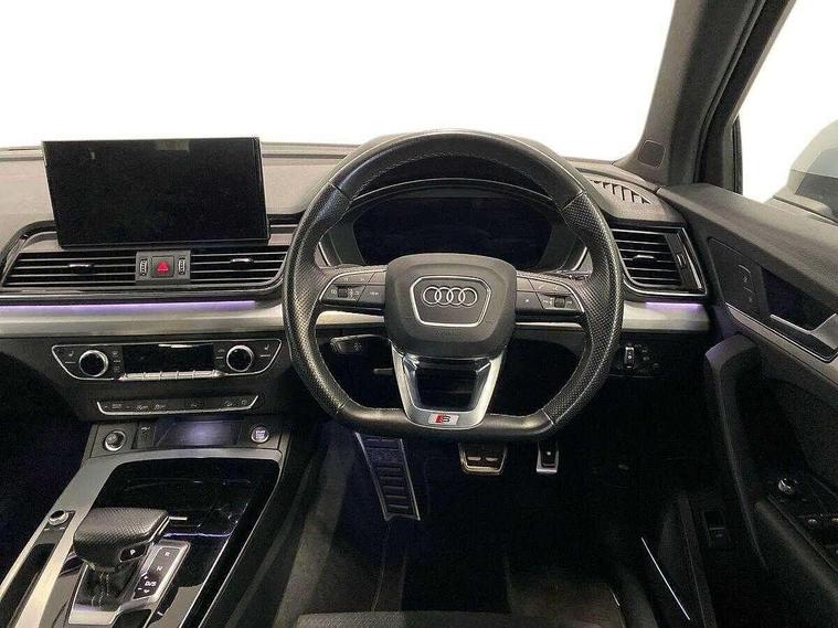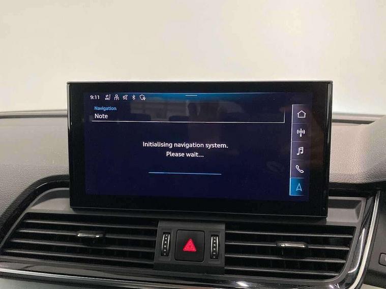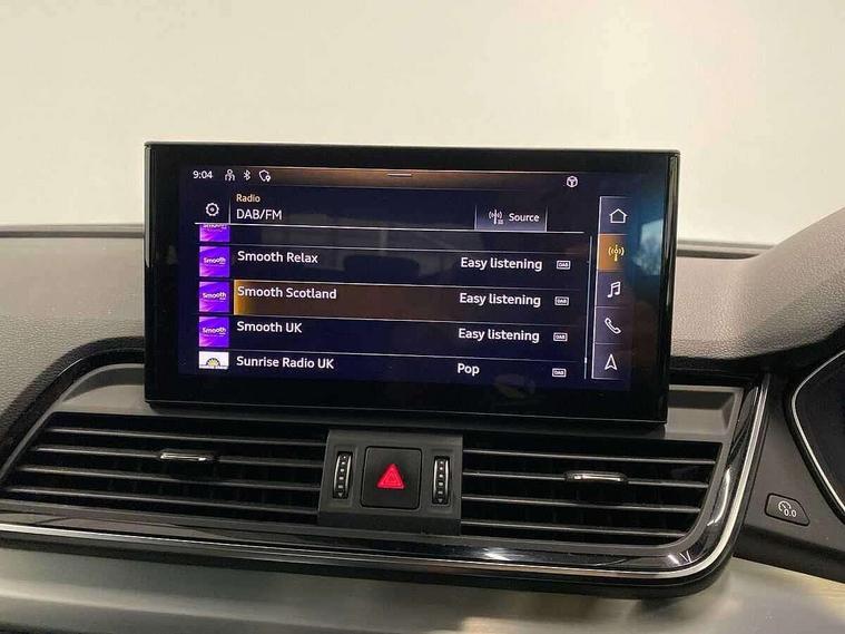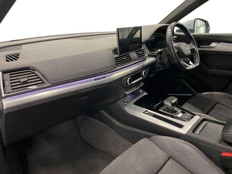 Audi connect safety and service (e-call), Audi connect with Amazon Alexa Integration, Audi drive select, Audi virtual cockpit plus with 12.3" screen and three different layout designs, Audi wireless smartphone interface, Automatic start-stop system with coasting functionality and efficiency programme, Bluetooth interface, Electro - mechanical power assisted steering, MMI navigation plus with 10.1" touch screen, Power tailgate, Reversing camera, Service interval indicator, Voice control system with Audi hotword activation "Hey Audi", Quattro on demand, S line sports suspension, 2 x USB charging port with aux input socket, DAB Digital radio, Acoustic windscreen, Aluminium roof rails, Audi matrix LED headlights with dynamic front and rear indicators, Auto dimming rear view mirror, Automatic headlights and windscreen wipers, Body colour door mirrors, Body colour rear diffuser with matt aluminium silver surrounds, Body colour underbody protection, Chrome plated exhaust trims, Door sills in Selenite silver, Electric adjustable/heated/folding door mirrors, Front air inlet surrounds in aluminium, Front and rear electric windows, Front radiator grille in honeycomb design, Headlight washers, Lower bumpers painted in contrast Manhattan grey, Rear chrome trim strip below lights, Rear privacy glass and rear side windows, Rear spoiler, Rear wiper, Roof bars, S Line badges on the front wings, S Line front and rear bumpers, S Line side skirts, 3 rear headrests, 40:20:40 split folding rear seat with rear centre armrest, Black cloth headlining, Comfort front centre armrest, Contrast stitching on seats, steering wheel and gear lever gaiter, Deluxe 3 zone electronic climate control, Front head restraints, Front/rear floor mats, Gear lever in black leather, Heated front seats, Height/reach adjustable steering column, Illuminated door sill trims with S logo, ISOFIX child seat mounting and top tether, Manual seat adjustment with 4-way electric lumbar support, Removable luggage compartment floor, Stainless steel pedals, Sunvisors with vanity mirrors, Trunk roller cover, High gloss pack - Q5, LED interior light pack - Q5, 3 point seatbelts on all seats, 6 airbags - Driver, front passenger, curtain and side airbags, Electrically operated child locks on rear doors, Electromechanical parking brake, Electronic stabilisation control including ABS, ASR and EDL, Front passenger airbag deactivation, Hill descent control, Hill hold assist, Multi collision brake assist, Pop-up bonnet for pedestrian protection, Pre sense city, Seat belt force limiter, Seatbelt monitoring, Tyre pressure warning, Warning triangle and first aid kit, Anti theft alarm, Anti-theft wheel bolts, Keyless Go access/ignition system, Matt brushed aluminium inlays,