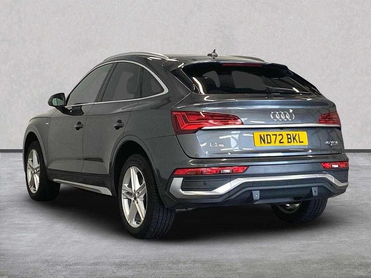 Audi connect safety and service (e-call), Audi connect with Amazon Alexa Integration, Audi drive select, Audi virtual cockpit plus with 12.3" screen and three different layout designs, Audi wireless smartphone interface, Automatic start-stop system with coasting functionality and efficiency programme, Bluetooth interface, Electro - mechanical power assisted steering, MMI navigation plus with 10.1" touch screen, Power tailgate, Reversing camera, Service interval indicator, Voice control system with Audi hotword activation "Hey Audi", 70 litre fuel tank, Quattro on demand, S line sports suspension, DAB Digital radio, Acoustic windscreen, Aluminium roof rails, Audi matrix LED headlights with dynamic front and rear indicators, Auto dimming door mirrors, Auto dimming rear view mirror, Automatic headlight adjustment, Automatic headlights and windscreen wipers, Body colour door mirrors, Body colour rear diffuser with matt aluminium silver surrounds, Body colour underbody protection, Chrome plated exhaust trims, Daytime running lights, Door sills in Selenite silver, Electric adjustable/heated/folding door mirrors, Front air inlet surrounds in aluminium, Front and rear electric windows, Front radiator grille in honeycomb design, Headlight washers, High level LED brake light, Lower bumpers painted in contrast Manhattan grey, Rear chrome trim strip below lights, Rear privacy glass and rear side windows, Rear side wing doors, Rear wiper, Roof bars, S Line badges on the front wings, S Line front and rear bumpers, S Line rear spoiler, S Line side skirts, 2 x USB charging port with aux input socket, 3 rear headrests, 40:20:40 split folding 3 rear bench seat in 2nd row with rear centre armrest, Black cloth headlining, Comfort front centre armrest, Contrast stitching on seats, steering wheel and gear lever gaiter, Deluxe 3 zone electronic climate control, Front head restraints, Front/rear floor mats, Gear lever in black leather, Heated front seats, Height/reach adjustable steering column, Illuminated door sill trims with S logo, ISOFIX child seat mounting and top tether, Manual seat adjustment with 4-way electric lumbar support, Removable luggage compartment floor, Single front passenger seat, Stainless steel pedals, Sunvisors with vanity mirrors, Trunk roller cover, High gloss pack - Q5, LED interior light pack - Q5, 3 point seatbelts on all seats, 6 airbags - Driver, front passenger, curtain and side airbags, Electrically operated child locks on rear doors, Electromechanical parking brake, Electronic stabilisation control including ABS, ASR and EDL, Front passenger airbag deactivation, Hill descent control, Hill hold assist, Multi collision brake assist, Pop-up bonnet for pedestrian protection, Pre sense city, Seat belt force limiter, Seatbelt monitoring, Tyre pressure warning, Warning triangle and first aid kit, Anti theft alarm, Anti-theft wheel bolts, Keyless Go access/ignition system, Remote central locking, Matt brushed aluminium inlays,