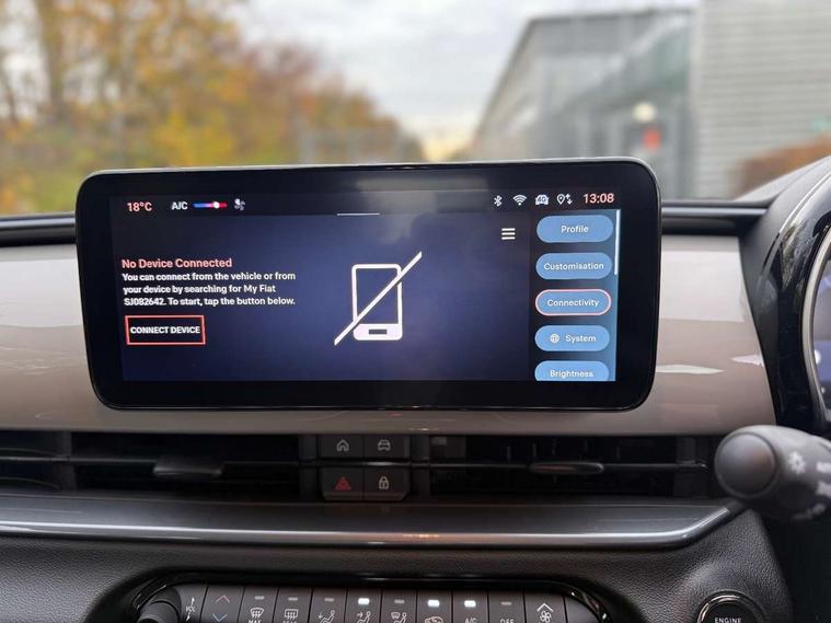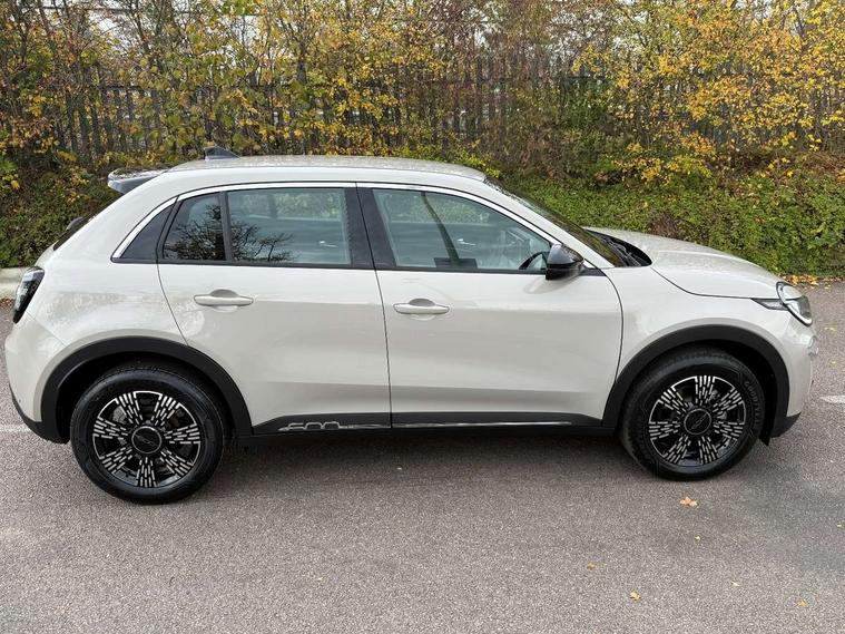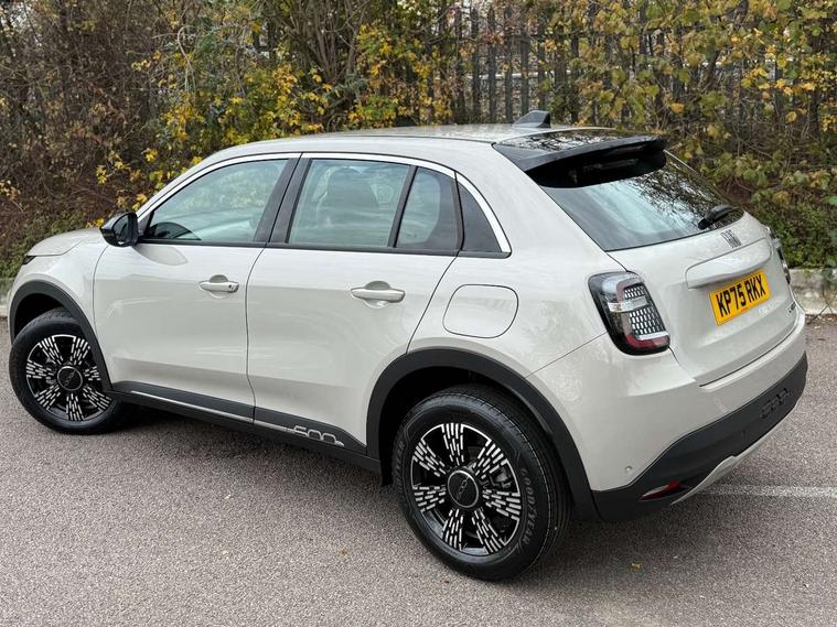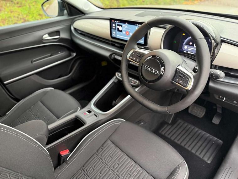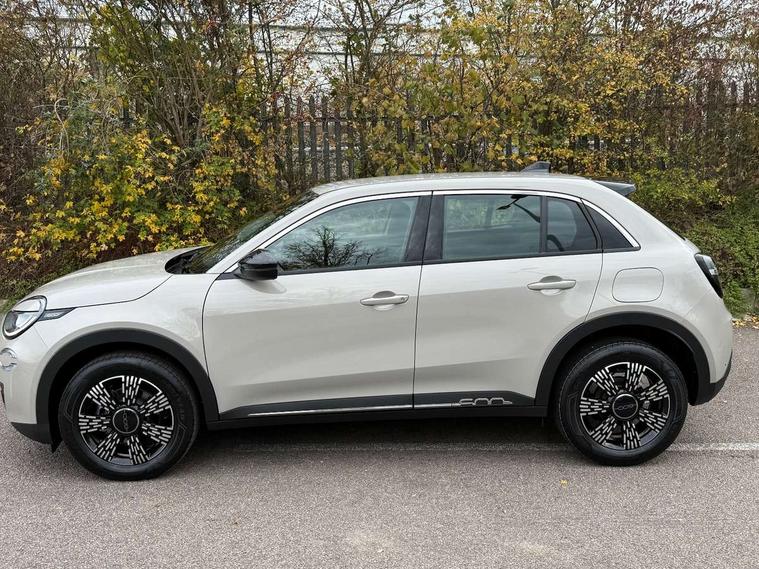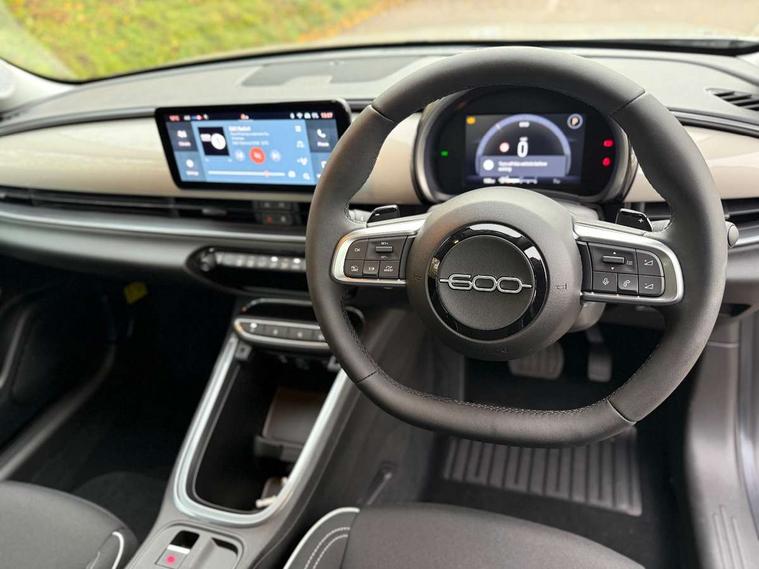 7" TFT digital cluster, Bluetooth connectivity, BSRF connectivity box, Connected services, Cruise control, Drowsy driver detection, Emergency E-call assist, Engine emission level default, GSR II step 1, Intelligent speed assist, Lane keeping assistant (LKA), Odometer, Power assist steering, Rain and dusk sensors, Rear parking sensors, Traffic sign recognition, Wireless apple car play/android Auto, Without drive mode selector, L2-AGM 12V battery, 1st Row USB type-A and USB type-C, 4 speaker audio system, Radio, Uconnect infotainment 10.25" touchscreen with DAB, All power windows express Up/Down, Auto dimming frameless rear view mirror, Automatic headlights, Body coloured door handles, Chrome day light openings, Electric adjustable door mirrors, Exterior chrome accents, Front and rear Chromed 600 logo, Gloss black finish B pillar, Gloss black shark fin antenna, Glossy black door mirrors, Heated windscreen wiper blade area, LED 3rd brake light, LED daytime running lights, LED Fog lamps with cornering function, LED front signature lighting, LED front turn indicators and position lights, LED rear lights, LED rear signature lighting, LED reflector headlamps, Matt black side skirts with 600 chromed logo, Rear bumper embossed 600 logo, Rear roof spoiler, Rear side wing doors, Rear wiper, 2 Spoke synthetic leather steering wheel with audio control, 3 rear headrests, 3 seat bench in 2nd row, 4 way manually adjustable passenger seat, 6 way manually adjustable drivers seat, Auxilliary 12V power socket, Body colour dashboard fascia, Chrome interior door handles, Dark metachrome dashboard ring, English handbook, Front centre armrest, Front headrests, Front passenger grab handle, Front seatback pockets, ISOFIX attachment on front passenger and rear passenger seats, Manual climate control, Metachrome central compartment bezel, Monogram fabric upholstery, Paddle shifts, Partial body cover for shipment, Predisposal for accessory upgrade to default tunnel pad cover (dedicated prnd bezel), Rear seat 40/60 split, Single front passenger seat, Smart 15L storage central tunnel with tunnel pad cover, Sunvisor label ciao Fiat, Sunvisors with vanity mirrors, 3x3 point rear seatbelts, 6 airbags, ABS, Autonomous Emergency Brake (AEB) & Vulnerable Road User (VRU) Protection, Child locks on rear doors, Electronic parking brake with auto hold, ESC (Electronic Stability Control), Front passenger airbag deactivation, Seatbelt reminder and pretensioners for all seats, Anti-theft volumetric alarm, Anti-theft wheel bolts, Keyless Go, 17" Diamond cut alloy wheels, Fix and go puncture repair kit,
