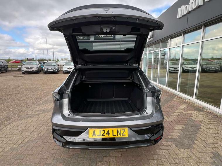12.3" driver information display cluster, 360 around view 3D camera, 4Control - 4 wheel steering technology, 9.3" head-up display, Adaptive cruise control, Apple car play and Android auto, Blind spot warning, Bluetooth, Driver attention alert system, Electric power boot opening, Emergency lane keep assist including solid line, oncoming traffic and road edge detection, Exterior temperature display, Hands-free parking, Internet access, Lane centering assist, Lane change warning, Lane departure warning, Lane keeping assistance, Miles per hour configuration, MULTI-SENSE driving modes (eco, comfort, sport and personal), My safety switch: shortcut to personalise configuration of driving aids, Navigation system with build in google maps, PAS, Qrescue, Renault automatic emergency assist, Safe stopping distance warning, Service interval indicator, Speed alert, Speed limiter, Traffic sign recognition, Trip computer, Voice control for navigation system with built in google assistant, Wireless phone charger, 12" open R link screen with built-in Google, DAB radio, Harman Kardon sound system with 12 speakers, Wi-Fi hot spot, 3rd brake light, Automatic headlights + automatic windscreen wipers, Automatic high / low beam, Black door mirrors, Body colour spoiler, Boot alloy kicking plate (trim on boot lip), Electric, heated, folding wing mirrors with memory, Esprit alpine exterior styling, Frameless auto-dimming rear view mirror with brightness adapt and rain sensor, Front and rear electric windows with one touch, Heated rear window, Heated windscreen, LED daytime running lights, LED rear lights with mirage effect, Matrix LED vision headlights, Privacy glass, Puddle lamps with logo illumination from door mirrors, Rear side wing doors, Rear wiper, Shark fin antenna, Solarbay panoramic sunroof, 12v socket in front, 2 front and 2 rear touch LED interior lighting, 3 rear headrests, 3 seat bench in 2nd row, 40:20:40 split folding rear bench seat, 6 way electric driver seats with 2 way lumbar and massage function, 6 way electric passenger seat with 2 way lumbar, Air purifier, Alcantara synthetic leather/fabric upholstery, Aluminium pedals, Automatic dual zone climate control, Black carpets, Blue trim within door pockets, Esprit alpine interior styling, Front headrests, Heated driver and front passenger seats, Heated steering wheel, Ingenious rear armrest with swivelling arms/foldout stands for devices and USB-C charging ports, Interior ambient lighting, ISOFIX child seat fixing points on rear outermost seats, Manual height and depth adjustable steering wheel, Multifunction steering wheel, Paddle shift levers for regenerative braking, Single front passenger seat, Sliding centre console armrest with storage, Synthetic leather sport steering wheel with triple topstitching and alcantara finish, 3 point seatbelts on all rear seats, ABS, Active emergency braking system - Urban, pedestrian/cyclist with junction function, Adjustable driver and passenger safety seat belts, Approaching vehicle sound for pedestrians, Blue trim seatbelts on front seats and outermost rear, Driver and front passenger airbags, Driver knee airbag, Electronic brake distribution, Electronic parking brake with auto hold function, Electronic Stability Programme (ESP), Emergency brake assist, Front thorax airbags, Hill start assist and trailer stability assist, Manual rear child locks, Multi-Collision braking, Occupant safe exit, Passenger airbag deactivation system, Passenger knee airbag, Rear active emergency braking system, Rear traffic alert and rear pedestrian alert with rear automatic braking, Row 1 and 2 curtain airbags, Seatbelt load limiter, Seatbelt pretensioners, Seatbelt reminder, Side airbags, Tyre pressure warning light, Alarm, Hands free key card with Keyless access and start, Immobiliser, Locking wheel nuts, Remote central locking, Super locking system, 20" Castellet black diamond-cut esprit Alpine alloy wheels with smoked varnish, Tyre inflation kit,