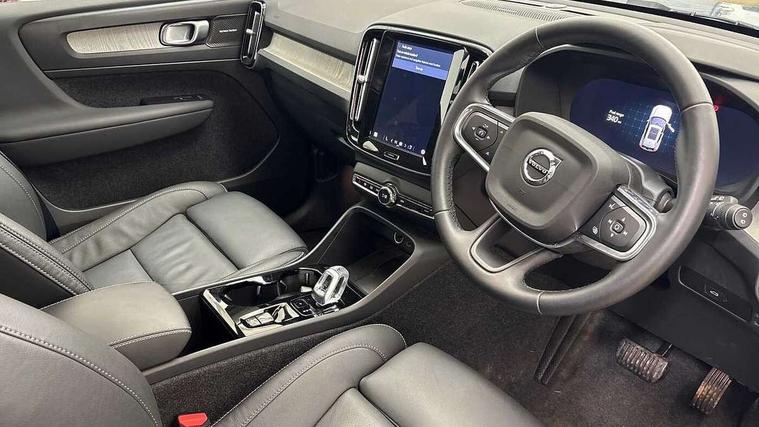 12.3" Progressive Driver Display, 360 degree surround view parking camera with side proximity sensors, 9" centre console portrait touch screen, Adjustable steering wheel force, Android auto (Wired), Apple carplay (wired), Bluetooth handsfree system, Driver alert control, Driver assistance (pilot assist and adaptive cruise control), Driver awareness - Blind spot information system with steer assist, cross traffic alert with autobrake and rear collision warning and mitigation, E-call, Front park assist, Google automotive services - Enabled entertainment apps, navigation with google maps, voice recognition with google assistant, Hands free power tailgate, Intelligent speed assistance, Lane keeping aid, Oncoming Lane Mitigation, Rear park assist, Speed sensitive steering, Volvo cars services with app - Driving journal, emergency and breakdown call, engine remote start, remote door locking/unlocking and vehicle dashboard, Wireless/Inductive Mobile Phone Charging, Automatic transmission with start/stop and manual change functions, Dynamic chassis, DAB Digital radio, Premium Sound by Harman Kardon, Dolby Pro Logic II Surround Sound, Dirac Unison, 12 speakers/600W and subwoofer, Steering wheel mounted remote controls, Active bending pixel LED headlights with adaptive shadow technology, Active high beam incorporating daytime running lights, Adaptive brake lights with high level LED brake lights, Auto dimming feature for exterior door mirrors, Auto dimming interior mirror, Automatic headlamp levelling, Dark tinted windows - rear side windows and rear screen, Front aluminium tread plates, Front and rear electric windows, Headlight cleaning system, High gloss black front and rear skid plate, High gloss black front bumper deco, High gloss black mesh front grille with high gloss black surround, High gloss black window trim, Home safe and approach lighting, Integrated roof rails in high gloss black, LED front fog lights with cornering function, Power glass tilt and slide panoramic sunroof with sun curtain, Puddle lights, Rain sensor with automatic windscreen wiper activation, Rear side wing doors, Rear wiper, Roof antenna, Roof spoiler, Visible VIN plate, 12V socket in front tunnel console and luggage compartment, 2-Zone electronic climate control with CleanZone air quality system and pollen filter, 3 seat bench in 2nd row, 3 Spoke tailored steering wheel with chrome trim, 60/40 versatile split folding rear seat, Centre console cupholders and storage, Flexible load floor and grocery bag holder, Floor mats, Front cabin courtesy lights, Front door pocket, front cupholder, ambient front door, rear reading, rear courtesy, instrument panel and tailgate lighting, Front footwell illumination, Front headrests, Front reading lights, Front seat cushion extensions, Front side step illumination (under door), Glovebox bag hook, Heated front seats, Height/reach adjustable steering column, High gloss centre tunnel deco, Illuminated glovebox, Illuminated luggage compartment, Illuminated vanity mirrors + ticket holder, Integrated waste bin, Isofix attachments on outer rear seats, Load cover, Load protection net, Multi directional lumbar support for driver and passenger seat, Power driver seat with memory + exterior mirrors memory, Power folding rear headrests, Power passenger seat, Rear armrest with cupholders, Single front passenger seat, Underfloor cargo storage, Climate pack without heated front seats - XC40, 3x3 point rear seatbelts, City safety with steering support with Pedestrian + cyclist + front collision warning with full auto brake and rear auto brake, Driver and passenger airbags, Drivers knee airbag, Electronic parking brake with auto hold, First aid kit, Front and outer rear seatbelt reminder and pretensioners, Front seats SIPS airbags, Hill descent control, Hill start assist, Inflatable curtain, Passenger airbag cut-off device, Power child locks on rear doors, Road sign information display, Run off Road Protection, SIPS (Side Impact Protection System), Slippery road and hazard light alert, Stability and Traction Control with Spin control, Engine Drag Control and Corner Traction Control, Tyre pressure monitoring system, Vehicle deceleration control with Anti-lock Brake System, Electronic Brake Distribution and Emergency Brake Assist, Warning triangle, WHIPS whiplash protection system - front, 2 x Key integrated remote control central locking including with deadlocking system and auto open/close windows and sunroof, Anti-theft alarm including immobiliser/volume sensor + level sensor, Keyless drive includes keyless entry and keyless start, Locking wheel nuts,