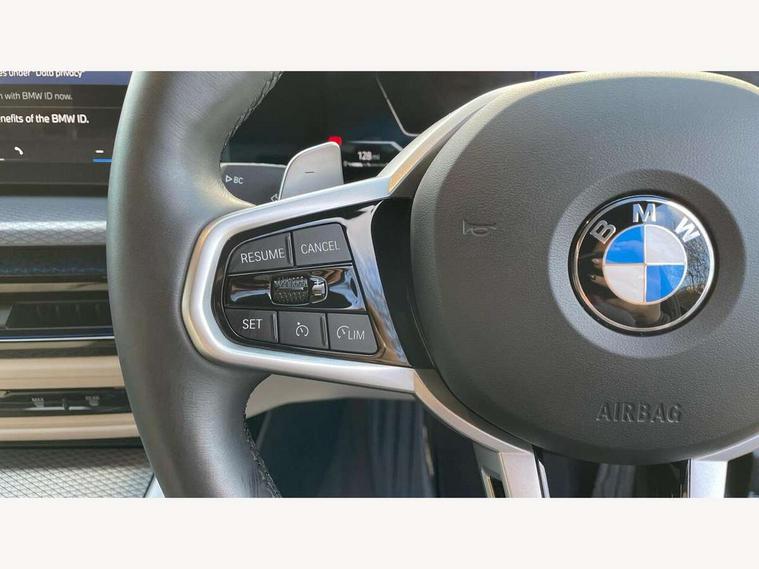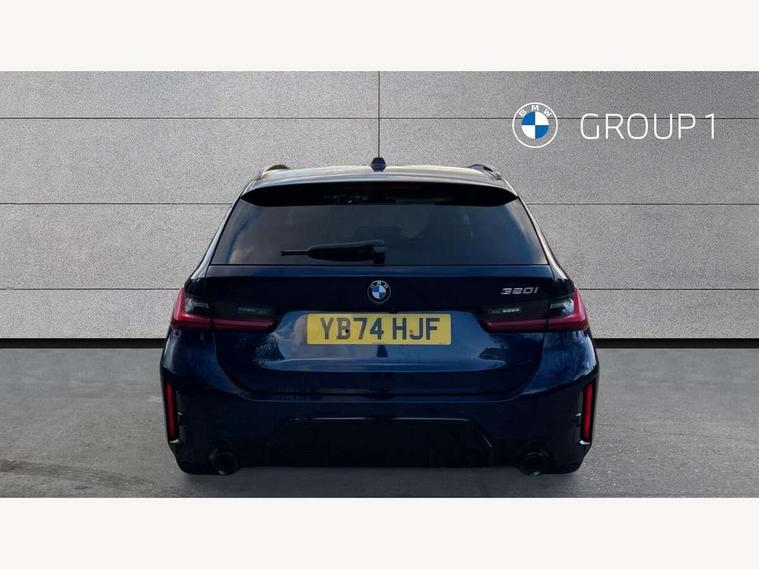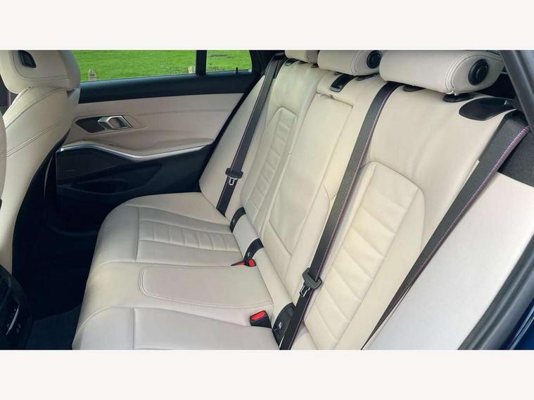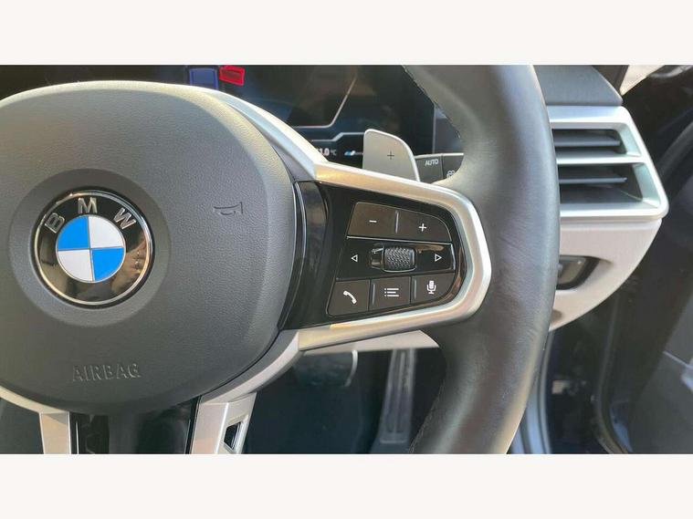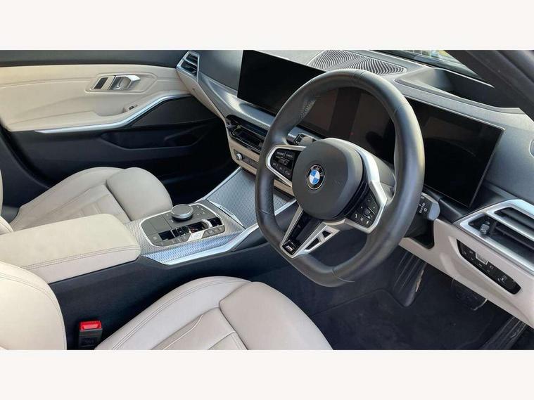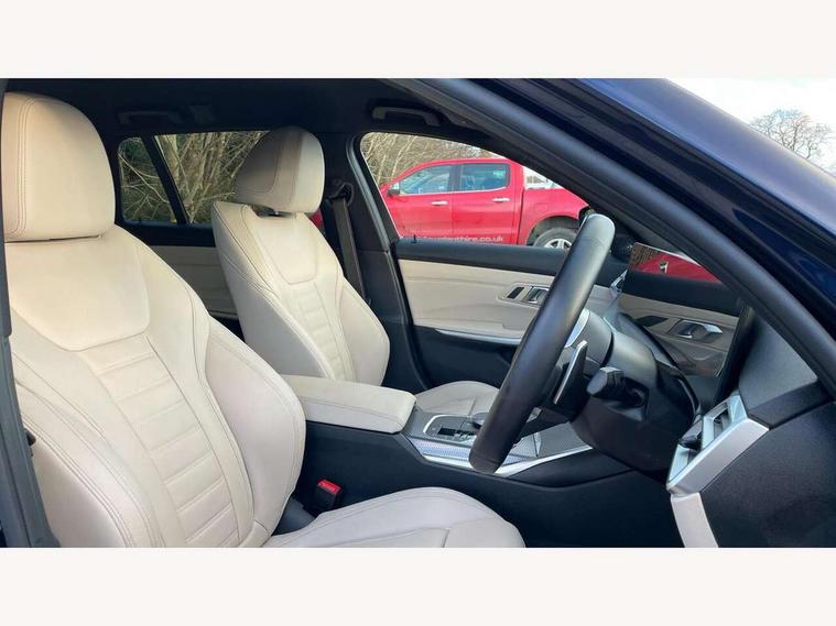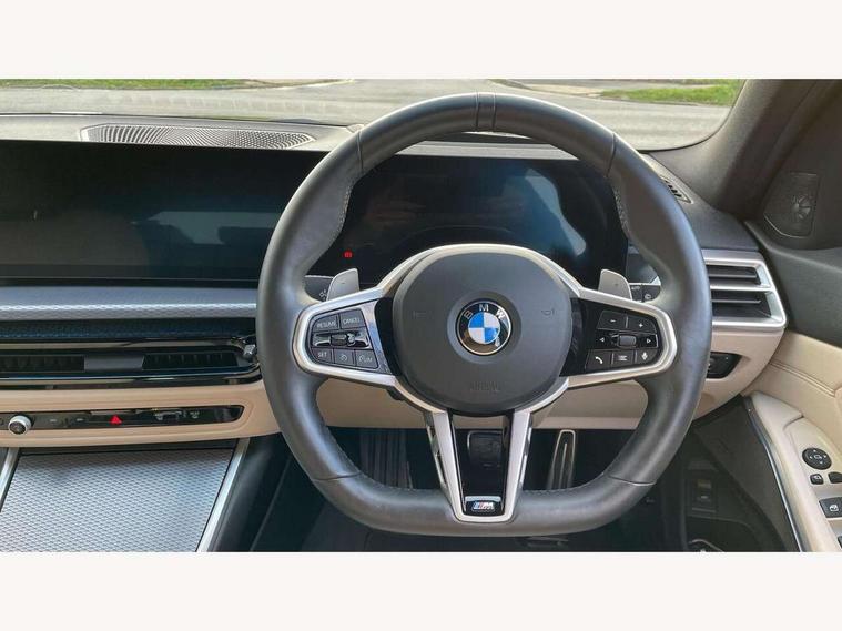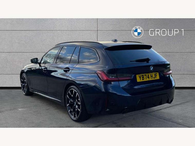 Active guard plus, Attentiveness assist, Automatic Start/stop button, Bluetooth Wi-Fi interface, BMW iDrive, BMW Teleservices, ConnectedDrive Services - last state call, Electric bootlid, Live cockpit plus with Navigation + 12.3" instrument display + 14.9" display, Intelligent voice assist, 2 USB, 4G LTE connect, Oil sensor for level and grade, Personal e-SIM, Shifting point display, Variable sport steering, Double joint spring strut front axle, Fuel tank breather system, Sport automatic transmission with steering-wheel mounted gearshift paddles and launch control, DAB tuner, 3rd brake light, Auto dimming rear view mirror, Automatic headlight beam throw control with load dependent regulating reaction, dynamic compensation of braking dive and acceleration squat, Bi-LED Low and high beam headlights, BMW emblem, engine compartment lid and tailgate, Body colour roof fin, Door sill strips, Electric windows - front and rear, with open/close fingertip control, anti-trap facility and comfort closing, Fading support, Follow me home headlight function, Front and rear bumper system with replaceable deformation elements, Front apron plastic in body colour, Fuel filler flap - right rear in body colour, Heat protection glazing on front windows and windscreen, Heated washer jets, High gloss chrome kidney frame with high gloss black kidney struts, High gloss shadow line roof rails, LED daytime running lights, LED rear lights, LED turn indicator, Licence plate panel integrated into front bumper and tailgate, M high gloss shadow line exterior trim, Matt black B-pillar finsher, Matt black window recess cover, One piece front bumper cover including towing eye cover in body colour, Rain sensor with automatic headlight activation, Rear side wing doors, Rear wiper, Reversing lights, Side frame decorative moulding black matt, Trailer stabilisation logic, Visible exhaust tailpipe finisher, Welcome lights in interior and door handle area, 12V power socket in front storage compartment, 2 front cupholder in centre console with clamping elements and matt black inlay, 3 seat bench in 2nd row, 3 spoke M Sport multifunction flat bottom leather steering wheel, 3 zone automatic air conditioning, 40:20:40 split folding rear seat with loading system, Anthracite headlining, Armrest integrated in front and rear door trim + front centre console armrest, BMW ID, Cruise control operation in steering wheel, Driving experience mode switch, Folding rear centre armrest with 2 cupholders, Front and rear headrests, Front and rear velour floor mats, Front footwell lighting, Front reading light, Heated front seats, Height adjustable mechanically and infinitely variable steering column, Illuminated armrest storage compartment, Illuminated glove compartment, Illuminated luggage compartment, Lashing eyelets in luggage compartment, Single front passenger seat, Sunvisors with illuminated vanity mirrors and ticket pocket, Toolkit located in luggage compartment, Connected pack professional - 3 Series Saloon/Touring, Interior and exterior mirror pack - 3 Series Touring/Saloon, M sport exterior styling pack - 3 Series Saloon/Touring, Parking assistant pack - 3 Series, 3x3 point rear seatbelts, BMW emergency call, Child locks on rear doors, Crash sensor activating of airbags, Unlocking doors, hazard warning lights, interior light, safety battery terminal, Drive-off assistant, Driver and front passenger with seat occupancy detection for driver's and passenger side, Driver and passenger side airbags, body protection at side and airbags deploy from seat backrests, Dry braking, Dynamic brake control, Dynamic stability control + (DSC+) - Anti-lock Braking System (ABS) with brake assist and cornering brake control + Automatic Stability Control (ASC), Dynamic Traction Control - DTC, Electric parking brake including automatic hold function and automatic release of the parking brake when driving off, Electronic differential lock control (EDLC), Front airbag deactivation, Front airbags for driver and front passenger, Head airbags in 1st and 2nd row, head protection at side, curtain airbags open from headliner above 1st and 2nd row, Plastic fuel tank, Side impact protection, Tyre pressure sensors, Ventilated front and rear disc brakes, Warning triangle and first aid kit, Alarm system, Centre lock switch, Closing system with central locking, Electronic vehicle immobiliser, Locking wheel bolts,