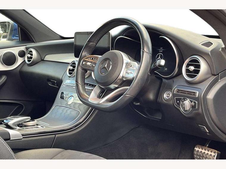 12.3" Active TFT crystal driver's instrument display, Active park assist with parktronic system, Attention assist, Bluetooth interface for hands free telephone, Collision prevention assist plus, Comand Online HDD Nav with media interface, radio/CD/DVD/MP3, 10.25 screen, linguatronic voice control, DYNAMIC SELECT with a choice of driving modes (ECO, Comfort, Sport, Sport+ and Individual), ECO start/stop function, Mercedes me connect including emergency call system, accident recovery, breakdown and maintenance management, Multi function trip computer, Outside temperature display, Pre-wiring for SD navigation system, Remote boot release, Reversing camera, Service indicator (ASSYST), Smartphone integration with Apple CarPlay and Android auto, Sports direct steer speed sensitive steering, Status display for rear seat belts in instrument cluster, Wireless charging, 66l fuel tank with increased capacity, 9G Tronic plus 9 speed automatic, Petrol Particulate Filter, Sport exhaust system, Audio 20 with integrated media interface and bluetooth handsfree function, DAB digital radio tuner, Mid-range sound system, SD card slot, Steering wheel audio controls, Two USB ports and one SD Card slot in centre console, Adaptive brake lights, AMG front, rear apron and side skirts, Body coloured bumpers, Body coloured door mirrors, Chrome grille surround, Chrome pins diamond radiator grille with integrated stars, Door sill panels with Mercedes Benz lettering, Electric windows with one touch opening/closing and obstruction sensors, Exterior mirrors heated and electronically adjustable, Full LED tail lamps, Green tinted glass, LED daytime running lights, LED Indicators, LED third brake light, Multi beam LED headlights, Privacy glass (rear side windows and rear screen), Radio aerial integrated into rear window, Rain sensor windscreen wipers, Side windows surround in polished aluminium, Visible twin pipe exhaust trim integrated into rear bumper, 2 cupholders in front centre console, 2 rear head restraints, 3 spoke AMG flat bottom multi-function nappa leather steering wheel with touch controls, 40:20:40 split folding rear seats, AMG sports seats, Artico man-made leather upper dashboard and beltlines with contrast stitching, Auto Mercedes-Benz child seat recognition sensor, Black floor mats with AMG lettering, Electrical height and back adjustment front seat, Front centre armrest with storage compartment, Front head restraints, Front LED reading lights, Heated front seats, Illuminated glove compartment stowage, Interior lighting - 64 colour Ambient lighting, Sports pedals with stainless steel surfaces and rubber studs, Steering wheel gearshift paddles, Sunvisors with illuminated vanity mirrors, THERMATIC 2 zone automatic climate control, Interior lighting package - C Class, Mirror package - C Class, Seat comfort pack - C Class, Stowage space pack - C Class, 2 rear seatbelts, 3 point automatic seatbelts, Active bonnet, Adaptive brake system with hold function, hill start assist and brake drying function, Anti-lock braking system (ABS), Automatic seatbelt pretensioner for driver and front passenger, Black seat belts, Brake calipers with Mercedes-Benz lettering + perforated brake discs, Dual stage airbags - driver and front passenger, front sidebags, driver kneebag, pelvis bag and windowbags for driver, front and rear passengers, Electronic parking brake, Electronic Stability Programme (ESP), ISOFIX child seat attachment points with top tether in rear, Tyre pressure monitoring system, Warning triangle and first aid kit, Anti-theft alarm system/interior protection with tow-away protection and interior monitoring systems, Central locking with interior switch, automatic locking and crash sensor with emergency opening function, Chrome surround in electric key, Immobiliser, KEYLESS-GO starting function, Black ash wood with brushed aluminium trim,