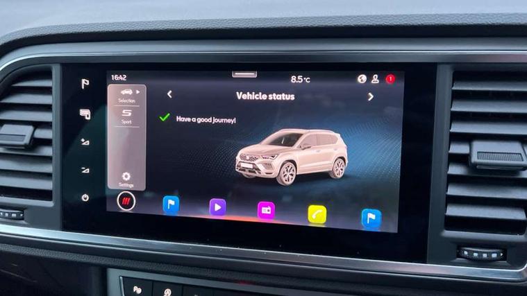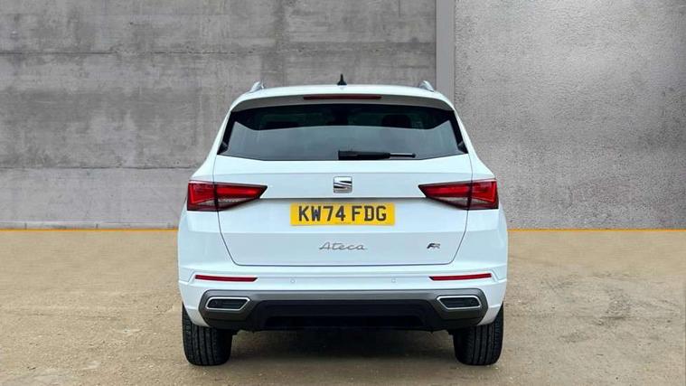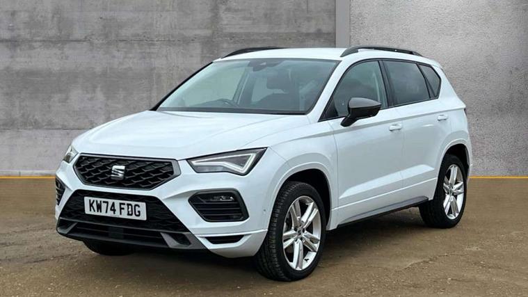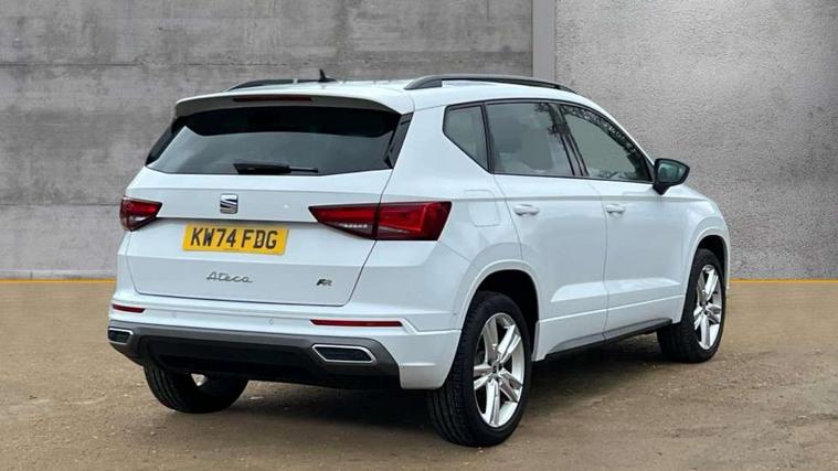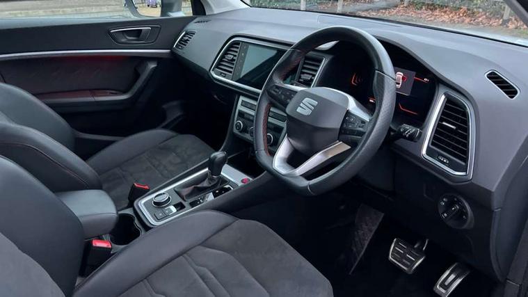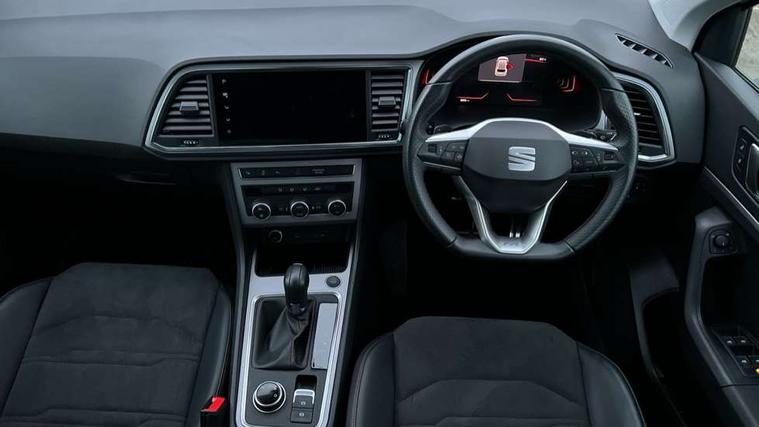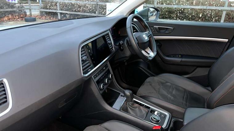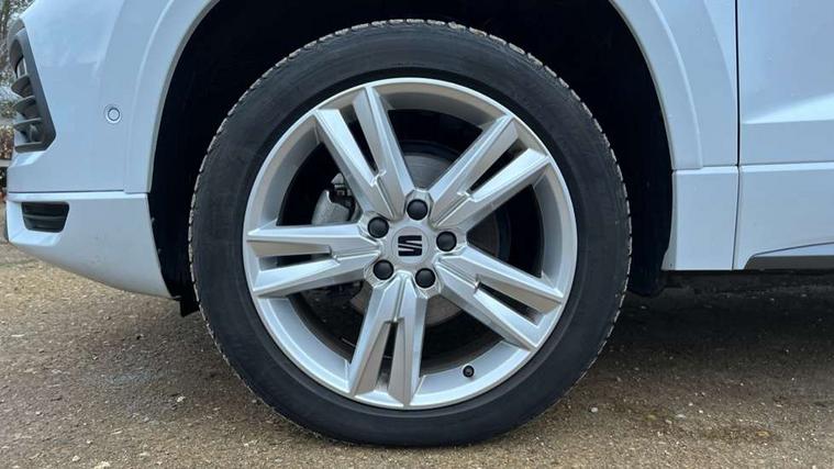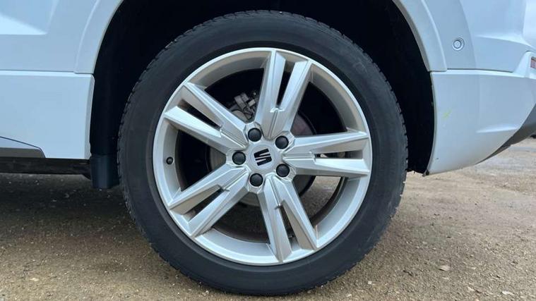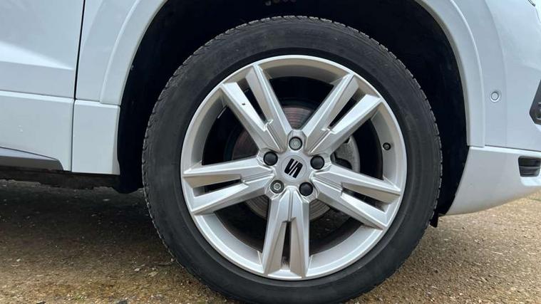 8" Digital cockpit, Colour multi-function on board computer display, Cruise control system with speed limiter, E-call, Outside temperature gauge, Progressive power assisted steering, SEAT drive profile with driving experience button - Normal, Sport, Eco and Individual mode, gearshift, steering and throttle response, Self parking functionality (includes front and rear parking sensors), Start/stop system, Tailgate, Trip computer, wired and wireless full link smartphone integration, Wireless phone charger, Steering wheel mounted audio/phone controls, Black roof rails, Black side window trim, Body colour bumpers, Body coloured wheel arch surrounds, Chrome front grille frame, Dark tinted rear windows, Daytime running lights, Door mirrors with welcome light silhouette, Dynamic headlight range control with self adjusting whilst driving, Electric adjustable/heated/folding door mirrors, Front and rear electric windows, Full LED headlamps with lens and LED front fog lamps with cornering function, Illuminated aluminium front door sill, LED 3rd brake light, LED rear tail lights with dynamic indicators, Rear exhaust tailpipe, Rear fog lights, Rear side wing doors, Rear wash/wipe, Roof spoiler, Variable front intermittent wipers, 12V socket in front, 3 seat bench in 2nd row, 60/40 split folding rear seat, Aluminium pedals, Dinamica upholstery with front comfort seats, Drawer under right front seat, Dual zone climate control, Front and rear head restraints, Front centre armrest, Front seat back storage pockets, Height adjustable driver and passenger seat with lumbar adjustment, ISOFIX points in outer rear seats with top tether anchorage points, Leather sports steering wheel and gear knob, Rear armrest and easy back seat release mechanism from boot, Single front passenger seat, Steering wheel mounted gearshift paddles, Convenience pack - Ateca, Interior lighting pack - Ateca, Navigation system pack with DAB - Ateca, Safety and driving pack with attention and drowsiness assist - Ateca, 3x3 point rear seatbelts, ABS, Traction control system (TCS), Electronic stability control (ESC) and Electronic differential lock system (XDS), Airbags - Driver and front passenger airbag with deactivation, front side, two curtain and driver's knee airbags, Electric parking brake with auto hold function, Front and rear seatbelt reminder, Front assist with autonomous emergency braking, Hill hold control, Manual rear child locks, Single tone horn, Tiredness recognition system, Tyre pressure monitoring system, Alarm, Keyless entry, Locking wheel bolts, Remote central locking, Chrome interior detailing, 18" Brillaint silver alloy wheels,