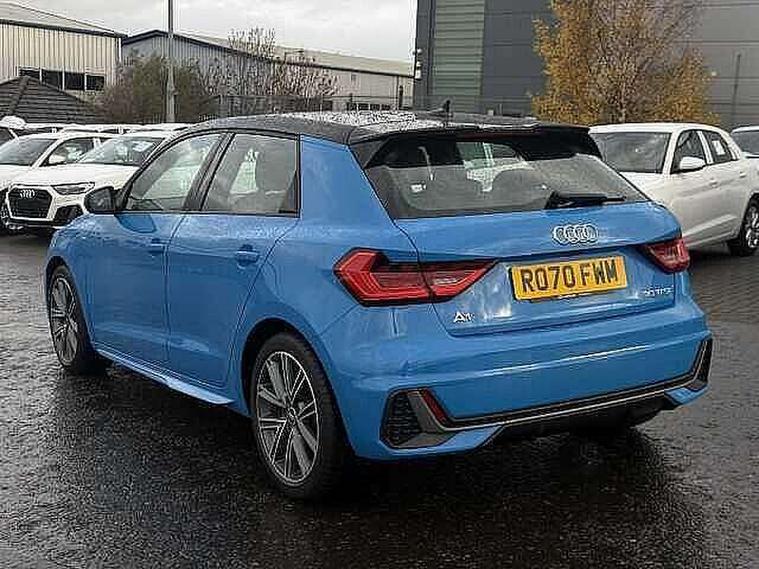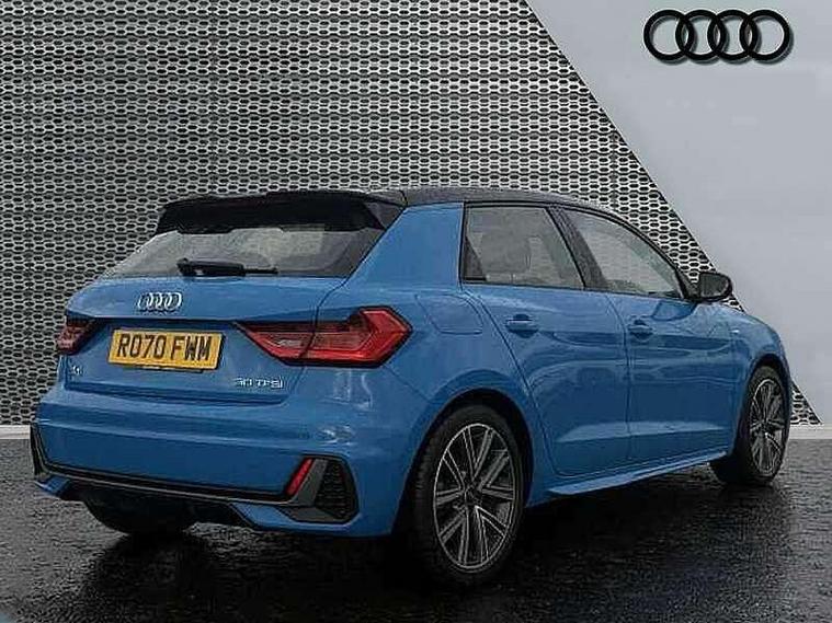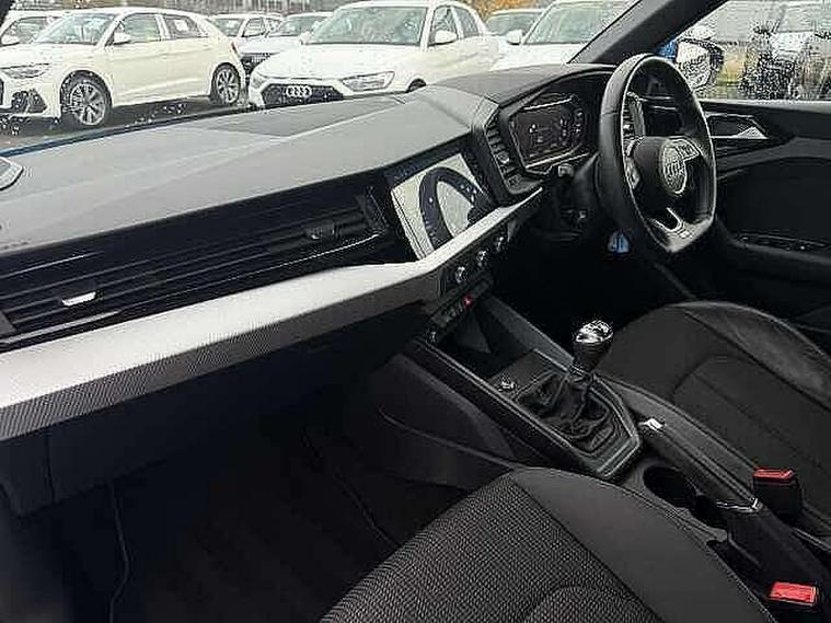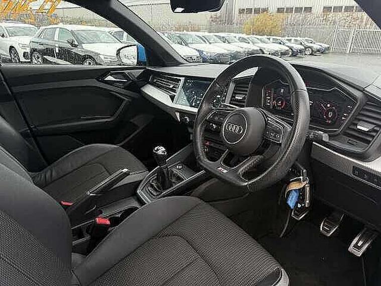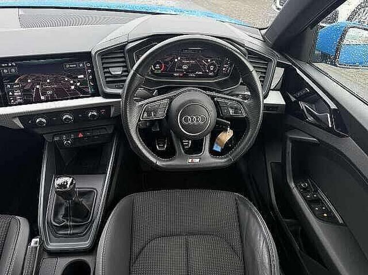 10.25" Digital instrument cluster display classis style instrument dials + speed, odometer, time, outside temperature, telephone menu + fuel level warning, Audi connect safety emergency and service including E-call, Audi drive select - power steering assistance + engine, Audi smartphone interface with connect compatible smartphone via USB directly MMI display + Nav, music, third party apps controlled via MMI controller, Automatic start/stop system, Bluetooth interface, Cruise control, Driver's information system, Electromechanical power steering, Lane departure warning system, Rear parking sensor, Service interval indicator, Speed limiter, Voice control system, Washer fluid level indicator, Sports suspension, 1 x SDXC card reader, 1 x USB type C and 1 USB type A charging points, DAB Digital radio, MMI radio plus with 8.8" colour MMI display screen and MMI touch, Auto dimming rear view mirror, Body coloured door mirrors, Door sills with aluminium inlays and S Line logo, Electric front and rear windows, Electrically adjustable, heated, folding door mirrors with integrated LED side indicator, Front side air inlets in grained matt black and C frame in titanium black, Heat insulating glass windscreen and side windows, Heated rear windscreen, LED headlights with LED rear lights + dynamic rear indicators + headlight adjustment and high beam, turning light + LED daytime running lights, Radiator grille and rear diffuser in matt titanium black, Radiator protective grille frame in matt aluminium silver, Rain and light sensors, Rear fog lights, Rear wiper, S line badges on front wings, Side front spoiler lips in grained matt black, 12V socket in centre console with two cup holders, 3 rear seats with headrests, 40:60 Split folding rear seat or folded fully, Black cloth headlining, Driver and passenger seat with manual height adjust with forward and backwards adjustment, Front and rear black floor mats with contrast stitching in fine silver, Front head restraints, Height and reach adjustable steering wheel, ISOFIX child seat mounting for front passenger and outer rear seats including top tether attachment point of outer rear seats, Leather gear knob with aluminium trim, Luggage compartment light with front and rear reading lights, Manually adjustable lumbar support in front seats, Stainless steel pedals, LED interior lighting pack - A1, Luggage compartment pack - A1, S line exterior styling pack - A1 Sportback, 3x3 point rear seatbelts, Audi pre-sense front with pedestrain and cyclist recognition, Brake assist function, Driver and front passenger airbag with front side and head airbags, Electronic Stability Control including ABS, EBD, ASR and EDL, Front and rear seatbelt reminder, Front passenger airbag deactivation switch, Hill hold assist, Seatbelt height adjustment for front seats, Seatbelt monitoring, Tyre pressure warning light, Warning triangle and first aid kit, Anti theft alarm, Anti theft wheel bolts and loose wheel warning, Immobiliser, Remote central locking with 2 foldaway keys, Aluminium trim for control switches, air vents and digital instrument cluster, Silver grey inlays polygon structure in diamond paint finish, Structured grey accent areas including air vents, door handle recesses and centre console in quartz paint finish,