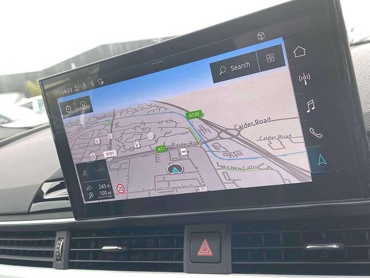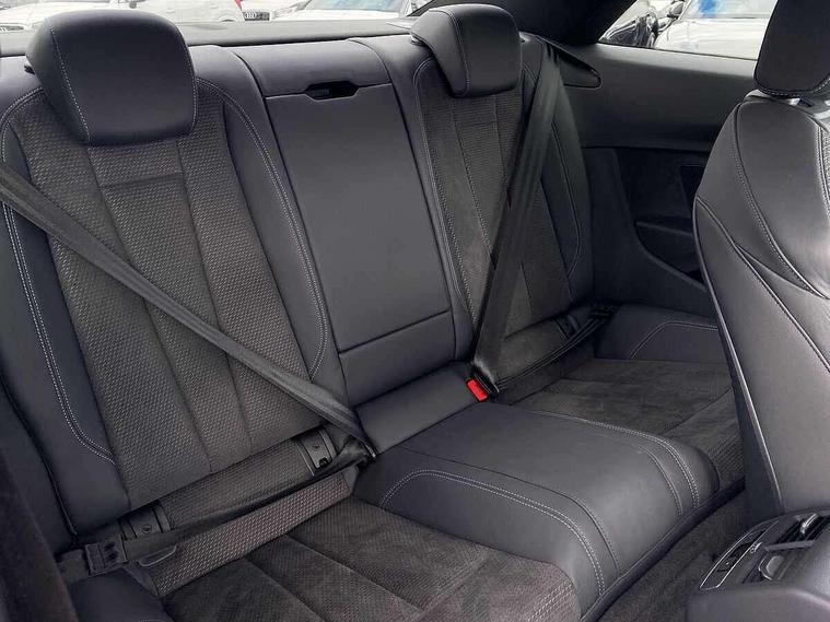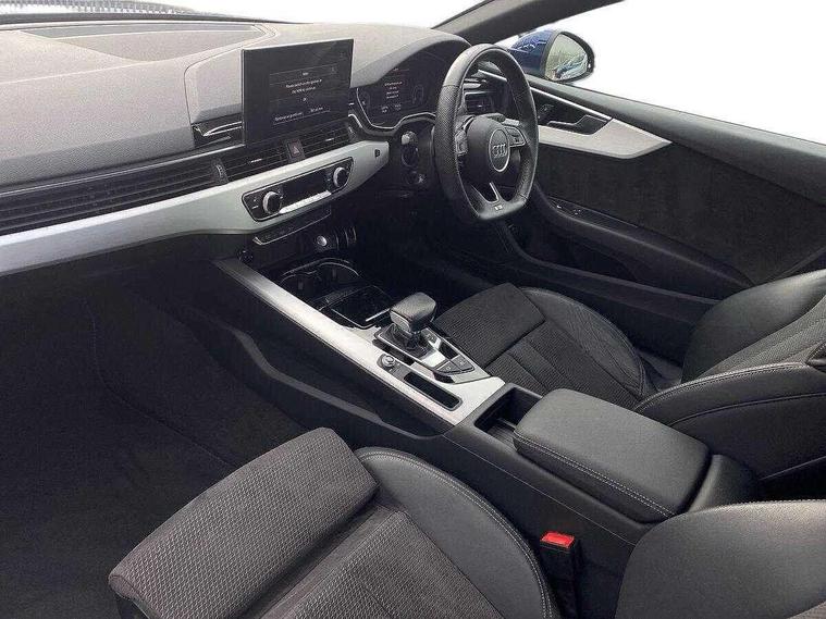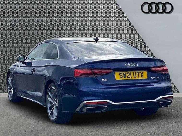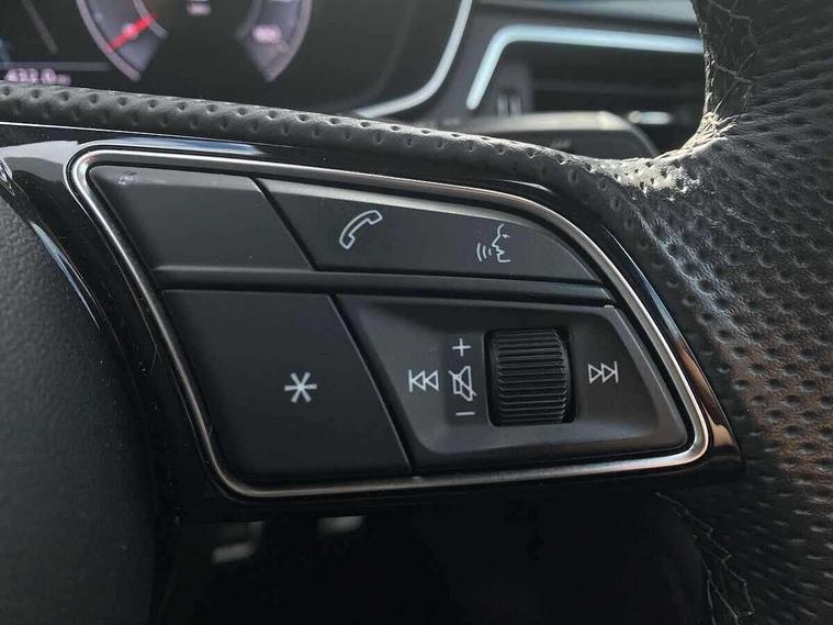 Audi connect safety and service (e-call), Audi connect with Amazon Alexa Integration, Audi drive select (Auto, Comfort, Dynamic, Efficiency and Individual), Audi parking system plus with front and rear sensors, Audi phone box with wireless charging, Audi smartphone interface, Audi virtual cockpit - 12.3" full colour digital instrument cluster, vehicle/engine speed, Radio/media information+Driver assistance systems, Automatic start-stop system with coasting functionality and efficiency programme, Bluetooth interface, Electric boot lid release, Electro-mechanical power steering, Email, calendar and text messages displayed via MMI, MMI nav+ with MMI touch - 10.1" high resolution MMI display, touch sensitive, 3D map, route/country info, dynamic route guide, personal route assist, Rear view camera, Service interval indicator, Voice control system, Diesel particulate filter, Sports suspension lowered by 23mm, 8 passive loudspeakers, CD player, DAB digital radio reception, Two additional USB ports for rear passenger in rear centre console, Two SDXC card slots, Audi matrix LED headlights with LED rear lights + dynamic front and rear indicators, Auto dimming rear view mirror, Body colour bumpers, Body colour door handles, Body colour front spoiler lip, Body colour side sill trim, Body coloured door mirrors, Electric adjustable heated door mirrors, Electric folding door mirrors, Electric front windows, Front fog lights, Honeycomb structure radiator grille in grained matt black, LED daytime running lights, Matt aluminium silver tailpipe trim, Privacy glass, Rain and light sensors, S line badges on front wings, S line front and rear bumpers with side skirts, S Line rear diffuser in matt titanium black with trim strip in matt aluminium silver, Side air inlets in grained matt black with matt aluminium silver inlay, Windscreen with acoustic glazing, 4 way electric lumbar support for driver and front passenger, 40/20/40 split folding 2 seater rear seat bench with rear centre armrest, Adjustable steering column, Black cloth headlining, Black perforated leather gearknob, Contrast stitching on seats, steering wheel and gear lever gaiter, Deluxe 3 zone electronic climate control, Front centre armrest, Front head restraints, Front/rear floor mats, Heated front seats, Illuminated door sill trim with S logo, ISOFIX child seat mounting and top tether, Luggage compartment mat, Manual seat adjustment, Rear headrests, Stainless steel pedals, Sunvisors with vanity mirrors, Tool kit, LED interior light pack - A5/RS5, 2 x 3-point rear seat belts, 6 airbags - Driver, front passenger, curtain and side airbags, Electromechanical parking brake, Electronic Stabilisation Control (ESC) including ABS, ASR and EDL, Front passenger airbag deactivation, Height adjustable front seatbelts, Hill hold assist, Multi collision brake assist, Pop-up bonnet for pedestrian protection, Pre sense city, Seatbelt monitoring, Tyre pressure warning, Variable restraint system, Warning triangle and first aid kit, Anti theft alarm system, Anti theft wheel bolts, Immobiliser, Keyless Go, Remote central locking, Matt brushed aluminium inlays, Tyre repair kit,
