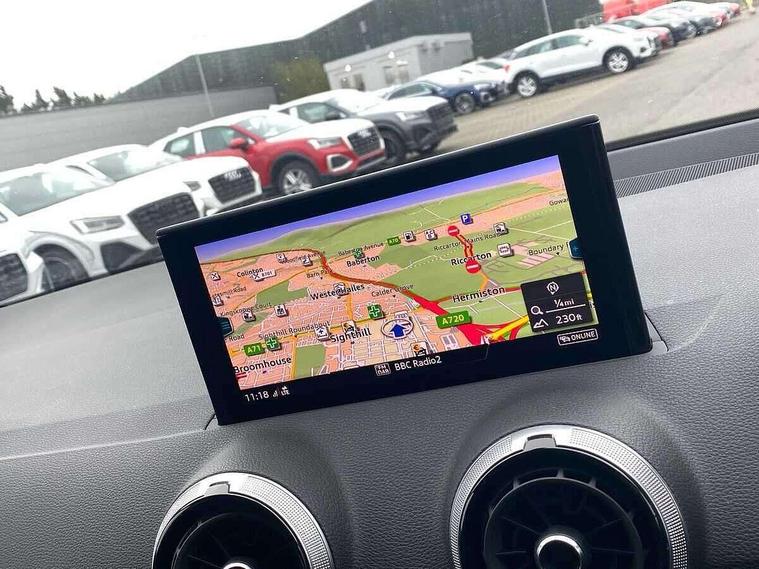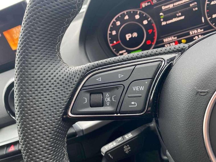3D map display, Audi connect navigation and infotainment includes innovative services, Audi connect remote and control connects your vehicle to your smartphone, Audi drive select: S tronic - power steering assistance + engine + gearshift (modes: comfort, auto, dynamic, efficiency, individual), Audi smartphone interface - Apple carplay/Android Auto, USB connect, 2xSDXC card readers, voice control for navi, telephone, music and 3rd party apps, Audi virtual cockpit, Automatic start/stop system with recuperation, Bluetooth interface includes bluetooth audio streaming, Cruise control, Distraction and Fatigue warning, E-call, Jukebox hard drive memory for music (10GB), Lane departure warning, MMI navigation plus with 8.8" touchscreen, Natural voice recognition, Power operated tailgate, Progressive steering, Rear parking sensors, Sport suspension, 6 passive loudspeakers, DAB Digital radio, USB type C port, Auto dimming rear view mirror, Black window trims, Body colour door mirrors, Electrically adjustable, folding, auto dimming and heated door mirrors with integrated LED side indicators, Front windscreen with grey tinted sunband, LED daytime running lights, LED headlights with dipped beam, high beam, position lights, indicators, LED rear lights, LED third brake light, Privacy glass - dark tinted rear and rear side windows from B-pillar backwards, Rear side wing doors, Rear wiper, S Line badges on the front wings, S Line body styling - front and rear bumpers, side skirts, radiator grille, rear diffuser insert and front air intakes, Variable front intermittent wipers, Wheel arch trims in manhattan grey, 12v socket in front, 3 seat bench in 2nd row, 3 spoke multi-function leather steering wheel with S badging, 4-way electric lumbar support for front seats including manual seat height adjustment for both front seats, 60/40 split folding rear seat bench, Black carpets, Black cloth headlining, Front and rear head restraints, Front centre armrest, Front sport seats, Front/rear floor mats, Height/reach adjust steering wheel, Illuminated door sill trims with S logo, ISOFIX child seat mounting in front passenger and rear outer seats, Manual air conditioning, Single front passenger seat, Stainless steel pedals, 3x3 point rear seatbelts, 6 airbags - Front, curtain and front side airbags, Electromechanical parking brake, Electronic stabilisation control including ABS, ASR and EDL, Front passenger airbag deactivation, Hill hold assist, Pre-sense front with pedestrian recognition, Seatbelt monitoring, Tyre pressure warning light with visual and acoustic warning, Warning triangle and first aid kit, Anti theft alarm, Anti theft wheel bolts, Electronically operated child locks, Remote central door locking, Aluminium interior element, Black dashboard, Gloss black centre console, Matt brushed aluminium trim inlays, Tool kit,