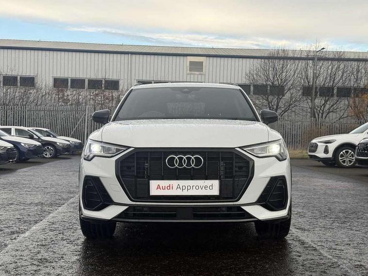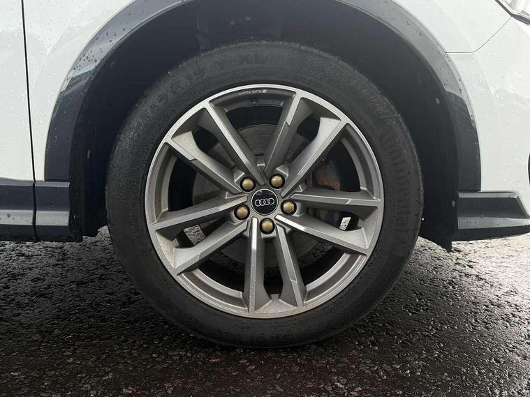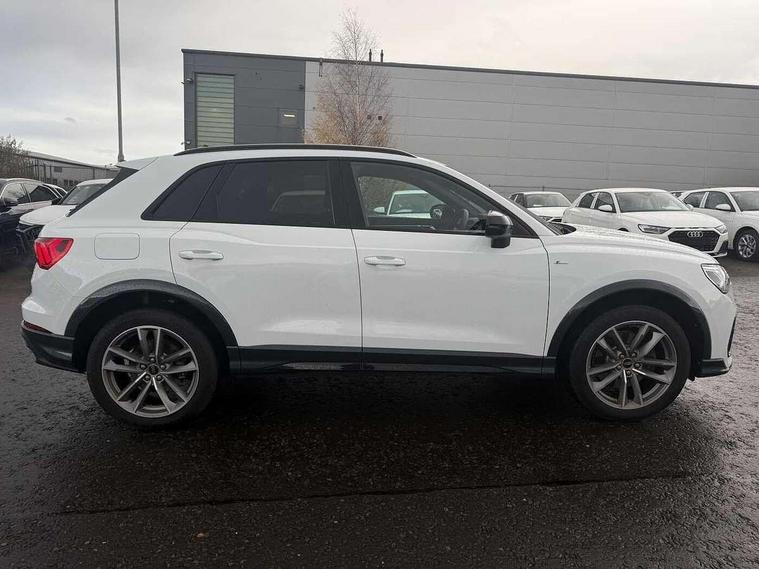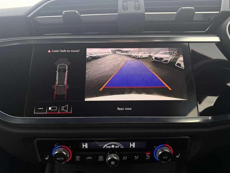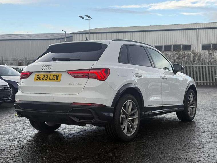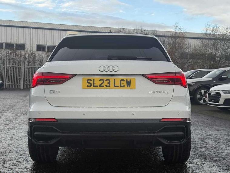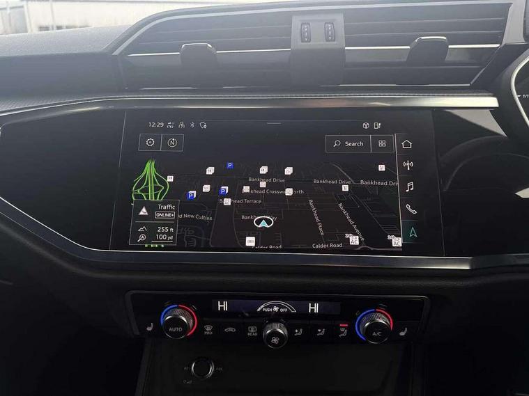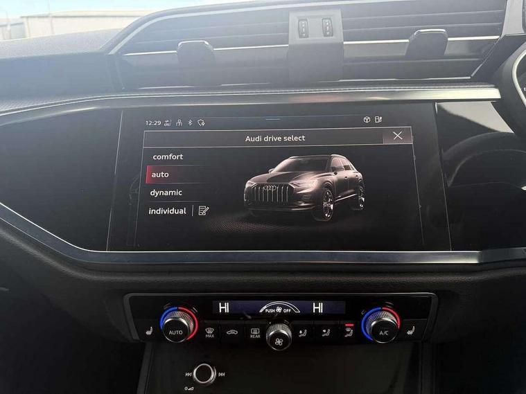 Amazon alexa Integration, Audi drive select, Audi lane departure warning, Audi Virtual Cockpit - 10.25" display, Bluetooth interface, Camera based traffic sign recognition, Legal emergency call, MMI Navigation Plus with high resolution 10.1 inch touchscreen colour display, Power operated tailgate, Progressive steering, Service interval indicator, Smartphone interface includes wireless Apple carplay/Android Auto, Start stop system with recuperation, Voice control system with natural language interaction, 3 pin 10 amp domestic charging cable, 3.6 kw On-board charger, Type 2 mode 3 32 amp charging cable, Type 2 socket for AC charging, 2 USB-C ports with charge and data functions, 6 passive loudspeakers, DAB digital radio module, Acoustic windscreen, Auto dimming frameless rear view mirror, Black roof rails, Electrically folding, adjustable and heated door mirrors with integrated LED side indicators and kerb view function for passenger side, Front and rear electric windows, Front fog lights, Grille vertical bars in aluminium silver/Matt, High gloss black finish B and C pillars, LED Dynamic rear indicators, LED headlights with LED daytime running lights, LED rear lights, LED third brake light, Privacy glass dark tinted rear and rear-side windows (from B-pillar backwards), Rain and light sensors, Rear diffuser grille in grained matt black, Rear diffuser strip in matt anthracite black, Rear side wing doors, Rear wiper, S line bumpers in contrasting Manhattan grey, Variable front intermittent wipers, 12V socket in rear centre console, 3 seat bench in 2nd row, 40:20:40 folding with manual adjustment for 60:40 forwards/backwards position and backrest angle, Adjustable rear seat bench/backrest with centre armrest and cupholder, Black cloth headlining, Dual zone electronic climate control, Front and rear black floor mats with contrast stitching in rock grey, Front and rear headrests, Front and rear roof module including reading lights, Front centre armrest, Glove compartment lighting, Height and reach adjustable steering wheel, Illuminated door sill trims with S logo, ISOFIX child seat mounting for front passenger with airbag deactivation and outer rear seat including top tether attachment point for outer rear seats, Luggage compartment light, Manual front seats with height adjustment, Perforated leather gearknob, Single front passenger seat, Stainless steel luggage compartment sill finisher, Stainless steel pedals, Ambient lighting pack - Q3, Black styling pack - Q3, Non smoking pack - Q3, 3x3 point rear seatbelts, 6 airbags - Driver, front passenger, curtain and side windows, Audi pre-sense front with pedestrain and cyclist recognition, Electrically operated child locks on rear doors, Electromechanical parking brake, Electronic stabilisation control including ABS, ASR and EDL, Front seatbelt reminder, Hill descent control, Hill hold assist, Pre sense basic, Seatbelt monitoring, Tyre pressure warning, Warning triangle and first aid kit, Anti theft alarm, Anti theft wheel bolts, Immobiliser, Remote central locking, Aluminium look interior elements, Detail dashboard around MMI touch colour display in glass look, black with surround in aluminium look, Leatherette door armrest, Piano black inlay, 19" 5 twin arm design diamond cut audi sport alloy wheels in matt grey look, Tool kit, Tyre repair kit,