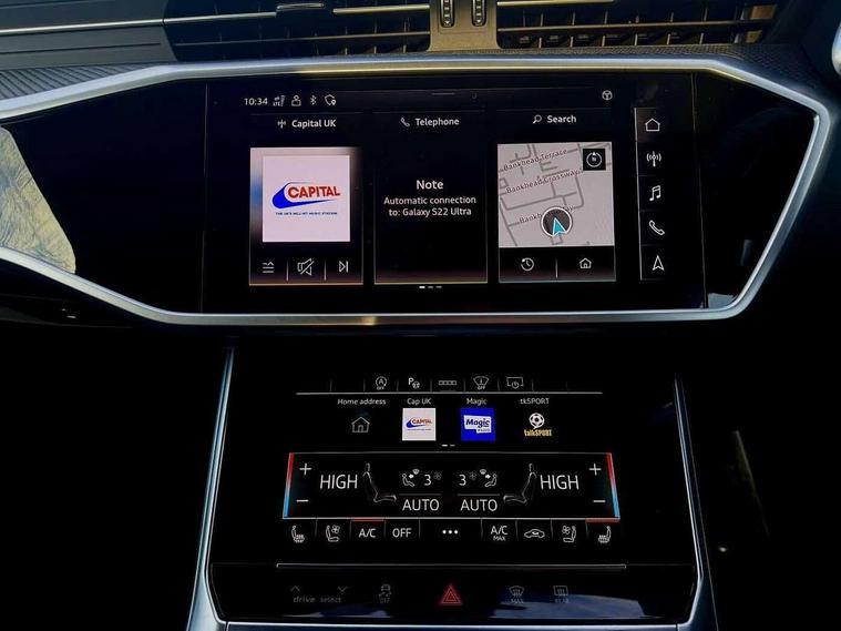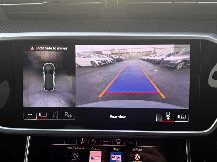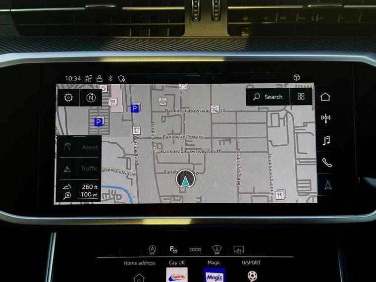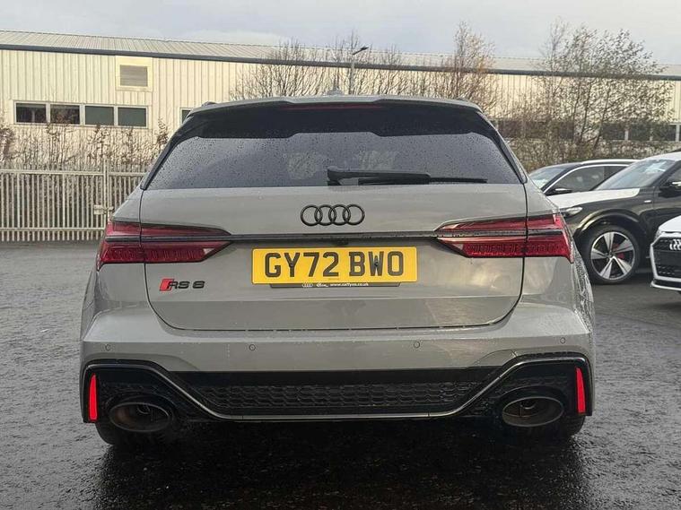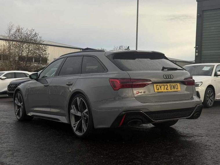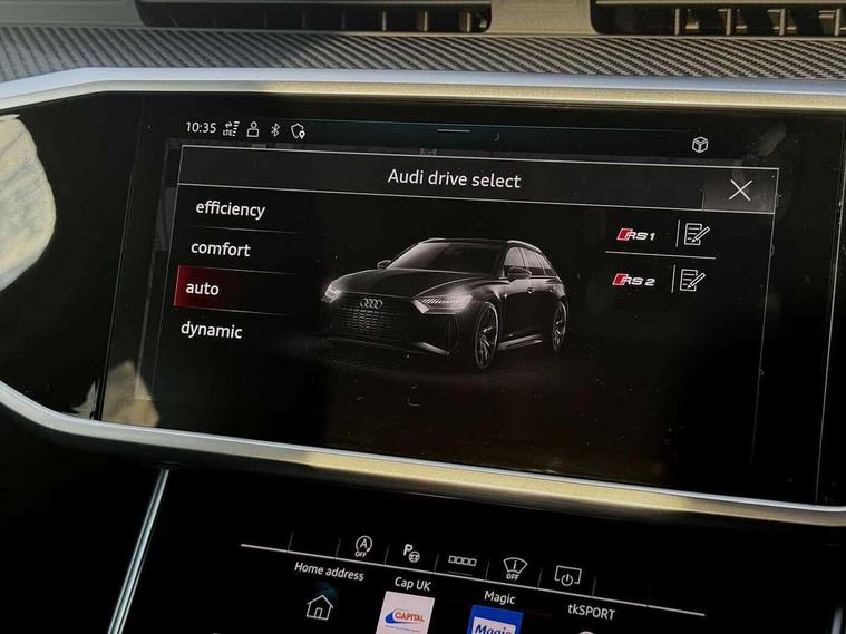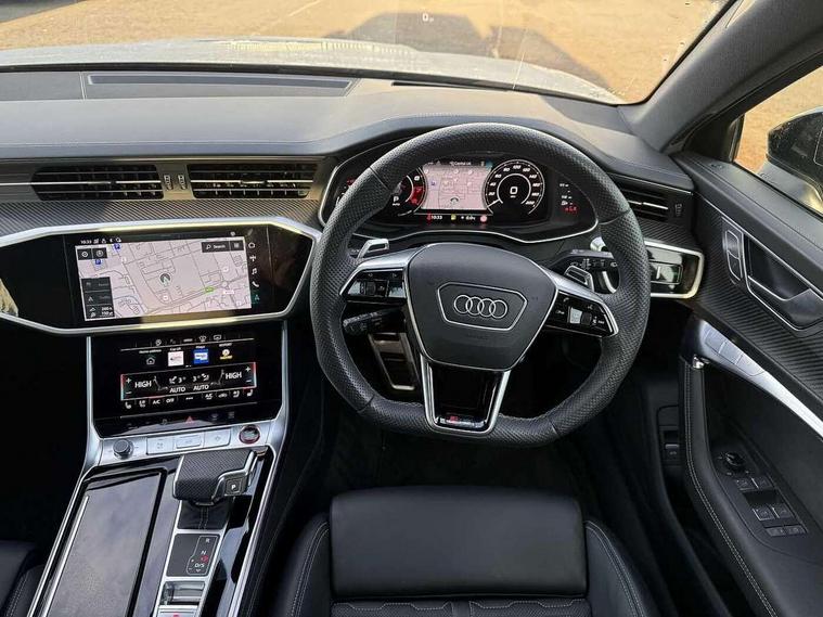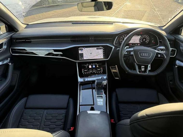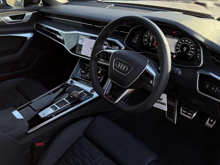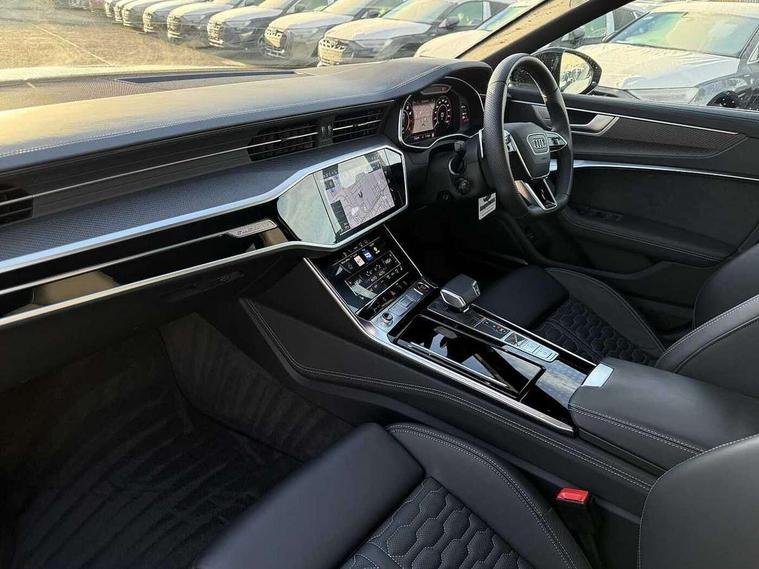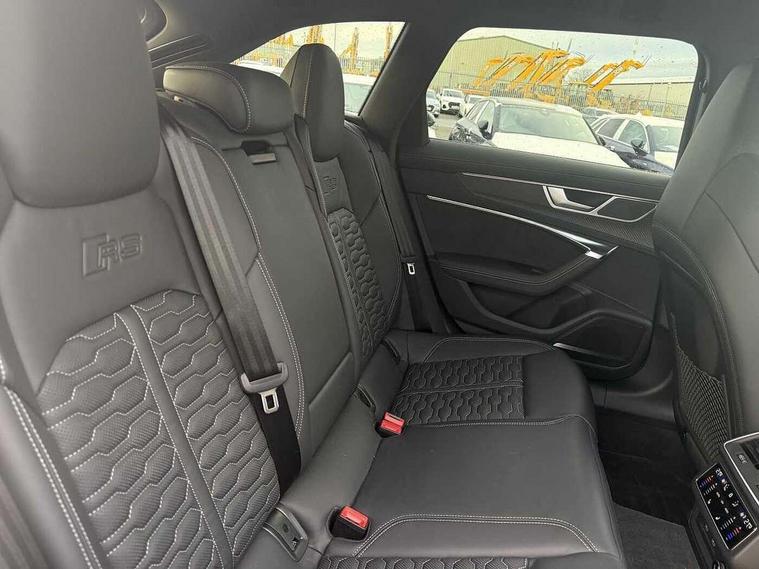 360 degree parking camera, Audi connect safety and service (e-call), Audi connect with Amazon Alexa Integration, Audi drive select, Audi virtual cockpit plus with RS specific design and 12.3" display with additional graphic display options, Automatic start/stop system, Bluetooth interface, Dynamic all wheel steering, Head up Display, Lane departure warning system, MMI navigation with MMI touch + twin touch screens 10.1" and 8.6" with haptic and acoustic feedback, Operating buttons in black, glass look with haptic feedback including extended aluminium look, Power door closure, Power latching doors, Power operated tailgate, Service interval indicator, Smartphone interface includes wireless Apple carplay/Android Auto, Voice control system, 73 litre fuel tank, Increased top speed to 174mph, Quattro sports differential, RS Sports suspension plus with dynamic ride control, 2 USB-C ports with charging functionality in the rear, Audi music interface, Bang & Olufsen 3D Premium Sound System, DAB Digital radio, 3rd brake light, Adaptive windscreen wipers with integrated washer jets, Black mirror caps, Body colour rear roof spoiler, Electric front/rear windows, Electric panoramic opening glass sunroof, Electrically folding auto dimming/adjustable/heated door mirrors with LED side indicators and kerb view function for passenger side, Frameless auto dimming interior rear view mirror, HD Matrix LED headlights with Audi laser light with dynamic light design and dynamic turn signal, Headlight washers, Heat insulating darkened glass in side and rear windows, Illuminated door sill trims with RS lettering, LED daytime running lights, LED rear combination lamps with dynamic light design and dynamic turn signal, Privacy glass with rear/side windows and acoustic glazing side windows, Radiator grille in honeycomb structure, large front air inlets and rear diffuser in gloss black, Rain and light sensors, Rear side wing doors, Rear sports exhaust system with gloss black oval tailpipe, Rear wiper, RS front bumper with air inlets on both side, Wheel arch extensions, 2 seat bench in 2nd row, 3 spoke RS flat bottomed leather multifunction steering wheel with shift paddles, heated funtion, contrast stitching, RS mode button and RS emblem, 4 way electric lumbar support for driver and front passenger, 4 zone deluxe automatic climate control, Aluminiium gear shift paddles, Audi Sport logo projection (Audi Beam) in front and rear, Black cloth headlining, Electric steering wheel adjustment, Electrically adjustable front seats with driver memory, Front and rear headrests, Front centre armrest, Front seat ventilation, Front/rear floor mats, Heated front and rear seats, ISOFIX child seat mounting and Top Tether with front passenger airbag deactivation, RS Front sports seats, Single passenger seat, Stainless steel pedals and foot rest, Valcona leather upholstery with perforated honeycomb and RS lettering, Air quality pack - RS6, City assist pack - RS6, Extended LED interior multi coloured lighting pack - RS6, Gloss black styling pack - RS6, Parking assistance plus pack - RS6, Storage pack - RS6, Tour pack - RS6, 2 x 3-point rear seatbelts, Airbags - Front side, front and rear including head, Audi pre-sense front, Direct tyre pressure monitoring system, EBD - Electronic brakeforce distribution, Electromechanical parking brake, Electronic Stability Control (ESC) including ABS, ASR and EDL, Extended pedestrian protection measures, Manual child lock in rear doors, Warning triangle and first aid kit, Advanced key, Anti theft alarm with tow away protection, Anti-theft wheel bolts and wheel loosening detection, Immobiliser, Keyless Go, Remote central locking, 22" Titanium matt gloss turned finish alloy wheels, Tyre repair kit,