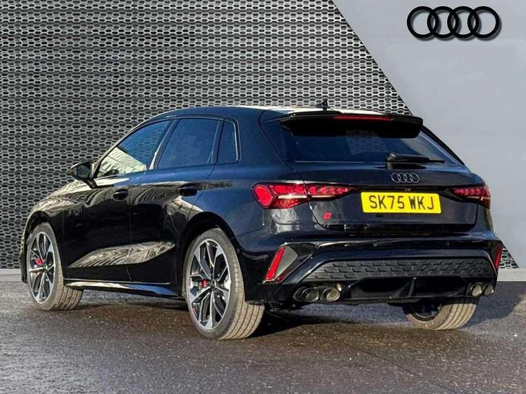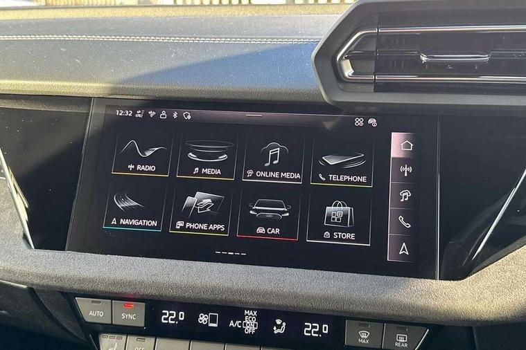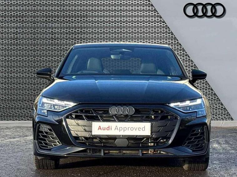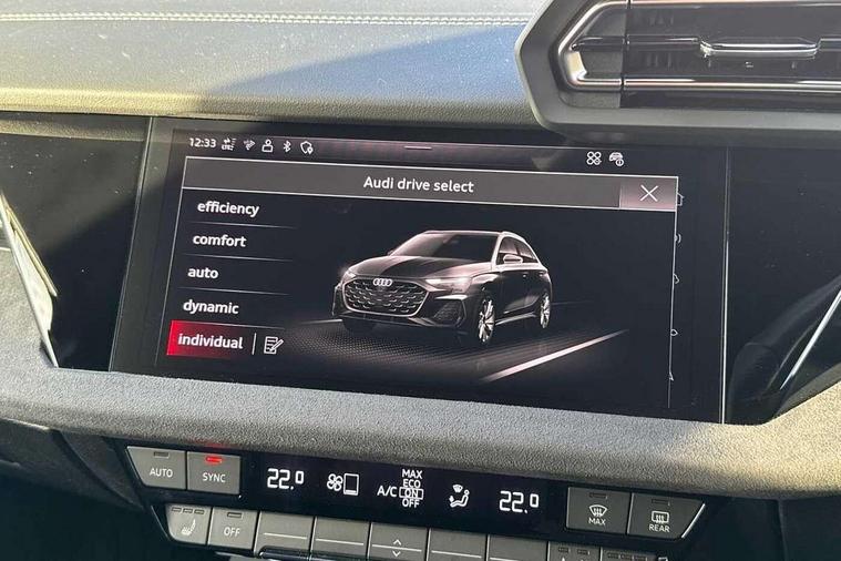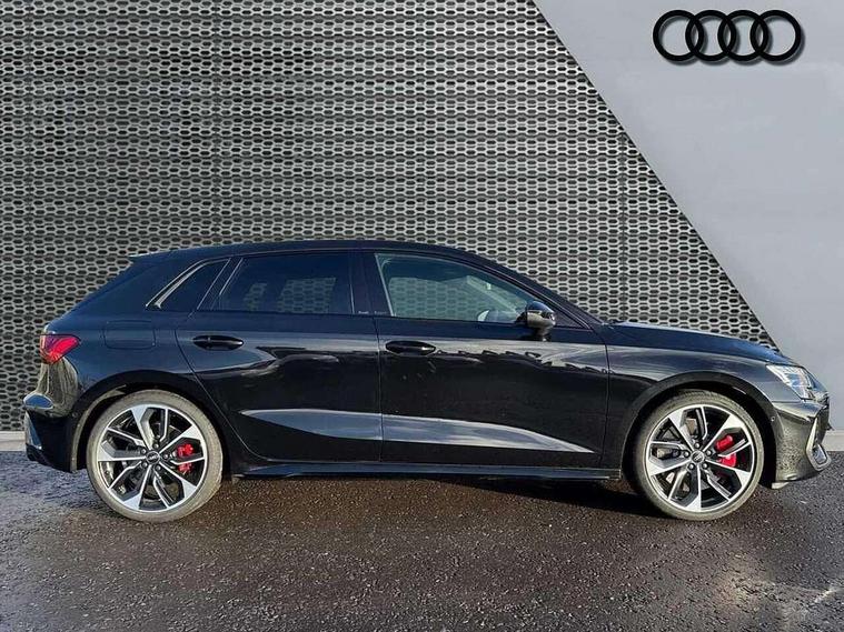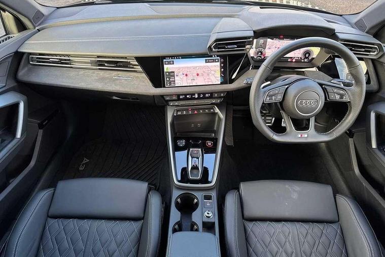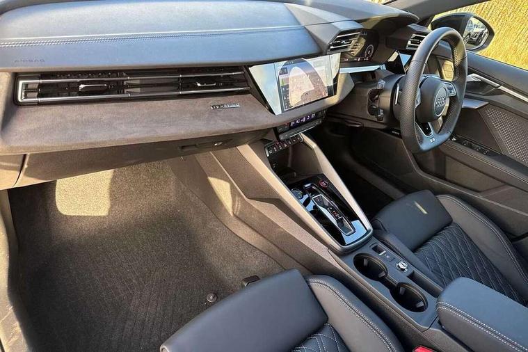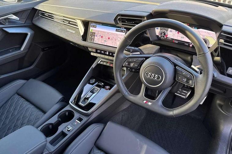 Adaptive cruise control (ACC), Adjustable speed limiter, Audi drive select (Auto, Comfort, Dynamic, Efficiency and Individual), Audi virtual cockpit plus - 12.3" full HD resolution dynamic digital instrument cluster, Automatic start/stop system with recuperation, Bluetooth interface, Camera based traffic sign recognition, Collision avoidance assistant, Driver attention and fatigue detection, e-Call (emergency call), Emergency assist, Intersection assist, Lane departure warning system, MMI Navigation Plus with high resolution 10.1" colour touch screen display, Park Assist with parking system Plus, Progressive steering, Reversing camera, Service indicator, Smartphone interface with app store includes wireless Apple carplay, Android auto and Amazon alexa integration, Trip computer, Voice control system with natural language interaction, quattro permanent all-wheel drive with torque splitter, S sport suspension with spring damper adjustment and lowering by 15mm, Audi Phonebox light with wireless charging, DAB Digital radio, USB ports with charging function in the rear, Anthracite grey Audi rings (front and rear), Audi Beam uses LEDs to project the rhombus S logo onto the ground as you exit your S3, Auto dimming frameless rear view mirror, Black accents front and rear bumpers including air inlets, Black accents in front grille and frame, Black accents in window trims, Electrically adjustable/heated/folding/auto dimming door mirrors with integrated LED indications + kerb view function for passenger side, Exterior model badging, Front and rear side air inlets in grained matt black with dark liquid chrome frame, Front electric windows, Front radiator grill in high gloss dark chrome, Heat insulating glass windscreen, Illuminated door sills with aluminium inserts at the front with S logo, LED 3rd brake light, Light and rain sensors, Privacy glass - dark tinted rear window, rear door and side windows, Rear diffuser and grill in grained matt black with inlay in dark liquid chrome, Rear electric windows, Rear side wing doors, Rear wiper, S grille, S3 front bumper with S specific air intake grilles, S3 roof spoiler, Side sill trim in dark liquid chrome, 12V socket and storage compartment in front centre console, 3 seat bench in 2nd row, 3 spoke flat bottomed leather multifunction sport steering wheel with gear shift paddles, 3-zone deluxe automatic air conditioning, 4 way electrically adjustable lumbar support for driver and front passenger, 40/20/40 split folding rear seat bench, Black cloth headlining, Black front and rear floor mats, Fine Nappa leather upholstery with front sports seats S embossed logo, Front and rear centre armrest in artificial leather with contrasting stitching on armrests and instrument panel, Front and rear headrests, Heated front seats, Height and reach adjustable steering wheel, i-Size child seat mounting on the front passenger side and outer rear seats, i-Size and top tether on the outer rear seats, Manual boot compartment lid, Manually adjustable front seats, Rear centre armrest with cupholder, S badging on the steering wheel, Seat side bolsters, Single front passenger seat, Stainless steel pedals and front footrest in black, Aluminium interior elements pack - A3, Storage package - A3, Technology pack with Matrix LED headlights - A3, 3x3 point rear seat belts, Driver and front passenger airbag with passenger airbag deactivation, Electronic Stabilisation Control (ESC) including ABS, ASR and EDL, First aid kit with warning triangle and 2 safety vests, Front side airbags with head airbags and interaction airbag, Hill hold assist, Pre-sense front with pedestrian and cyclist detection, Seatbelt monitoring, Tyre pressure loss indicator, Anti theft alarm, Anti-theft wheel bolts, Electronically operated child locks, Immobiliser, Black dashboard, Tyre repair kit,