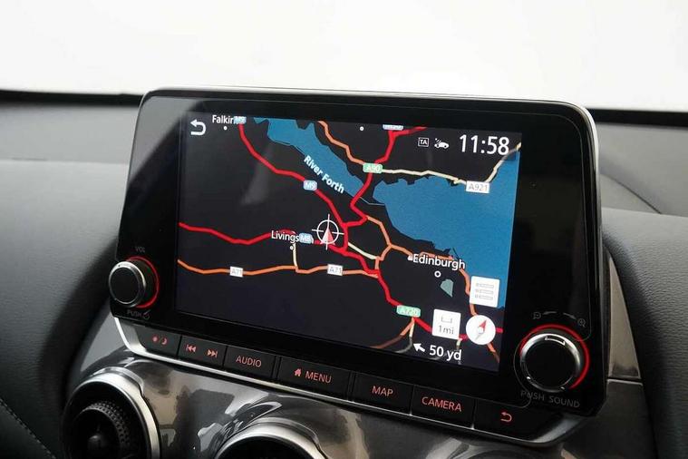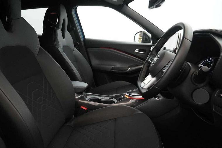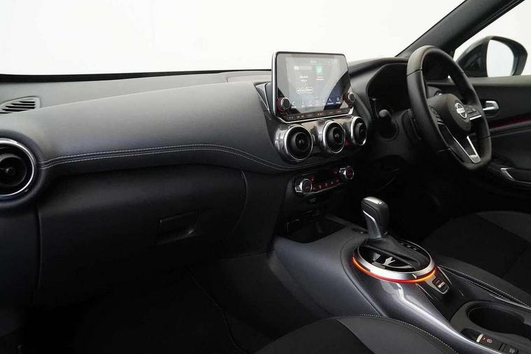 7" full colour TFT screen combimeter, Apple CarPlay and Google Android auto, Drive modes select (Eco, normal and sport), Emergency and breakdown call, Front parking sensor, Idle start/stop system, Intelligent lane intervention, Lane departure warning system, Nissan connect 8" touch screen entertainment system, Nissan connect nav with TomTom traffic, Nissan connect services and Wifi connection, Outside temperature sensor, Power Steering, Rear parking sensor, Traffic sign recognition, Trip computer, Voice recognition, Gasoline particulate filter, 10 Bose speakers 6 speakers and 2 headrest speakers for driver/passenger seats, Bluetooth system, USB, Aux-in and 12V socket, Bose personal sound stage control, DAB Digital radio, Rear console USB port, Auto dimming interior rear view mirror, Auto headlights, Automatic hazard signal with emergency stop signal, Body colour bumpers, Body colour door handles, Electrically adjustable door mirrors with integrated indicators, Follow me home headlights, Front and rear electric window with one touch driver window, Heated and auto folding door mirrors, High beam assist, LED daytime running lights, LED front fog lights, LED headlamps, LED rear fog lamp, LED rear lamps, Rain sensor windscreen wipers, Rear privacy glass, Rear side wing doors, Rear wiper, Thermaclear heated windscreen, Three blink turn signal, 3 height adjustable rear headrests, 3 seat bench in 2nd row, 60/40 split folding rear seat, Automatic climate control, Card holder on driver sunvisor, Door ambient lighting, Driver and passenger sliding and reclining seats, Driver seat back pocket, Driver side rear coat hanger, Driver/passenger sunvisors and vanity mirrors, Front and rear cabin lights, Front armrest, Front door pockets with bottle holders, Front head restraints, Front passenger isofix child seat anchorage point, Front/rear passenger grab handles, Gear console ambient circle lighting, Grey synthetic leather kneepad, Heated front seats, Height adjustable driver's seat, Height adjustable passenger seat, Internal chrome door handles, Leather gearshift knob, Leather steering wheel, Luggage board, Luggage space lighting, Monoform sporty seats, Multifunction steering wheel, Passenger seat back pocket, Rear door bottle holders, Single front passenger seat, Steering wheel mounted gearshift paddles, Synthetic leather upholstery, Telescopic steering wheel adjustment, Two cupholders in front centre console, Two rear isofix child seat anchorage points with top tether, Welcome light and console tray ambient lighting, ProPilot pack - Juke, ABS with EBD and brake assist, Active ride control, Active Trace Control, Driver and passenger airbags, Driver and passenger side airbags, Electric handbrake with auto hold function, Electronic Stability Programme (ESP), Front and rear curtain airbags, Height adjustable seatbelts, Hill start assist, Intelligent emergency braking with pedestrian and cyclist recognition, Rear door child safety locks, Seatbelt reminder for driver/front passenger and rear seats, Single tone horn, Three 3 point rear seatbelts, Traction control, Tyre pressure monitoring system, VDC Dynamic Vehicle Control, Ventilated rear brake discs, Alarm, Immobiliser, Intelligent key and start push button with walk away lock and approach unlock functions, Remote central locking,
