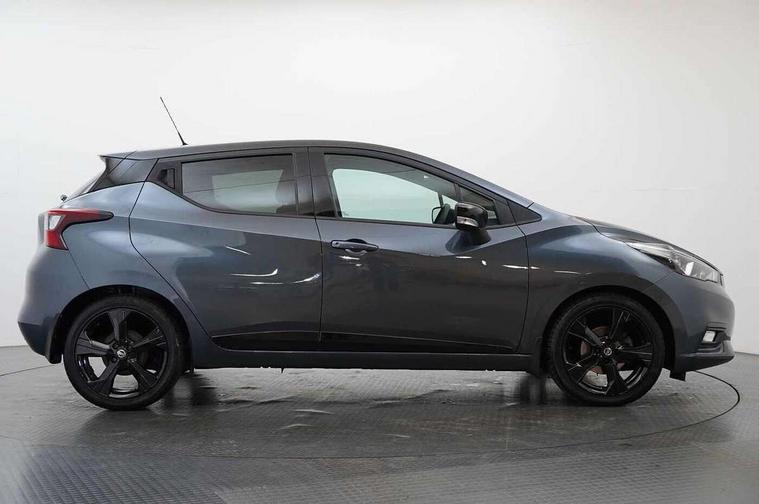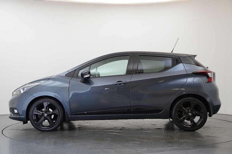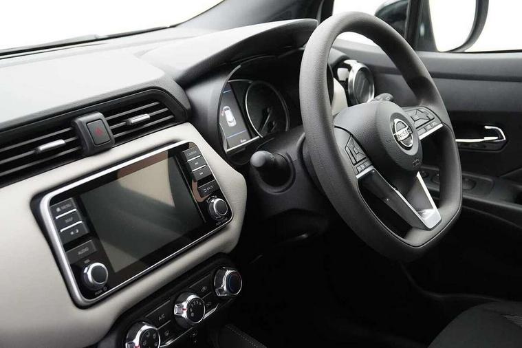 Adjustable speed limiter, Advanced drive assist display 5'' TFT coloured screen, Bluetooth system, Cruise control, Lane departure prevention, Lane departure warning system, Nissan Connect touchscreen navigation and Entertainment system, Outside temperature gauge, Power assist steering, Rear parking sensors and rear view camera, Service interval indicator, Smartphone integration with Apple CarPlay and Android auto, Stop/start system, Tomtom connected services, Traffic sign recognition, Trip computer, 4 speakers, Audio system with MP3, Aux-in socket, DAB Digital radio, Steering wheel mounted audio controls, USB/iPod connection, 4 pocket halogen headlights with signature finisher, Antenna, Automatic activation of hazard warning lights, Automatic headlights with dusk sensor, Body colour front door handles, Concealed rear door handles, Door mirror integrated indicators, Electrically adjustable door mirrors, Front fog lights, High beam assist, High mounted stop lamp, Jacknife key type x1, LED signature daytime running lights, N-Tec badge, Power front windows, Rain sensor windscreen wipers, Rear privacy glass, Rear roof spoiler, Rear wiper, Rear wiper with reverse link, 12V power point front, 2 height adjustable rear headrests, 3 cupholders, 60/40 split folding rear seat, Boot compartment cover, Boot light, Casual cloth upholstery, Chrome interior door handles, Driver's seat manual height adjust, Driver/passenger sunvisors and vanity mirrors, Front and rear door pockets with bottle holders, Front console storage box, Gear shift indicator, Grey PVC front door pads, Height adjustable front headrests with satin sliver decoration, Height adjustable steering wheel, Illuminated electric window switch, Isofix front passenger and rear seat preparation, Luggage compartment lighting, Manual air conditioning, Map reading lamp, Parcel shelf, Passenger seat back pocket, Reclining front seats, Satin silver accents on steering wheel, Satin silver air vents, Satin silver decoration on gear knob, Soft knee pad with stitching, Soft touch upper IP with grey PC Insert, Tilt/telescopic adjustable steering wheel, Gloss black personalisation exterior pack - Micra, ABS+EBD+Brake assist, Crash sensor, Driver/Front Passenger airbags, ESP + ASR traction control + CSV understeer control, Forward emergency braking, Front and rear curtain airbags, Front side airbags, Height adjustable front seatbelts with pre-tensioners and load limiters, Hill start assist, Intelligent emergency braking with pedestrian recognition, Passenger airbag deactivation system, Rear seatbelts with pre-tensioners and load limiters, Seatbelt warning, Three 3 point rear seatbelts, Tyre pressure monitoring system, Warning triangle and first aid kit, Anti-theft immobiliser, Remote central locking, 17" Black alloy wheels, Tyre repair kit,