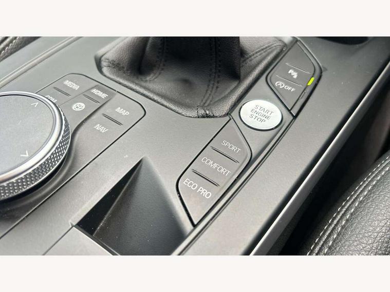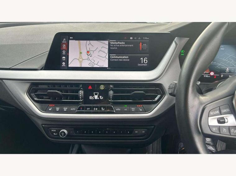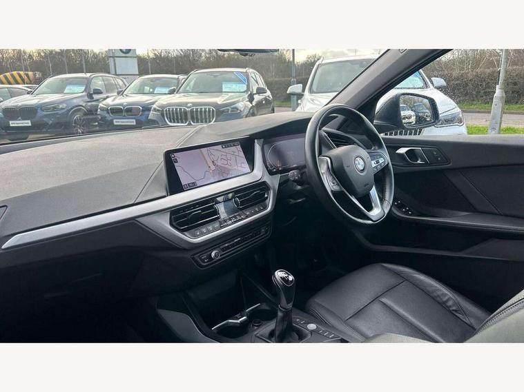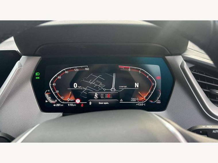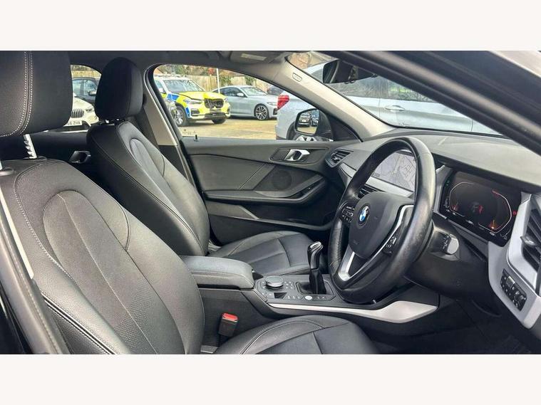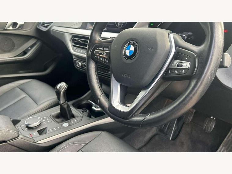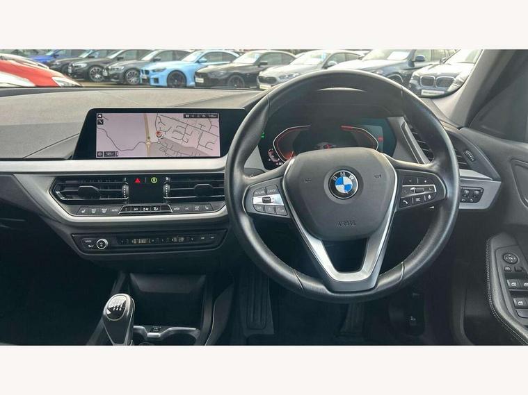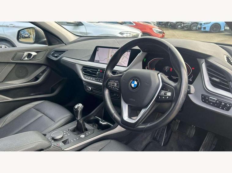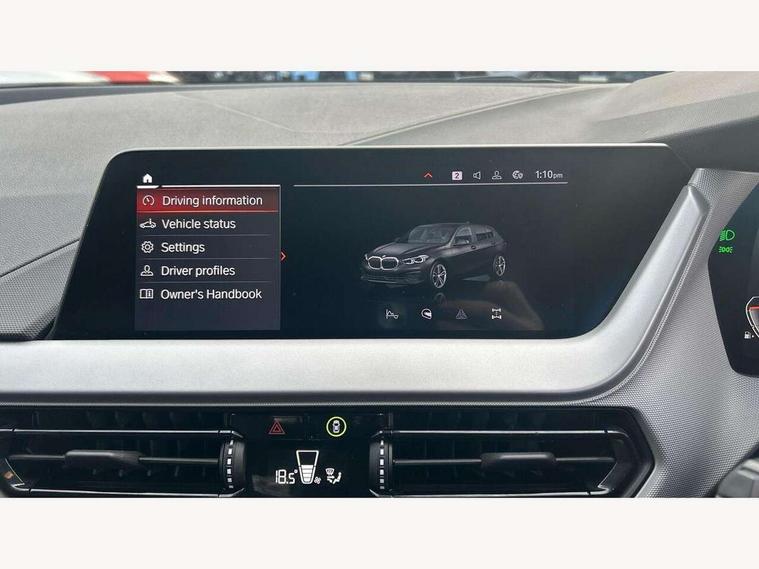 Active guard plus, Attentiveness assist, BMW ConnectedDrive online services, BMW Teleservices, Check Control warning system for monitoring of lights and door/luggage compartment open warning, Cruise control with brake assist, Eco pro mode, Electric power steering with Servotronic steering optimised at all speed ranges, Front axle single joint with specific axle kinematics to minimise drive influences on steering + provide increased rigidity agile driving behaviour, Integrated owners handbook, Lane departure warning system, Oil sensor for level and grade, On board computer, Optimum shift indicator, Personal Profile, Pull away assistant, Rigidly mounted rear subframe - Multi link construction with separate spring / damper configuration and excellent driving characteristics, Speed limit Info including no-overtaking indicator, Speed limiter, Aluminium lightweight construction, Anti roll bar front and rear, Balancer shaft, Double VANOS twin scroll turbocharging system, Drive Performance Control, Electronic differential lock, High precision injection, Petrol Particulate Filter, Suspension with twin tube gas filled shock absorbers with degressive characteristic curve, VALVETRONIC engine management, DAB Digital radio, Auto dimming rear view mirror, Automatic windscreen wipers and automatic headlight, Body colour door handles, Body colour mirror caps, Chrome exhaust twin tailpipes round 90mm in left, Direction indicator side lights in exterior mirrors, Fading support, Follow me home headlights, Front and rear bumper system with replaceable deformation elements, Front and rear electric windows with open and close fingertip control, anti trap facility and comfort closing, Front door sill finishers in black plastic with BMW designation, Green tinted heat protection glazing, Heated, electrically adjustable exterior mirror aspheric on driver side, convex on passenger side, High level third brake light, Integrated front windscreen with washer jets, Kidney grille with chrome frame with 14 High-gloss Black struts, LED daytime running lights, LED eyebrow turn indicators, LED front fog lights, LED Headlights, Lightweight engineering, Manual headlight beam throw control, Manual headlight levelling, Matt black air guide grilles, Matt black roof moulding, B pillar finisher and wheel arch trim, Matt black window frame, Matt black window recess finisher, Model designation on electric bootlid, Nearside reverse light in rear light cluster, Preparation for high beam assistant, Rear fog lights, Rear side wing doors, Rear window wiper, Shark fin antenna, Trailer stabilisation logic, Visible VIN plate, Welcome lighting, 12V power socket in front centre console with blanking plug, 3 rear seat head restraints, 3 seat bench in 2nd row, 3 spoke sports leather steering wheel in black leather with black stitching and decorative finisher in pearl chrome + gearshift lever knob in leather, Black boot net with lashing eyes, Cargo function on 2nd seat row, Child seat ISOFIX attachment for two outer rear seats and front passenger seat with anchorage points, Conditioned based service, Folding rear clothes hook, Four grab handles integrated in roof lining, Front and rear door pockets with bottle holders, Front and rear side armrest integrated into door trim, Front armrest, Glove compartment, Height adjustable front head restraints, Luggage compartment for bag hooks on left and right, foldable luggage compartment liner and four lashing eyelets, Manual adjust steering wheel, Multi-function controls for steering wheel, Single front passenger seat, Single zone automatic air conditioning, Storage compartment in centre console, Sun visors with vanity mirrors and insert tab, Two front centre console cupholders, Velour floor mats, BMW live cockpit professional pack- 1 Series, Connected pack professional - 1 Series, Interior lights pack - 1 Series, 2 tone horn, 3 point seatbelts on all seats, front pyrotechnic belt tensioners, stopper and belt force limiters, rear coded belt buckles, Airbags - Front driver/passenger, front and rear curtain head protection, front side, manual deactivation of front passenger airbag, Anti lock braking system (ABS) with brake assist, BMW emergency call, Brake drying, Braking readiness, Child proof locking system in rear door, City braking function, Comfort modes, Cornering brake control, Crash sensor activating central locking release, hazard warning lights, fuel cut off, interior lighting + activation of safety battery terminal clamp, Driver and front passenger seat belt security check, Dynamic stability control + (DSC+), Dynamic Traction Control - DTC, Electrically operated hand brake, Front and rear disc brakes, Seatbelt warning, Side impact protection, Tyre pressure monitoring system, Warning triangle and first aid kit, Central locking switch for all doors, fuel filler cap and luggage compartment, Deadlocking function system to all doors, Drive away locking system on all doors and luggage compartment with de-activated in iDrive settings, Locking wheel bolts, Remote central locking with two Integrate key, one button for opening and closing all lock, open and close window, button for open luggage compartment, Start/stop button illuminated in centre console with keyless engine start and auto start stop deactivation button, Thatcham Cat.1 alarm and immobiliser, Wheel slip limitation close to the actuator (ARB), Quartz Silver matt interior trim, Electrically powered 12V compressor, Reduced rolling resistance tyres,