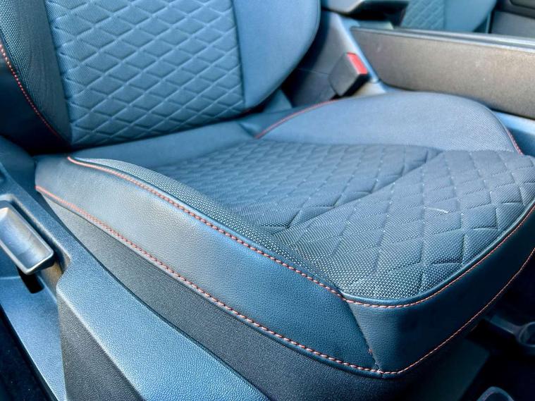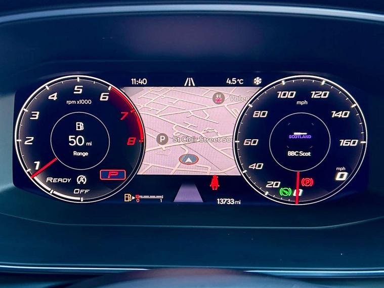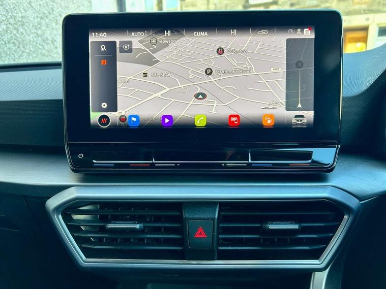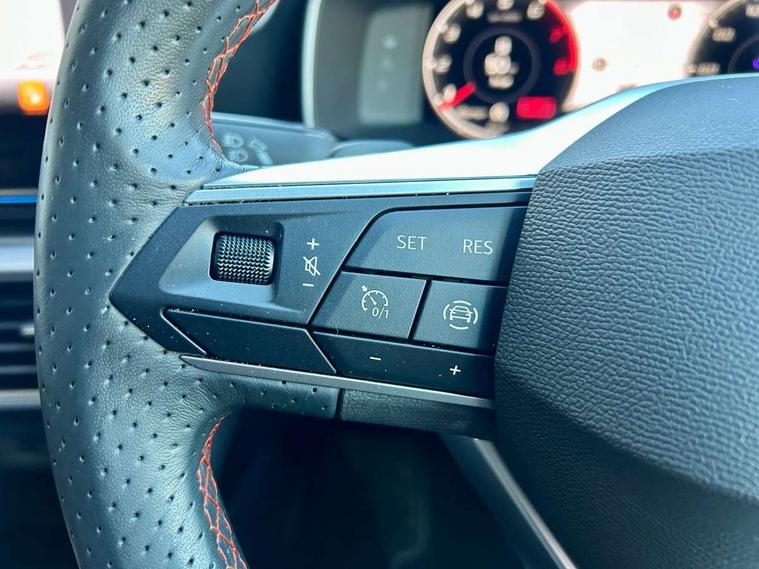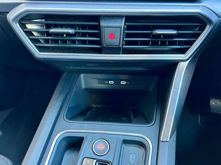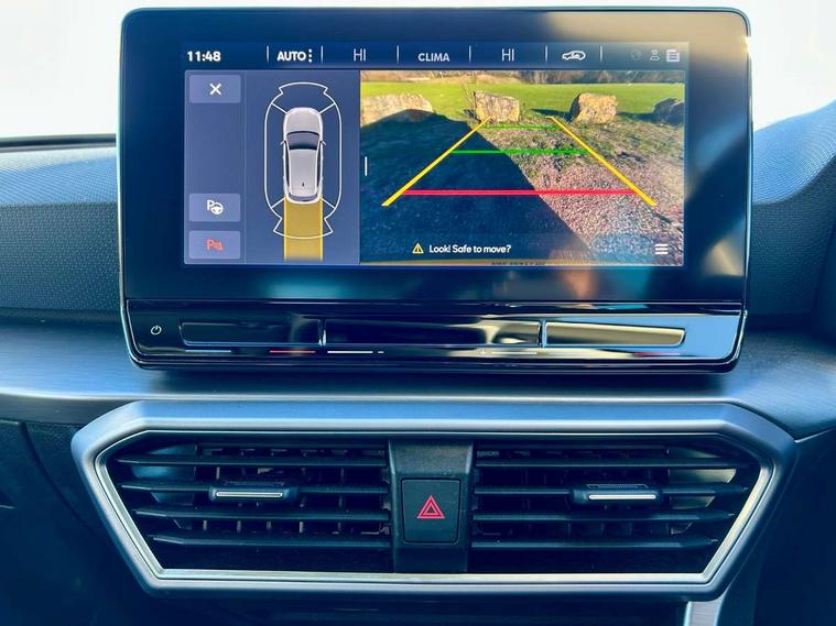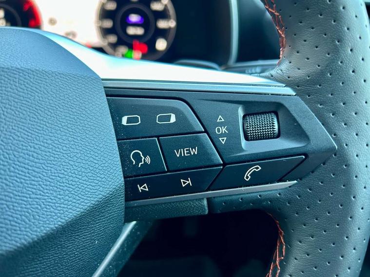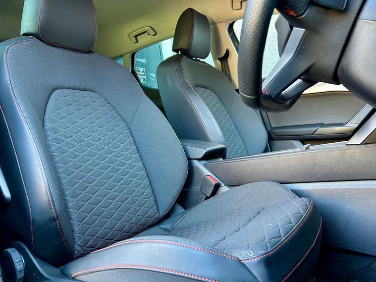 Digital cockpit, E-call, Four x USB Type C ports, Front assist with forward collision warning braking reaction to vehicles, pedestrians and cyclists, Full link smartphone integration with Mirror Link, wireless Apple CarPlay and wired Google Android Auto, Lane assist, Lockable tailgate, Park assist (inc front/rear parking sensors), Power assisted speed sensitive electro-mechanical steering, Rear view camera, RPM, trip computer, outside temp gauge, instrument light brightness, low fuel warning light, lights on reminder, gearshift indicator, SEAT drive profile with 4 modes (Eco/Normal/Sport/Individual), throttle response and gearshift mode, Service interval indicator, Start/stop system with regenerative braking, Sports suspension, XDS electronic differential lock and dynamic traction support, 7 speakers, Auxiliary input socket, Auto dimming rear view mirror, Body colour door handles, Body coloured bumpers, Cosmo grey exterior mirrors with integrated LED indicators, Dark tinted rear windows, Dynamic headlight range control, Electric front/rear windows, Electrically adjustable, heated and folding door mirrors, FR sports bumper, Illuminated front door sill, LED front fog lamps, LED Headlights with dynamic turn signals, LED tail lights and rear fog lights with rear coast to coast lighting, Rear side wing doors, Rear wash/wipe, Separate daytime running light with automatic headlight control and coming home feature, Third brake light, Welcome light silhouette from exterior mirrors, Windshield wiper intermittent control with light/rain sensor, 12v power point in centre console, 3 seat bench in 2nd row, 60/40 split rear bench seat with armrest, Ambient lighting with glovebox, footwell and single monocolour, Driver/passenger manual seat height adjustment, Dust/pollen filter, Folding boot cover, Front and rear height adjustable headrests, Front and rear reading lights X 4, Front centre armrest, Front seatback storage pockets, Height/reach adjust steering wheel, ISOFIX points in outer rear seats with top tether anchorage points, Luggage tie-down hooks, Lumbar adjustment for front seats, Single front passenger seat, Sunvisors with covered illuminated mirror, Three zone climate control, Two tone cloth upholstery, Media system plus with navigation - Leon, 3 point seatbelts on all rear seats, ABS, Brake control system - ESC and brake booster, Child proof door locks, Driver and front passenger airbags with front passenger airbag de-activation, front side and curtain airbags, Electronic parking brake, Extended safety system - seat belt tensioner, window closure and hazard lights, Hill hold control, Rear disc brakes, Seat belt reminder for front and rear seats, Tiredness recognition system, driver alert system, Tyre pressure monitoring system, Anti theft alarm system with interior monitoring in cab, backup horn and towing protection, KESSY Go (Keyless start), Locking wheel bolts, Wireless phone charging, Chrome interior detailing, 17" Dynamic Bi-spoke alloy wheels with 91W tyres, Tool kit,