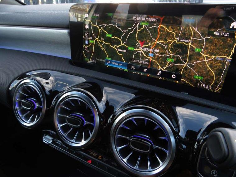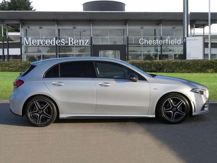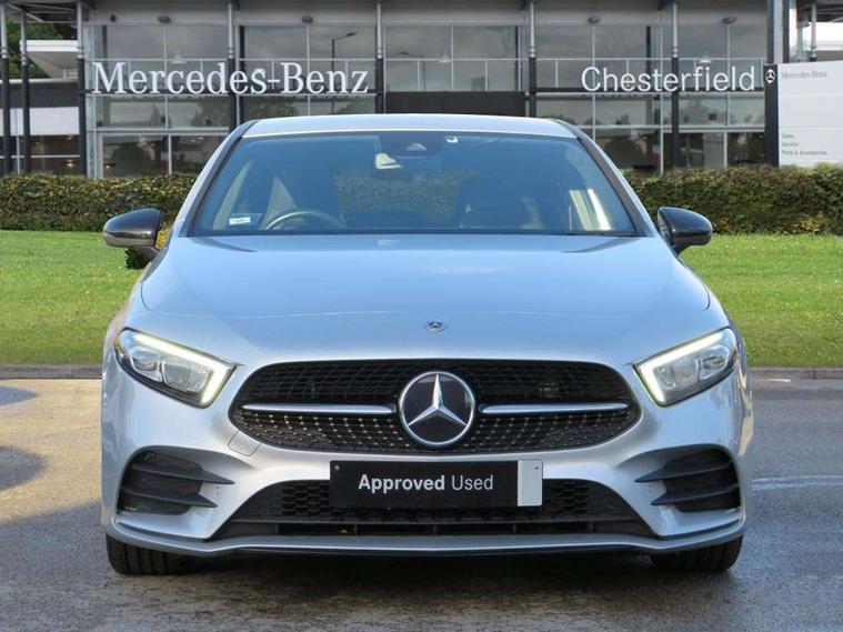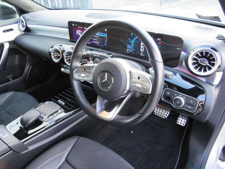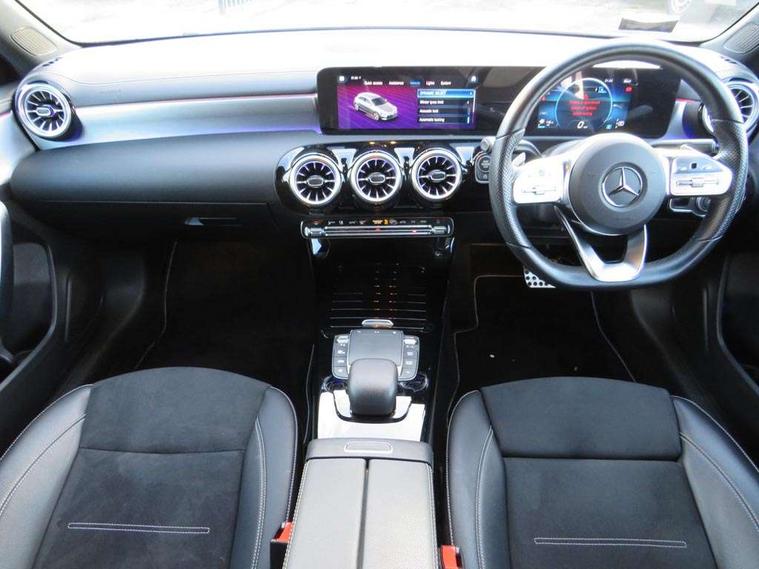 10.25" media display, 180 degree rear view camera with parking guidelines, 7" colour screen in instrument panel, Active parking assist with visual and audible warning of detected obstacles, Attention assist, Brake pad wear indicator warning light, Car wash mode, Cruise control + speed limiter, Direct steering, Dual bluetooth interfaces, DYNAMIC SELECT with a choice of driving modes (ECO, Comfort, Sport and Individual), ECO start/stop function, Fluid level warning indicator for fuel, oil, coolant and washer fluid, Hard-disk navigation, Hey Mercedes Voice activation, Lamp failure indicator, Lane keeping system, Mercedes me connect including emergency call system, accident recovery, breakdown management and maintenance, Mercedes me remote services, Outside temperature gauge, Owners manual in English, Pre-installation for car sharing, Preinstallation for Mercedes Benz link, Service indicator (ASSYST), Smartphone integration with Apple CarPlay and Android auto, Speed sensitive power steering, Trip computer, Ultrasonic sensors positioned in the front and rear bumpers, Lowered comfort suspension, Rear axle torsion beam, 2 USB ports (type C) in rear stowage compartment and one in front of center console, 6 speakers, DAB Digital radio, MBUX multimedia system with DAB digital radio and touchpad including satellite navigation, Mercedes-Benz sound system - 100W, 4 Electric Front and Rear windows, Adaptive brake lights, AMG bodystyling - Front apron with splitter in chrome, rear apron with chrome trim and chrome visible trim elements in tailpipe, Automatic headlights, Black weather strip, Body colour bumpers, Body colour door handles, Body colour side skirt, Body coloured door mirrors, Electric adjustable and heated door mirrors with integrated LED side indicators, Exclusive diamond radiator grille, Exhaust system - Twin visible tailpipes in polished stainless steel, Headlamp assist automatic headlamp activation, Heated glass rear windscreen + timer control, High gloss black beltline, LED High level third brake light, LED high performance headlamps with integrated LED daytime running lights, LED tail lamp, Privacy glass, Radio aerial, Rain sensing windscreen wipers with two sensitivity settings, Rear fog lights, Rear side wing doors, Rear wiper, Window line trim strip in high gloss black, 3 seat bench in 2nd row, 3 Spoke flat bottom leather multi function steering wheel with perforated leather in grip area, 40:20:40 split folding rear seats, Artico man-made leather/Microfibre Dinamica upholstery with contrast stitching in light grey, Auto Mercedes-Benz child seat recognition sensor, Black air vents with surround in silver chrome, Black roof lining, Brushed stainless steel sports pedals with rubber studs, Controller on centre console with chrome surround, Floor mats with black top stitching and embroidered edition logo and piping in light grey, Front centre armrest with storage compartment, Front door sills with Mercedes Benz lettering, Front seat backs luggage nets, Front seat cushion length adjustment, Galvanished gear shift paddles on steering wheel, Heated front seats, Height/reach adjustable steering column, Interior lighting - 64 colour Ambient lighting, Interior mirror with reading lamps in black and frameless, ISOFIX and top tether child seat fixing points in two outer rear seats, Manual height adjustable front seats, Rear head restraints, Seat occupancy sensor for front passenger seat, Single front passenger seat, Sports seats with integrated headrests, Stowage compartment in centre console with retractable cover, Sunvisors with illuminated vanity mirrors, Touchpad on center console, Twin front cupholders, Two zone thermotronic luxury automatic climate control, Light and sight pack - A Class, Mirror package - A Class, Night pack - A Class Saloon/Hatchback, Seat comfort pack - A Class, 3 rear 3 point seatbelts, ABS with Brake Assist, Active bonnet, Active brake assist includes forward collision warning system with autonomous braking, Adaptive brake assist with hold function and hill start assist, Black seatbelts, Childproof locks manually operated for rear doors and electrically operated for rear power windows, Crash responsive emergency lighting, Driver and passenger head and side airbags, Drivers knee airbag, Dual stage driver/passenger airbags, Electronic parking brake, ESP curve dynamic assist, ESP with ASR, Front and rear seatbelt reminder, Front brake callipers with Mercedes Benz lettering, Tyre pressure monitoring system, Warning triangle and first aid kit, Window airbags, Alarm system/interior protection/immobiliser, Keyless Go, Remote central locking and crash sensor with emergency opening function, Urban guard vehicle protection system with immobiliser and interior protection, Matrix look light longitudinal grain aluminium trim element, 18" AMG 5 twin spoke light alloy wheels aerodynamically optimised painted in black with highsheen finish, Summer tyres, Tirefit sealant kit,