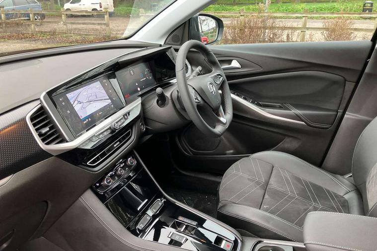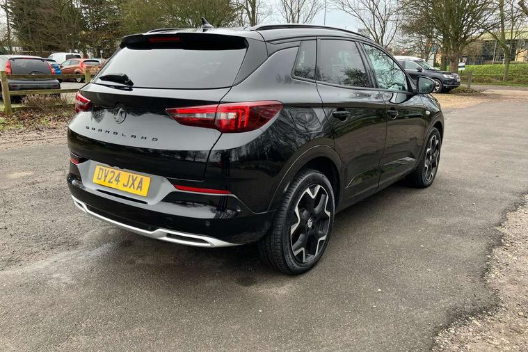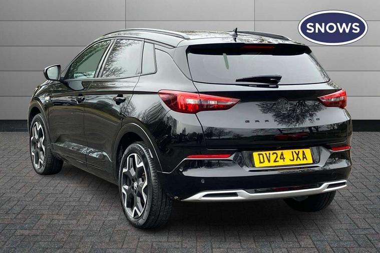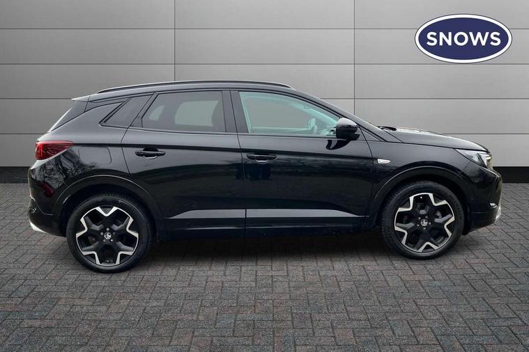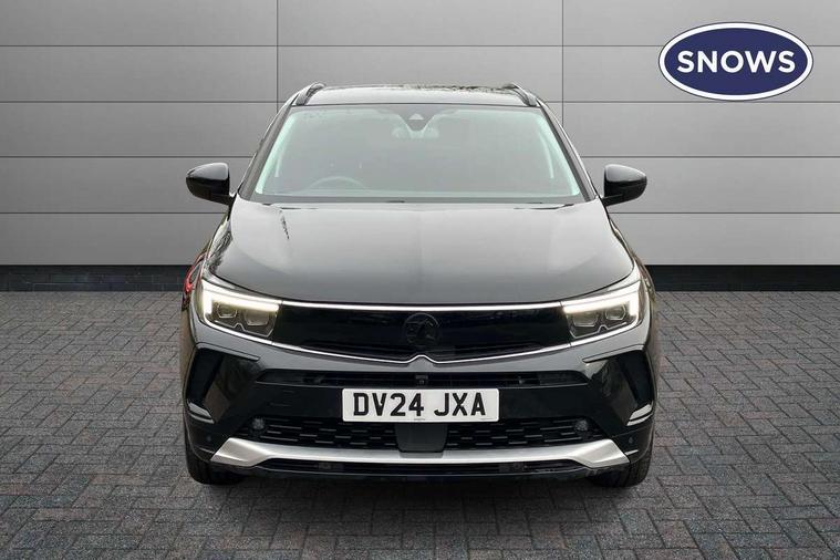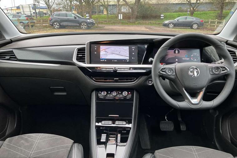 Central facia display with digital clock, outside air temperature and audio information, Digital fuel gauge with low fuel level warning light, Digital rev counter, Digital speedometer, Digital water temperature gauge with warning light, Drive mode selector (Eco, Normal, Sport), Driver drowsiness alert system, Driver information - Total mileage, service indicator, oil life, Front and rear parking distance sensors with 360 degree rear view camera and advanced park assist, Gearshift up/down indication light, Highway integration assist (Lane positioning assistant and Adaptive cruise control), Lane departure warning system, Lane keep assist, Lights on audible warning, Multi function trip computer - Trip odometer, vehicle range, average speed and fuel economy, instantaneous fuel economy and driving time, Multimedia Pure Panel Navigation System incl 10" colour touchscreen, 12" digital instrument cluster & satellite naviagtion, Power operated tailgate with foot sensor, Side blind spot alert, Speed sensitive electric power assisted steering, Speed sign recognition, Start/stop system, Vauxhall connect including Emergency call (SOS e-call) and Breakdown call (b-call), Wireless charger for mobile devices, Anti-roll bars, Compound crank rear suspension with coil springs and gas pressure dampers, Independent decoupled MacPherson strut front suspension with gas pressure dampers and coil springs, anti-roll bar, Six speaker - four front + two rear, Steering wheel mounted audio/phone/cruise controls, Automatic lighting control, Automatically dimming anti dazzle rear view mirror, Black door mirrors, Black side window trim, Body colour door handles, Body colour lower front and rear bumpers, protective wheel arches and lower door cladding, Body colour upper front bumper, Collapsible windscreen wipers, Dark tinted rear windows, Door to door illumination, Electric adjustable/heated/folding door mirrors, Electrically operated front and rear windows with safety auto reverse and one touch up/down facility, Front wiper system spraying directly from wipers, Hazard warning lights, Heated rear screen with timed cut off, Heated windscreen, High beam assist, High gloss black exterior detailing, High gloss black Griffin for Vizor and tailgate with high gloss black Grandland tailgate lettering, High gloss black roof rails, High level centre rear brake light, IntelliLux adaptive LED pixel headlights and LED tail lights, Intermittent rear window wash/wipe, LED daytime running lights, LED front fog lights, Magic wash, Manual headlight beam levelling, Rain sensor windscreen wipers, Rear side wing doors, Rear spoiler, Reversing light, Shark fin aerial, Silver effect protective front and rear skid plate, Soundproof insulated windscreen, Two speed windscreen wipers with variable intermittent wipe, Upper and lower bumper design, Vizor front grille, Welcome lighting, 12V electrical accessory socket in front, 3 bench rear seats in 2nd row, 3 spoke heated flat bottom leather effect steering wheel with satin chrome effect bezel, 6 way adjustable Ergonomic active heated sports style front seats AGR approved with seat cushion extension and lumbar adjustment, 60/40 split folding rear seat with centre rear seat armrest and load though facility, Advanced predictive logic control system using a sun sensor, Alcantara upholstery, Ambient centre console downlighter, Automatic air direction and fan speed with manual override, Charcoal filter, Chrome effect interior door handles, Covered storage compartment in centre console and in driver armrest, Driver's centre armrest, Driver/passenger sunvisors with illuminated vanity mirrors, Dual zone electronic climate control, Front door pockets with 2.6 litre capacity, Front seat back storage pockets, Fully carpeted luggage area, Height adjustable headrests, Illuminated luggage area, ISOFIX on front passenger and rear outer seats, Luggage compartment cover, Reach + rake adjustable steering column, Rear centre seat head restraint, Rear door pockets with 1.8 litre capacity, Rear passenger compartment heating ducts, Rear reading lights, Two drinks holders in centre console, Anti-lock braking system (ABS), Automatic emergency braking with pedestrian detection, Child proof locks on rear doors, CSC - Cornering stability control, Deactivation switch for front passenger front and side impact airbags, Deflation detection system, Driver airbag, Dual seatbelt pretensioners on front seats, EBD - Electronic brakeforce distribution, Electronic parking brake, Electronic stability program (ESP) including traction control, Forward collision alert, Front brake ventilated disc 304mm diameter, Front passenger airbag, Front seat side impact airbags, Full-size curtain airbags for driver and front passenger, Hill start assist, Hydraulic Brake Assist (HBA), Inertia reel lap and diagonal seatbelts for all seats, Load limiters on outer rear seatbelt retractors, Pretensioners on outer rear seatbelt retractors, Rear brake ventilated disc 268mm diameter, Smart seatbelt reminder for front and rear seats, Tyre pressure monitoring system, Central locking, Deadlocking system, Electronically protected audio equipment, Engine deadlock immobiliser, Keyless entry and start, Locking wheel nuts, Remote security alarm system, Black door panels with black premium leather effect inserts, Dax decor facia panel with palladium medium finish, 19" diamond cut bi-colour alloy wheel,