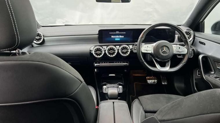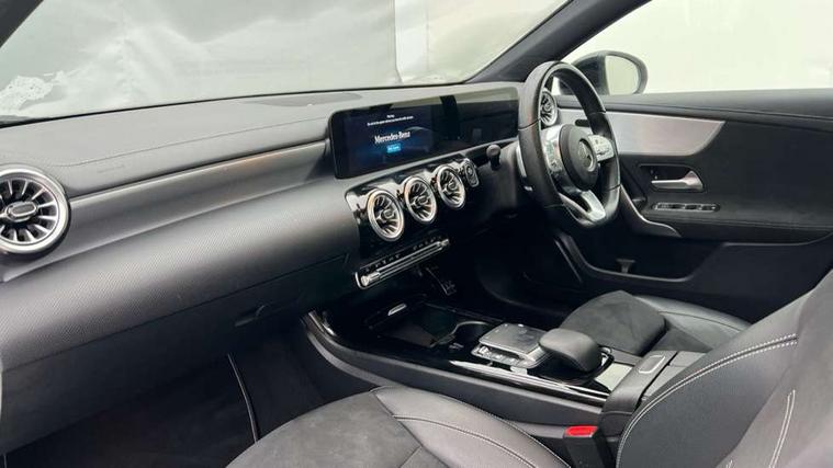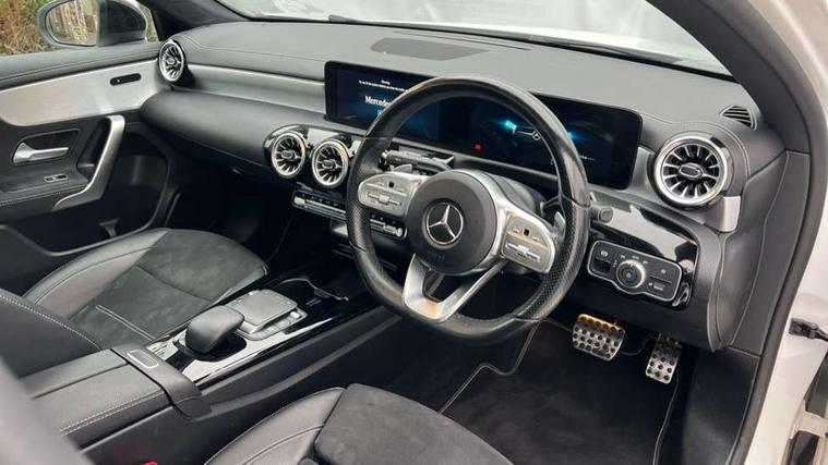 10.25" Digital instrument cluster display screen, 10.25" media display, 180 degree rear view camera with parking guidelines, Acoustic ambient protection, Active parking assist with visual and audible warning of detected obstacles, Attention assist, Brake pad wear indicator warning light, Car wash mode, Direct steering, Dual bluetooth interfaces, DYNAMIC SELECT with a choice of driving modes (ECO, Comfort, Sport and Individual), ECO start/stop function, Fluid level warning indicator for fuel, oil, coolant and washer fluid, Hard-disk navigation, Hey Mercedes Voice activation, Lamp failure indicator, Lane keeping system, Mercedes me connect including emergency call system, accident recovery, breakdown and maintenance management, Mercedes me remote services, Outside temperature gauge, Owners manual in English, Pre-installation for private car sharing, Preinstallation for Mercedes Benz link, Remote and charging services plus, Service indicator (ASSYST), Smartphone integration with Apple CarPlay and Android auto, Traffic sign assist, Trip computer, Ultrasonic sensors positioned in the front and rear bumpers, 7.4 kW monophase on board charger, Comfort suspension, Mode 2 charging cable with 3pin and 5m upto 2.3kW, Mode 3 charging cable 11 kW, Rear axle multi-link, 10 speakers, 2 USB ports (type C) in rear stowage compartment and one in front of center console, DAB Digital radio, MBUX multimedia system with DAB digital radio and touchpad including satellite navigation, Mercedes-Benz sound system - 100W, 4 Electric Front and Rear windows, Adaptive brake lights, AMG bodystyling - Front apron with splitter in chrome, rear apron with chrome trim and chrome visible trim elements in tailpipe, Automatic headlights, Black weather strip, Body colour bumpers, Body colour door handles, Body colour side skirt, Body coloured door mirrors, Edition badging on the front wings, Electric adjustable and heated door mirrors with integrated LED side indicators, Exclusive diamond radiator grille, Exhaust system - Twin visible tailpipes in polished stainless steel, Headlamp assist automatic headlamp activation, Heated glass rear windscreen + timer control, High gloss black beltline, LED daytime running lights, LED tail lamp, Multibeam LED headlights with adaptive highbeam assist plus, Panoramic sliding sunroof, Privacy glass, Radio aerial, Rain sensing windscreen wipers with two sensitivity settings, Rear boot, Rear fog lights, Rear side wing doors, Third brake light featuring LED technology, Window line trim strip in high gloss black, 3 seat bench in 2nd row, 3 Spoke flat bottom leather multi function steering wheel with perforated leather in grip area, 40:20:40 split folding rear seats, Artico man-made leather/Microfibre Dinamica upholstery with contrast stitching in light grey, Auto Mercedes-Benz child seat recognition sensor, Black air vents with surround in silver chrome, Black roof lining, Brushed stainless steel sports pedals with rubber studs, Charging socket, Controller on centre console with chrome surround, Floor mats with black top stitching and embroidered edition logo and piping in light grey, Front centre armrest with storage compartment, Front seat backs luggage nets, Front seat cushion length adjustment, Front sports seats with adjustable head restraints, Galvanished gear shift paddles on steering wheel, Heated front seats, Height/reach adjustable steering column, Illuminated front door sills with changeable cover, Interior lighting - 64 colour Ambient lighting, Interior mirror with reading lamps in black and frameless, Pre-entry climate control, Rear armrest with 2 cupholders, Rear head restraints, Seat occupancy sensor for front passenger seat, Single front passenger seat, Stowage compartment in centre console with retractable cover, Sunvisors with illuminated vanity mirrors, Touchpad on center console, Twin front cupholders, Two zone thermotronic luxury automatic climate control, Light and sight pack - A Class, Mirror package - A Class, Night pack - A Class Saloon/Hatchback, Seat comfort pack - A Class, 3 rear 3 point seatbelts, ABS with Brake Assist, Active bonnet, Adaptive brake assist with hold function and hill start assist, Black seatbelts, Childproof locks manually operated for rear doors and electrically operated for rear power windows, Crash responsive emergency lighting, Driver and passenger head and side airbags, Drivers knee airbag, Dual stage driver/passenger airbags, Electronic parking brake, ESP curve dynamic assist, ESP with ASR, Front and rear seatbelt reminder, Front brake callipers with Mercedes Benz lettering, ISOFIX and top tether child seat fixing points in two outer rear seats, Perforated front brake discs, Radar based regeneration, Tyre pressure monitoring system, Warning triangle and first aid kit, Window airbags, Alarm system/interior protection/immobiliser, Keyless entry lock/unlock, Keyless Go, Remote central locking and crash sensor with emergency opening function, Urban guard vehicle protection system with immobiliser and interior protection, Matrix look light longitudinal grain aluminium trim element, 18" AMG 5 twin spoke light alloy wheels aerodynamically optimised painted in black with highsheen finish, Summer tyres, Tirefit sealant kit,
