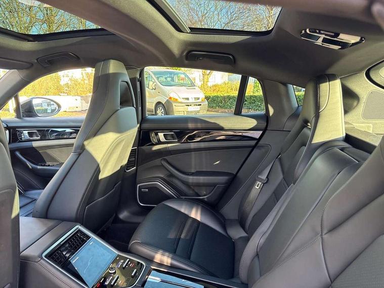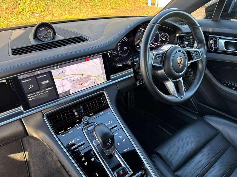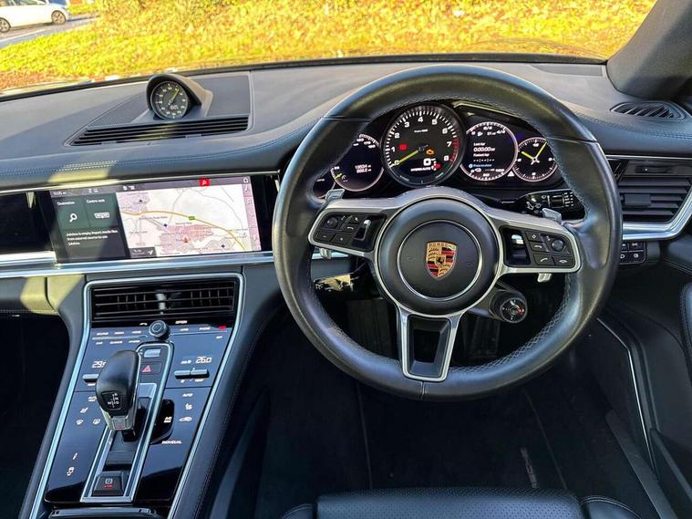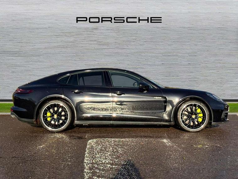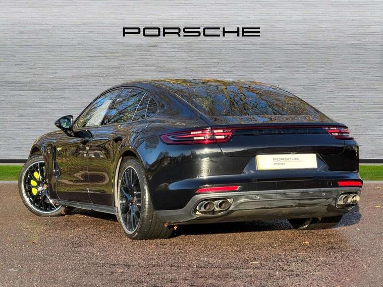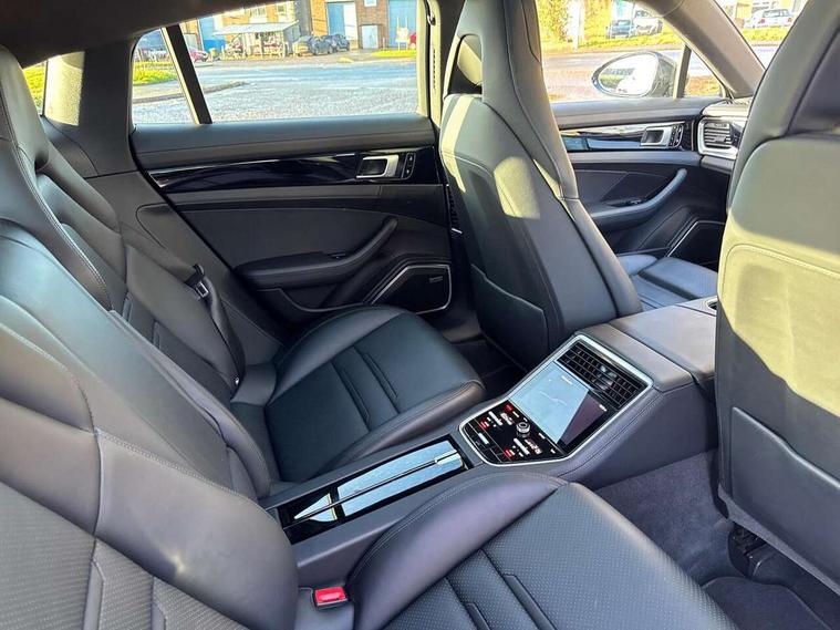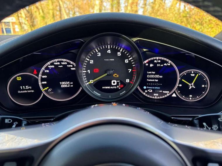 Ambient temperature display, Auto start/stop function and coasting, Automatic tailgate operation, Brake pad wear sensors front and rear, Instrument cluster with two high-resolution displays, Mobile telephone preparation, Service interval indicator, Trip computer, Voice control system, 2.5m length cable as connection between operating unit and the vehicle, 4D Integrated chassis control, 8 Speed Porsche Doppelkupplung (PDK), 80 litre fuel tank, Double wishbone front axle, Gasoline particulate filter, Multi link rear axle, Porsche stability management (PSM), Porsche universal charger including transport bag, 2 power cables and wall mount base, Power cable for 3 pin industrial blue outlet 32A/230V, Power cable for household outlet, VarioCam Plus, Water cooled with thermal management, Connect Plus with Apple CarPlay, wireless internet access, Carfinder, Remote Vehicle Status and Remote Services, DAB Digital radio, Integrated 4G/LTE compatible SIM including data for the Porsche Connect Services, 2 speed front wipers + intermittent wipe, Aluminium bonnet with tailgate, door and front wings, Aluminium roof rails, Auto dimming exterior mirrors, Auto dimming rear view mirror, Automatic headlight activation including welcome home lighting, Door sill guards in brushed aluminium with model designation at front, E-hybrid logo on both front doors in high gloss silver with acid green surround, Electric front and rear windows + anti trap + one touch, Electrically adjustable, folding and heatable exterior mirrors with aspherical on driver's side, Front light modules with LED position lights and direction indicators, Fully galvanised steel/aluminium hybrid lightweight bodyshell, Headlight wash system, Heated rear window with auto timer, LED daytime running lights, Porsche logo and model designation on tailgate in high-gloss silver and model designation with acid green surround, Rear diffuser, Remote window closing, Two way adaptive rear spoiler in exterior colour, Vehicle charging port, rear left to charge the high voltage battery, Water repellent glass in front side windows, Windscreen washer system including rain sensor, 12v plug sockets in the front centre console storage compartment, 12V socket in glovebox, 12V socket in luggage compartment, 60/40 individually folding backrests and rear seats with folding centre armrest, Active cooling flap control, Air quality sensor, Charge air cooling, Courtesy lights on mirrors, Driver and passenger illuminated vanity mirror, Four individual seats with continuous centre console and rear armrest, Front centre armrest with cupholder, Front centre armrest with storage compartment, Glove compartment, front and rear door storage compartments, storage bin in centre console, small storage compartment in centre console, Integrated front and rear headrests, Isofix child seat mounting points on outer rear seats, Manual fore/aft and height adjustment steering wheel, Parking pre climatisation, Pollen/active carbon filters, Rear centre console, Storage net in luggage compartment, Two integrated cup holders in rear compartment, Interior lighting pack - Panamera, Storage Pack, 3 point front/outer rear seatbelts + pre-tensioners + force limiters on front seats, 6-piston aluminium monobloc fixed caliper brakes at front, internally vented and slotted brake discs, Active bonnet, Anti-lock braking system (ABS), Brake discs with diameter 390 mm at front, 365 mm at rear, Continuously adjustable door brake, Curtain airbags along entire roof frame and side windows from the A pillar to the C pillar left and right, Driver and front passenger knee airbag, Driver/front passenger side airbags, Electronic parking brake, Four piston aluminium monobloc fixed brake calipers at rear, internally vented and slotted brake discs, Full size driver and passenger airbags, Height adjustable front seatbelts, Passenger airbag deactivation warning, Passenger knee airbag, Porsche side impact protection system (POSIP) includes side impact protection in doors, thorax airbags integrated into the side bolster of front seat, Porsche traction management (PTM) with AWD, map controlled multi-plate clutch, automatic brake differential (ABD) and anti-slip regulation (ASR), Tyre pressure monitoring system, Engine immobiliser with remote central locking and alarm system with radar based interior surveillance, Keyless drive, Tyre sealing compound and electric air compressor kit,