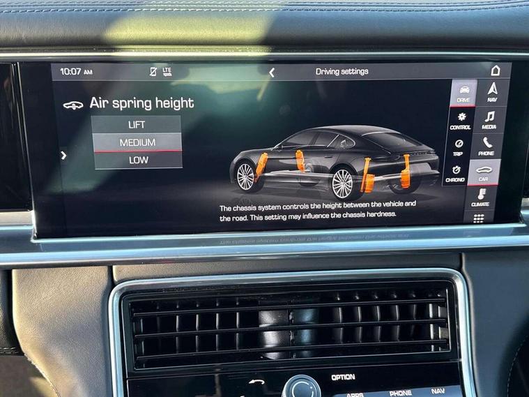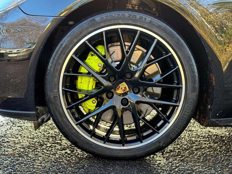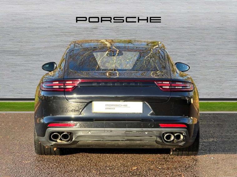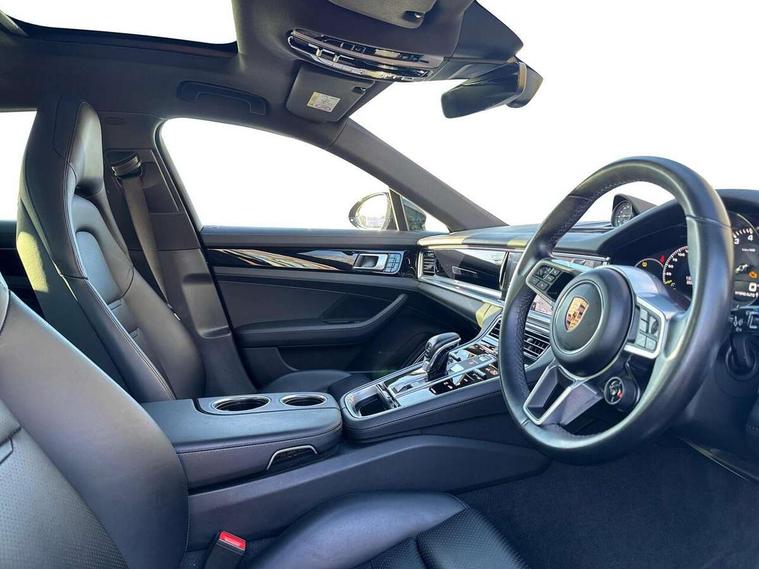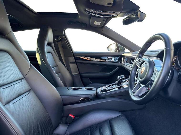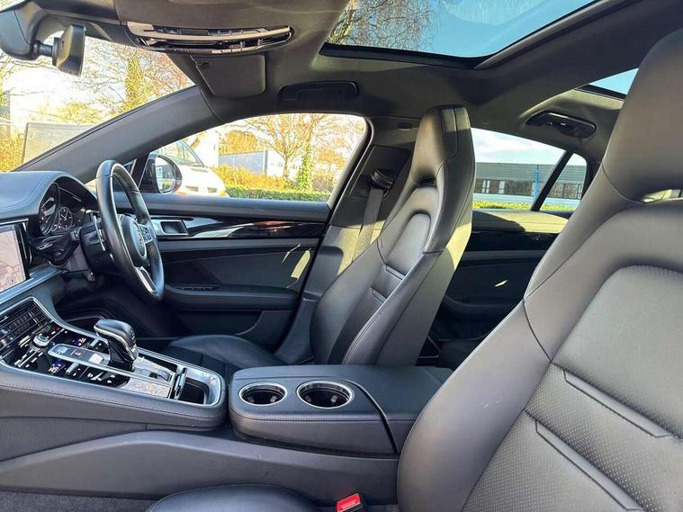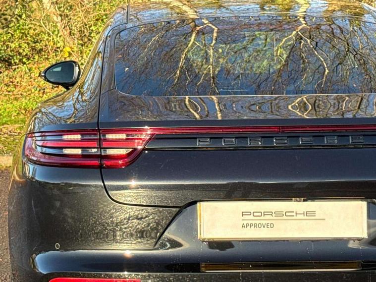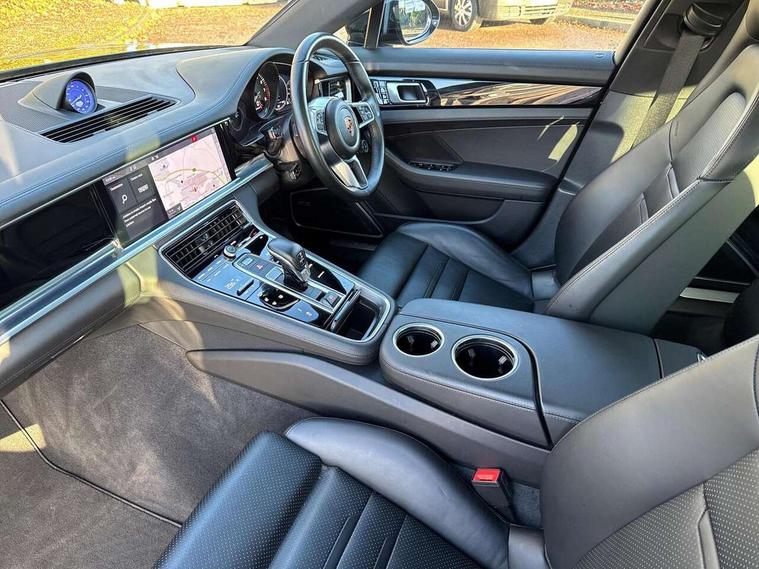 Ambient temperature display, Auto start/stop function and coasting, Automatic tailgate operation, Brake pad wear sensors front and rear, Instrument cluster with two high-resolution displays, Mobile telephone preparation, Service interval indicator, Trip computer, Voice control system, 2.5m length cable as connection between operating unit and the vehicle, 4D Integrated chassis control, 8 Speed Porsche Doppelkupplung (PDK), 80 litre fuel tank, Double wishbone front axle, Gasoline particulate filter, Multi link rear axle, Porsche stability management (PSM), Porsche universal charger including transport bag, 2 power cables and wall mount base, Power cable for 3 pin industrial blue outlet 32A/230V, Power cable for household outlet, VarioCam Plus, Water cooled with thermal management, Connect Plus with Apple CarPlay, wireless internet access, Carfinder, Remote Vehicle Status and Remote Services, DAB Digital radio, Integrated 4G/LTE compatible SIM including data for the Porsche Connect Services, 2 speed front wipers + intermittent wipe, Aluminium bonnet with tailgate, door and front wings, Aluminium roof rails, Auto dimming exterior mirrors, Auto dimming rear view mirror, Automatic headlight activation including welcome home lighting, Door sill guards in brushed aluminium with model designation at front, E-hybrid logo on both front doors in high gloss silver with acid green surround, Electric front and rear windows + anti trap + one touch, Electrically adjustable, folding and heatable exterior mirrors with aspherical on driver's side, Front light modules with LED position lights and direction indicators, Fully galvanised steel/aluminium hybrid lightweight bodyshell, Headlight wash system, Heated rear window with auto timer, LED daytime running lights, Porsche logo and model designation on tailgate in high-gloss silver and model designation with acid green surround, Rear diffuser, Remote window closing, Two way adaptive rear spoiler in exterior colour, Vehicle charging port, rear left to charge the high voltage battery, Water repellent glass in front side windows, Windscreen washer system including rain sensor, 12v plug sockets in the front centre console storage compartment, 12V socket in glovebox, 12V socket in luggage compartment, 60/40 individually folding backrests and rear seats with folding centre armrest, Active cooling flap control, Air quality sensor, Charge air cooling, Courtesy lights on mirrors, Driver and passenger illuminated vanity mirror, Four individual seats with continuous centre console and rear armrest, Front centre armrest with cupholder, Front centre armrest with storage compartment, Glove compartment, front and rear door storage compartments, storage bin in centre console, small storage compartment in centre console, Integrated front and rear headrests, Isofix child seat mounting points on outer rear seats, Manual fore/aft and height adjustment steering wheel, Parking pre climatisation, Pollen/active carbon filters, Rear centre console, Storage net in luggage compartment, Two integrated cup holders in rear compartment, Interior lighting pack - Panamera, Storage Pack, 3 point front/outer rear seatbelts + pre-tensioners + force limiters on front seats, 6-piston aluminium monobloc fixed caliper brakes at front, internally vented and slotted brake discs, Active bonnet, Anti-lock braking system (ABS), Brake discs with diameter 390 mm at front, 365 mm at rear, Continuously adjustable door brake, Curtain airbags along entire roof frame and side windows from the A pillar to the C pillar left and right, Driver and front passenger knee airbag, Driver/front passenger side airbags, Electronic parking brake, Four piston aluminium monobloc fixed brake calipers at rear, internally vented and slotted brake discs, Full size driver and passenger airbags, Height adjustable front seatbelts, Passenger airbag deactivation warning, Passenger knee airbag, Porsche side impact protection system (POSIP) includes side impact protection in doors, thorax airbags integrated into the side bolster of front seat, Porsche traction management (PTM) with AWD, map controlled multi-plate clutch, automatic brake differential (ABD) and anti-slip regulation (ASR), Tyre pressure monitoring system, Engine immobiliser with remote central locking and alarm system with radar based interior surveillance, Keyless drive, Tyre sealing compound and electric air compressor kit,