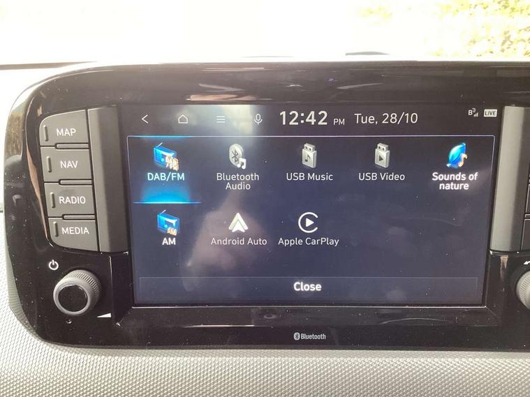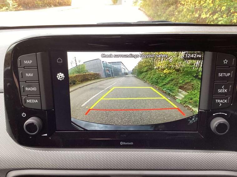 12.5" touchscreen centre console display audio with navigation, mapcare and live services, Apple car play/Android Auto, Bluelink mobile remote connectivity, Bluetooth connectivity with voice recognition, Cruise control, Driver attention alert system, eCall emergency call system, Forward Collision-Avoidance Assist (FCA) - Pedestrian/Cyclist, Front USB-C charging and USB-A data, Full-width 4.2" LCD instrument cluster, Intelligent speed limit assist, Lane departure warning system with lane keep assist - LKAS, Lane follow assist, PAS, Rear parking sensors, Rear view camera with guidelines, Roadside assistance, Start/Stop function, Tailgate, Trip computer, 2 front/2 rear speakers, Rear USB-C device charger, Steering wheel audio, phone and cruise controls, 1 speed non intermittent rear windscreen wiper, Black finish on B pillars, Body colour door handles, Body coloured bumpers, Body coloured door mirrors, Electric front windows, Electric rear windows, Electrically adjustable and heated door mirrors, Flat metal emblem, Front grille in matte black, Front intermittent wipers, Halogen daytime running lights, Halogen headlights, Headlights inner with Black Blade design, Heated rear window, High beam assist, Indicator light on door mirrors, Rear side wing doors, Rear spoiler with integrated LED brake light, 12v power outlet - front, 3 seat bench in 2nd row, 60/40 split folding flat to floor rear seats, Air conditioning, Auto light control, Bottle holders in front/rear doors + front centre console, Cabin and luggage compartment interior lighting, Cloth upholstery, Driver + passenger vanity mirrors, Driver's seat height adjustment, Driver/passenger sunvisors with ticket holders, Floor mats, Front door pockets, Front Head Restraints - Vertical and Horizontal Adjustment, Glove compartment, Height adjustable steering column, Isofix child seat preparation, Leather multifunction steering wheel, Rear door pockets, Single front passenger seat, Vertical adjustment rear head restraints, 3x3 point rear seatbelts, Airbags - front, front side and curtain airbags, Anti-lock brake system (ABS), Autonomous emergency braking (AEB) with forward collision warning system, Brake assist function, Childproof rear door locks, Electronic stability control, Front and rear seatbelt reminder, Front seatbelt pretensioners, Hill start assist control (HAC), Passenger airbag deactivate switch, Traction control, Tyre pressure monitoring system, Immobiliser, Perimeter alarm, Rear occupant alert, Remote central locking, Second remote key, Speed sensitive auto door locking, 15" alloy wheels, Tyre repair kit,