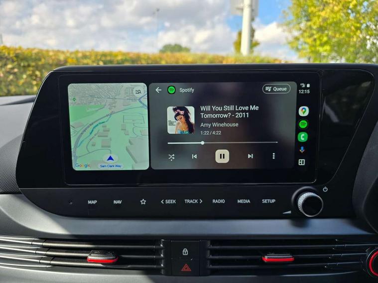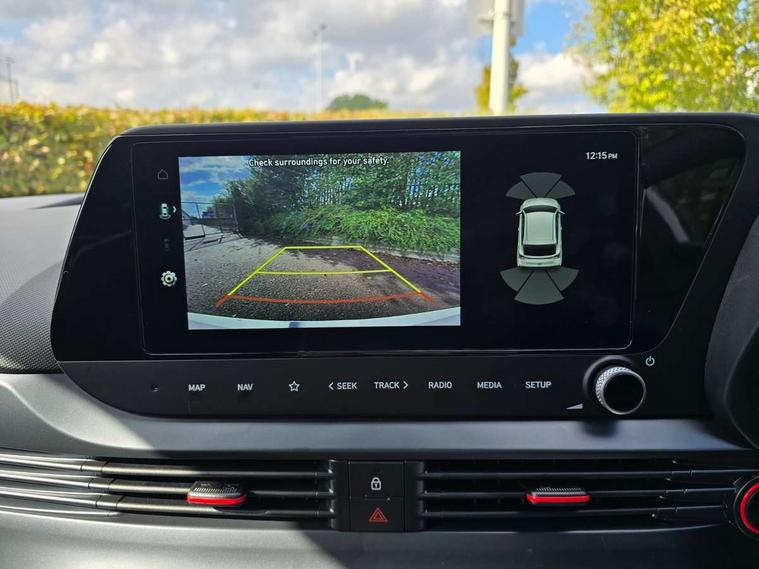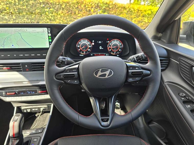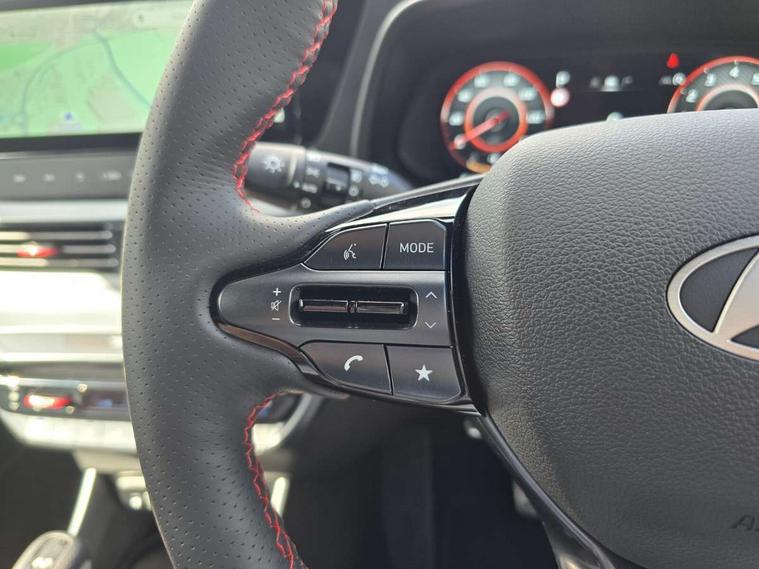 10.25" Touchscreen satellite navigation including mapcare and live services, 2nd Gen eCall, 8" Touchscreen DAB Radio with android auto and apple carplay, Apple car play/Android Auto, Driver's supervision instrument cluster with 10.25" LCD display, E-call, Forward collision assist with car, pedestrian and cycle detection, Front parking sensor, Intelligent speed assist, Lane follow assist, Lane keep assist, MAP OTA updates, PAS, Rear parking sensor, Rear view camera with dynamic guidelines, Wireless charging pad, Bose premium sound system, USB C and USB A ports in front, USB C Port in rear, Automatic defog system for front windscreen, Automatic dimming rear view mirror, Automatic headlights with dusk sensor, Automatic windscreen wipers, Body colour door handles, Electric front and rear windows, Front fog lights, Heated door mirrors with electric adjustment and power folding function, High beam assist, LED daytime running lights, LED Headlights, LED positioning lights, LED taillights, Privacy glass - Rear windows and tailgate, Rain sensor, Rear roof spoiler with integrated LED brake light, Rear side wing doors, Rear wiper, Repositioned flat metal hyundai emblem, Shark fin antenna, Windscreen with acoustic film, 3 seat bench in 2nd row, Adjustable head restraints, Air conditioning climate control, Automatic de-fog system for front windscreen, Cloth upholstery, Driver and passenger illuminated vanity mirrors with driver ticket holder, Floor mats, Front cup holder, Heated front seats, Heated steering wheel, Height adjustable driver's seat, Isofix, Leather wrapped steering wheel and gear knob, Luggage hooks, Multi colour ambient lighting, Rear Seats - Split Folding (60/40), Single front passenger seat, Sport metal pedals, Steering wheel remote controls, Tilt and telescopic steering wheel adjustment, 3x3 point rear seatbelts, Anti-lock brake system (ABS), Autonomous emergency braking, Child locks on rear doors, Driver and front passenger airbags, Rear seat alert, Side and Curtain airbags, Tyre pressure monitoring system, Immobiliser, Smart key with keyless entry and engine start/stop button, 17" N Line black alloy wheels, Tyre repair kit,