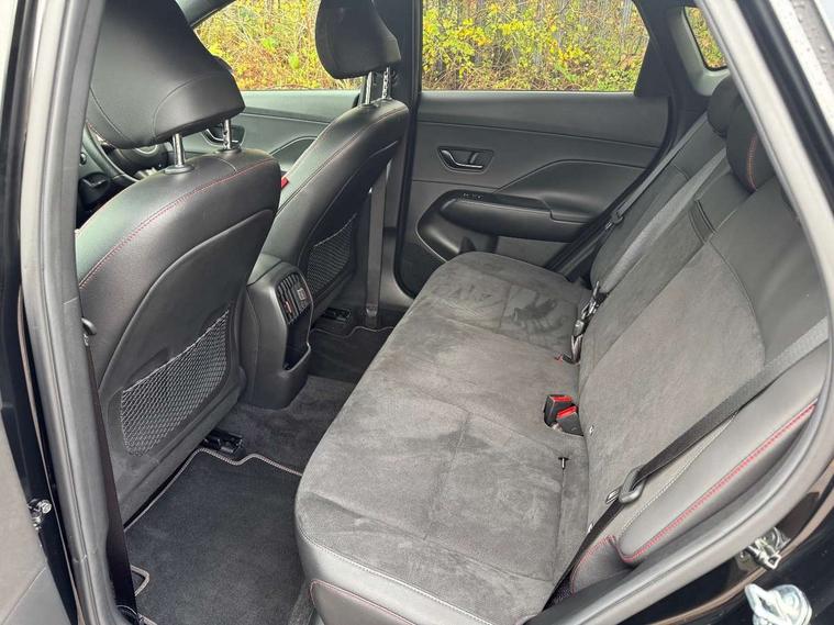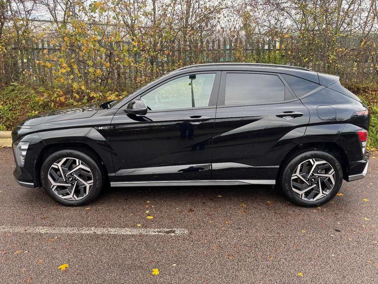 10.25" touchscreen + navigation, 12.25" digital instrument cluster, 12.3" touchscreen centre console display satellite navigation with bluelink, live services and mapcare, Blind spot collision avoidance assist, Blind spot view monitor, Bluetooth connectivity with voice recognition, Cruise control, Cruise control with speed limiter, Driver status monitor (DSM), Driver supervision instrument cluster with 12.3" LCD display, eCall emergency call system, Feature on demand - Enabled, Forward collision avoidance assist (FCA 1.5) - Car, pededstrian, cycle and junction turning, Front parking sensor, Height adjustable power tailgate, Intelligent speed limit assist, Lane follow assist, Lane keep assist, Leading vehicle departure alert (LVDA), Parking Collision Avoidance Assist-Reverse (PCA-R), Parking distance warning - side, Parking system with rear camera and guidance system, PAS, Rear cross traffic collision avoidance (RCCA), Rear parking sensor, Rear view camera with dynamic guidelines, Safe exit warning (SEW), Surround view monitor, Wireless phone charging pad, Wireless Smartphone Integration includes Apple CarPlay and Android auto, 2 front USB C and 2 rear USB C charging points, Bose Premium Audio system with 7 premium speakers + subwoofer, DAB Digital radio, Steering wheel audio, phone and cruise controls, Auto dimming rear view mirror, Automatic headlights with dusk sensor, Automatic windscreen wipers with rain sensor, Body colour exterior door handles, Body coloured wheel arch inserts, Door mirror LED indicator lights, Electric front windows with anti-trap mechanism and one touch control, Electric rear windows, Electrically adjustable and heated door mirrors, Gloss black door mirrors, Horizon centre LED DRL, LED 3rd brake light, LED daytime running lights, LED projector headlights, LED taillights, LED upper and lower rear lights, Power folding door mirrors, Privacy glass - Rear windows and tailgate, Rain sensor, Rear roof spoiler with integrated LED brake light, Rear side wing doors, Roof rails, Solar glass with front door glass and windscreen, Tinted glass in front and rear doors, Windscreen auto defog function, 12V power outlet in front console, 2 zone climate control, 3 seat bench in 2nd row, 40/20/40 split folding rear seat, Adjustable head restraints, Aluminium pedals, Ambient lighting, Driver and passenger front seat pockets, Driver's seat lumbar support, Driver/passenger manual seat height adjustment, Driver/passenger sunvisors and illuminated vanity mirrors, Floor mats, Heated front seats, Heated rear seats, Heated steering wheel, Height/reach adjustable steering column, Leather steering wheel, Leather wrapped steering wheel and gear knob, LED centre interior light, LED front interior light, Luggage compartment LED lighting, Luggage net, Luggage shelf, Metal paint effect interior door handles, N Line Alcantara/leather upholstery, Rear centre armrest with cupholders, Single front passenger seat, Ventilated front seats, Vertical adjustment rear head restraints, N Line exterior design pack - Kona, N Line interior design package - Kona N Line S, Trailer wiring package - Kona, Airbag - front, front side, curtain and centre front airbag, Anti-lock brake system (ABS), Childproof rear door locks, Downhill brake control, Electric parking brake, Electronic stability control, Fixed 3 point for second row centre passenger seatbelt, Hill start assist control (HAC), Rear seat alert, Tyre pressure monitoring system, Alarm/immobiliser, Remote central locking, Smart key with keyless entry and start/stop button, 18" Alloy wheels, Temporary mobility kit (TMK),