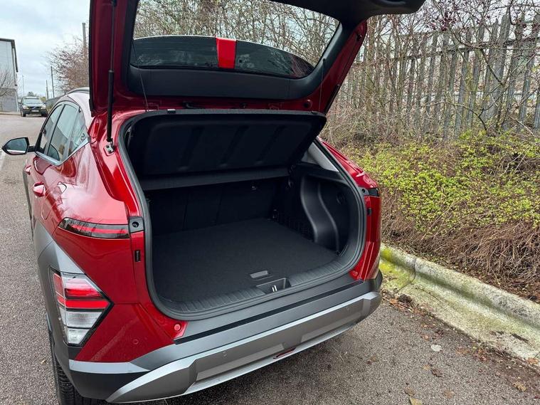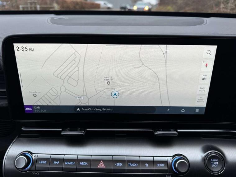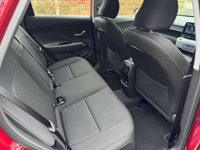 12.25" digital instrument cluster, 12.3" touchscreen centre console display satellite navigation with bluelink, live services and mapcare, Bluetooth connectivity with voice recognition, Driver status monitor (DSM), Driver supervision instrument cluster with 12.3" LCD display, eCall emergency call system, Feature on demand - Enabled, Forward collision avoidance assist (FCA 1.5) - Car, pededstrian, cycle and junction turning, Front parking sensor, HDA - Highway Drive Assist Level 1.5, Intelligent speed limit assist, Lane follow assist, Lane keep assist, Leading vehicle departure alert (LVDA), Parking system with rear camera and guidance system, PAS, Rear parking sensor, Rear view camera with dynamic guidelines, Roadside assistance, Smart cruise control with stop and go functionality, Wireless Smartphone Integration includes Apple CarPlay and Android auto, 2 front USB C and 2 rear USB C charging points, DAB Digital radio, Speakers - Front, rear and tweeters, Steering wheel audio, phone and cruise controls, Auto dimming rear view mirror, Automatic headlights with dusk sensor, Automatic windscreen wipers with rain sensor, Black painted wheel arch inserts, Body colour exterior door handles, Body coloured door mirrors, Door mirror LED indicator lights, Electric front windows with anti-trap mechanism and one touch control, Electric rear windows, Electrically adjustable and heated door mirrors, Full LED MFR headlights, LED daytime running lights, LED taillights, LED upper and lower rear lights, Power folding door mirrors, Rear roof spoiler with integrated LED brake light, Rear side wing doors, Rear skid plate - silver, Rear wiper, Roof rails, Tinted glass in front and rear doors, Windscreen auto defog function, 12V power outlet in front console, 2 zone climate control, 3 seat bench in 2nd row, Adjustable head restraints, Cloth upholstery, Driver and passenger front seat pockets, Driver's seat lumbar support, Driver/passenger manual seat height adjustment, Driver/passenger sunvisors and illuminated vanity mirrors, Floor mats, Height/reach adjustable steering column, Leather steering wheel, LED centre interior light, LED front interior light, Luggage compartment LED lighting, Luggage shelf, Metal paint effect interior door handles, Rear centre armrest with cupholders, Shift by wire SBW, Single front passenger seat, Vertical adjustment rear head restraints, Trailer wiring package - Kona, Airbag - front, front side, curtain and centre front airbag, Anti-lock brake system (ABS), Childproof rear door locks, Downhill brake control, Electric parking brake, Electronic stability control, Fixed 3 point for second row centre passenger seatbelt, Hill start assist control (HAC), Rear seat alert, Tyre pressure monitoring system, Alarm/immobiliser, Rear occupant alert, Remote central locking, Smart key with keyless entry and start/stop button, Five year annual vehicle health checks, 18" Alloy wheels, Temporary mobility kit (TMK),