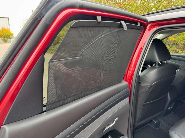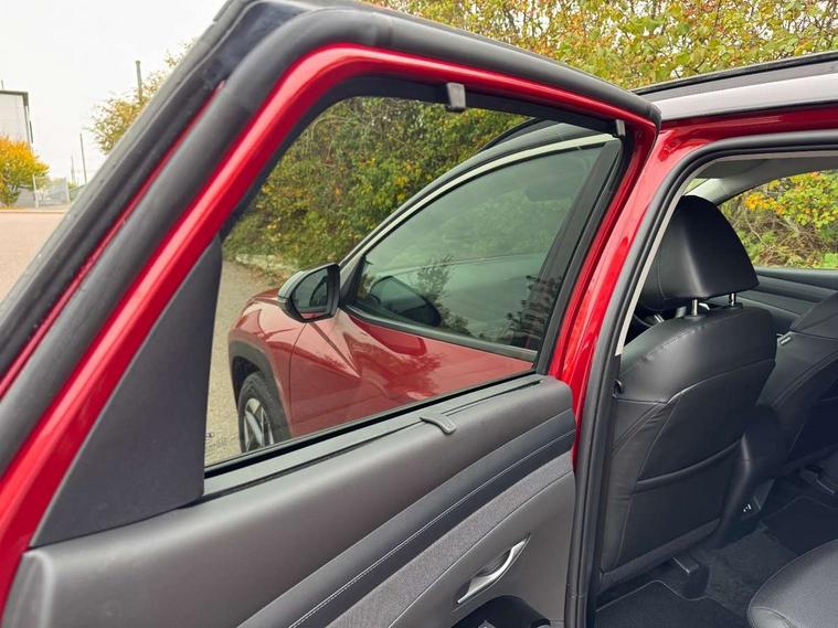 12.3" LCD display with driver's supervision instrument cluster, 12.3" widescreen navigation with bluelink and mapcare, Bluetooth system, Cruise control, Digital clock, Drive mode selector, Driver attention warning, E-call, Emergency stop signalling system, Forward Collision Avoidance Assist (FCA) - Car, Pedestrian and Cycle, Forward Collision Avoidance Assist Junction Turning (FCAJX), Front and rear parking sensors, Hyundai road side assistance, Intelligent speed limit assist, Lane follow assist, Lane keep assist, Over the air updates(OTA), PAS, Rear camera and guidance parking system, Rev counter, Smart power tailgate, Tailgate open warning light, Trip computer, Trip odometer, Voice recognition, Water temperature gauge, Windscreen washer fluid sensor and warning indicator, Wireless Apple CarPlay/Android Auto, Wireless phone charging pad, 2 front and 2 rear USB-C ports, DAB Digital radio, Krell premium audio system with 8 speakers and subwoofer, Steering wheel mounted audio/phone controls, Adjustable intermittent front windscreen wipers with aero wiper blade, Auto dimming rear view mirror, Automatic defog system, Automatic headlights with dusk sensor, Automatic windscreen wipers with rain sensor, Black wheel arches, Body colour bumpers, Body colour door mirrors with integrated indicators, Body colour exterior door handles, Electrically adjustable, heated and power folding door mirrors, Follow me home headlights, Front and rear electric windows with anti-trap mechanism and one touch control, Front fog lights, LED 3rd brake light, LED daytime running lights, LED Headlights, LED rear lights, Positioning Lights - LED, Privacy glass - Rear windows and tailgate, Rear side wing doors, Rear wash/wipe with intermittent wipe setting, Roof rails, Soft touch rear door paneling, Tinted glass with windscreen shade band, Trailer stability assist, 12V power outlets in front console and luggage compartment, 3 seat bench in 2nd row, 40/20/40 split folding rear seat, 64 colours interior ambient lighting, Adjustable head restraints (Up and down), Cupholders in rear armrest, Door courtesy lights, Driver and passenger sunvisors with illuminated LED vanity mirrors, Driver's seat electric adjustments, Dual zone climate control, Front and rear door pockets, Front armrest with storage box, Front centre console and door bottle holders, Front passenger's seat electric adjustments, Heated front seats, Heated rear seats, Heated steering wheel, Height/reach adjustable steering column, Illuminated/air conditioned glove compartment, ISOFIX child seat anchorage points attached on outer rear seats, Leather wrapped steering wheel and gear knob, LED interior lighting, Luggage compartment lighting, Luggage cover, Luggage hooks, Luggage net, Map and reading lights, Premium cloth/leather upholstery, Rear seat remote folding function, Rear side window sunblind, Reclining rear seats, Retractable load cover, Single front passenger seat, Sunglasses holder, Touch sensitive climate controls with temperature dials, TUCSON branded metal door scuff plate, Underfloor boot compartment, Trailer wiring package - Tucson, 3x3 point rear seatbelts, Active bonnet, Airbag - Front, front side, curtain and centre front airbags, Anti-lock brake system (ABS), Brake assist function, Childproof rear door locks, Curtain airbag roll over sensor, Downhill brake control, Electric parking brake, Electronic stability control, Front and rear seatbelt reminder, Front passenger airbag deactivation switch, Front seatbelt pretensioners, Hill start assist control (HAC), Multi-Collision braking, Outer rear seatbelt height adjustment, Seatbelt height adjustment for front seats, Traction control, Tyre pressure monitoring system with individual tyre pressure display - TPMS, Vehicle stability management, Deadlocks, Immobiliser, Locking wheel nuts, Remote control central locking, Smart key with keyless entry and engine start/stop button, Speed sensitive auto door locking, Thatcham category 1 alarm, 18" Alloy wheels, Tyre repair kit,