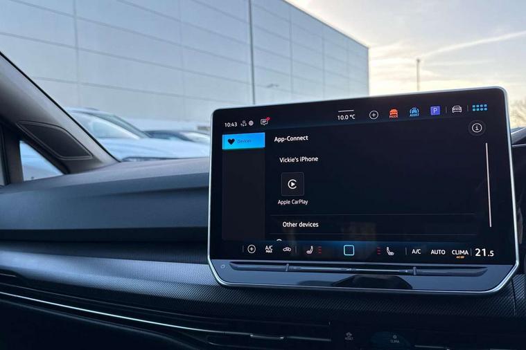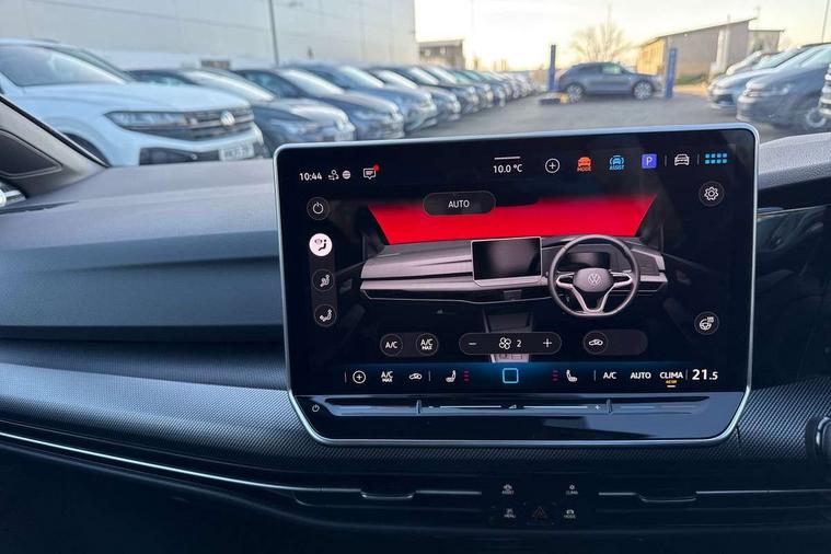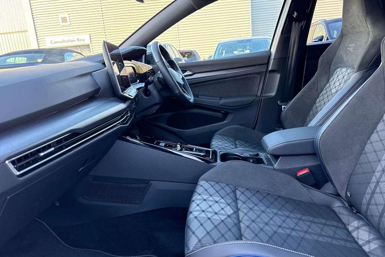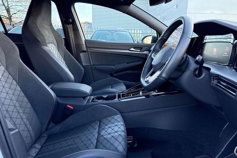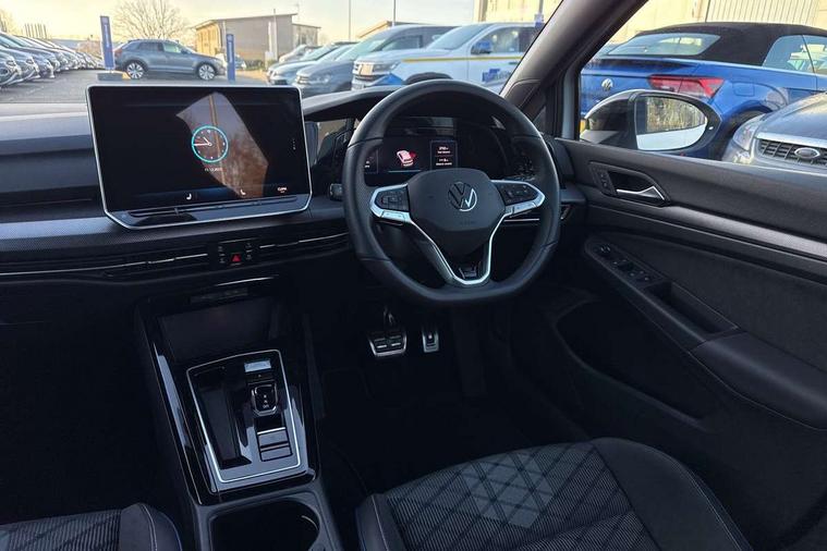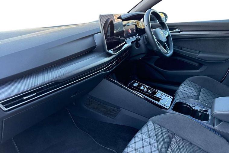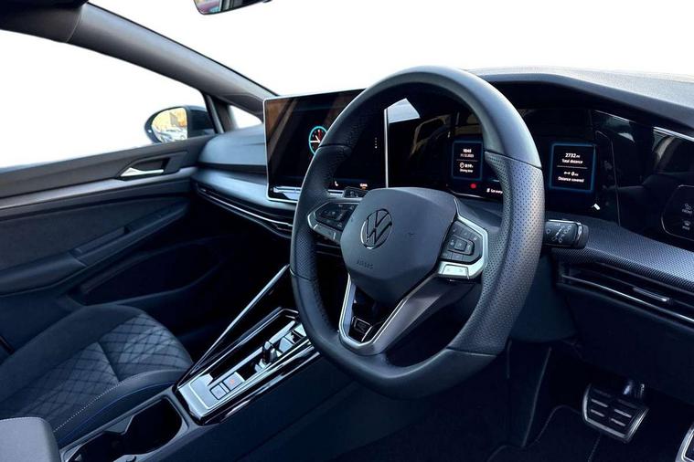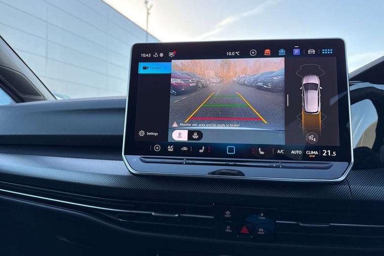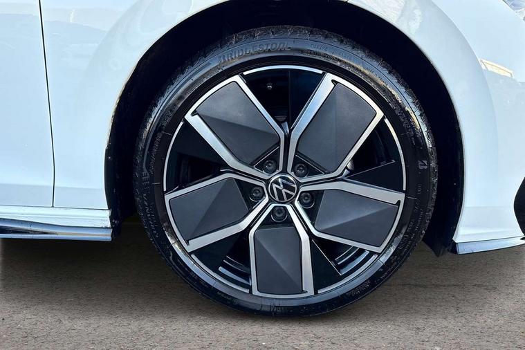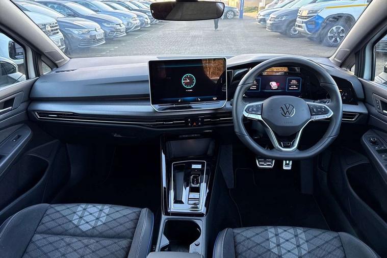 Activated carbon canister, Adaptive cruise control (ACC), Advanced driver attention and drowsiness monitor, Dynamic road sign display, Dynamic steering, E-Sim card for online connectivity, eCall emergency call system, Multi-color Digital cockpit pro, selection of different info profile possible, Multifunction front facing camera for distance control, Navigation system, Oncoming vehicle braking when turning including swerve support, Speed limiter, Speedo, rev counter, electronic odometer, trip, service interval display, exterior temperature and fuel gauge, Traffic jam assist, Voice enhancer and voice control, Warning signal and warning light for front and rear seatbelts not fastened, We connect plus preparation, We connect preparation, Wireless app connect, Hybrid propulsion system, Petrol Particulate Filter, Start-stop system with battery regeneration (recuperation - energy recovery during braking), XDS electronic differential lock for improved traction and handling, 2 USB C ports in front, 2 USB charging sockets on the centre console in the rear charging capacity upto 45W, Digital radio reception (DAB), Diversity antenna for FM reception, Gaming platform via car app, Infotainment system with 12.9" display, Mobile phone interface with inductive charging feature, 3rd brake light, Auto dimming rear view mirror, Automatic headlamp activation with Coming home and Leaving home feature, Body colored bumpers in R-Line style, Body colour door handles, Exterior ambient lighting, Exterior mirrors convex on the left and aspherical on the right, Front and rear electric windows, Heat insulating windshield made of laminated glass, LED separate daytime running light, Rain sensor, Rear exhaust tailpipe, Rear fog light on one side and reversing lights on both sides, Rear side wing doors, Rear windscreen washer and wiper with interval delay, Remote electrically foldable door mirrors, puddle lights and reverse activated passenger's door mirror, Volkswagen logo in front, illuminated lighting animation with wake up/goodbye scenario and illuminated door handles, Welcome light with surround lighting, 12V socket in front centre console, 12V socket in luggage compartment, 3 rear head restraints, 3 seat bench in 2nd row, Ambient lighting with 30 colour including LED light unit in front footwell with selectable light colour, Black roof lining, Brushed stainless steel pedals, Chrome plated radiator grille inserts, air vent surrounds and light switch surrounds, Door insert, side trim panel and arm support in leatherette, Front + rear black carpet mats, Front centre armrest, Front seat lumbar support adjuster, Integrated front head restraints, ISOFIX anchors for child seats on outer rear bench seats and on front passanger seat compatible for i-Size, Luggage compartment lighting, Manual height adjustable front passenger seat, Manually height adjustable driver seat, Plastic gear knob, Premium sports seats in front, Rear cupholder and loadthough, Sardegna cloth upholstery with front and outer rear seats Art Velour inner sides of bolsters, Single front passenger seat, Split folding backrest with centre armrest and unsplit rear seat bench, Sun visors with illuminated vanity mirrors, Titanium black instrument panel, Black exterior Styling package with Matrix LED headlights - Golf, Winter package - Golf DSG Estate/Hatchback, 3 point height adj front seatbelts + pretensioners, 3 rear three point seatbelts, ABS, Autonomous emergency braking front assist with pedestrian and cyclist monitoring, Child locks on rear doors, Driver and front passenger airbag with front passenger airbag deactivation, Electronic parking brake with auto hold, ESC (Electronic Stability Control), Extended pedestrian protection measures, Hill start assist, Rear disc brakes, Two tone horn, Tyre pressure loss indicator, Volkswagen roadside assistance, Anti theft wheel bolts, Preparation for alcohol interlock, Decorative inserts carbon grey for dashboard and front door trim panels, 18" Leeds alloy wheels, Tool kit for tyre mobility set, Tyre mobility kit Includes 12V compressor and tyre sealant,