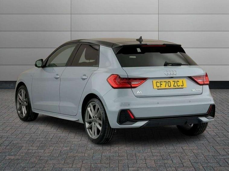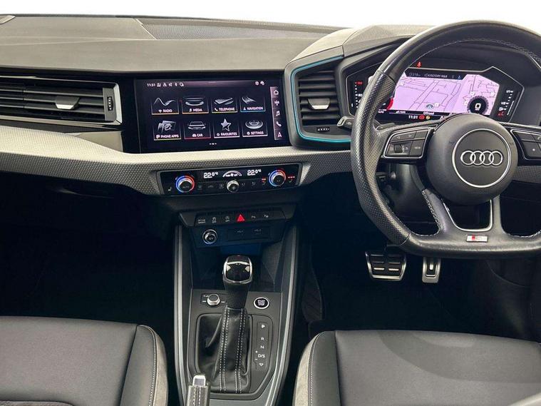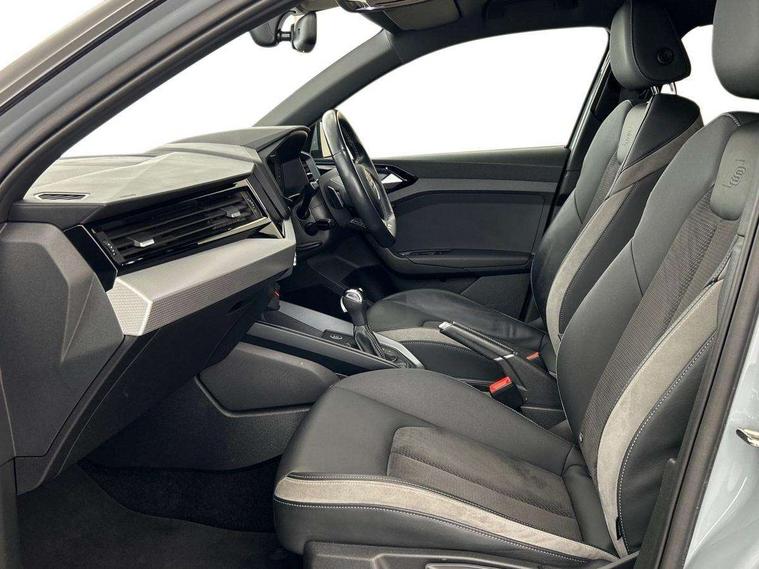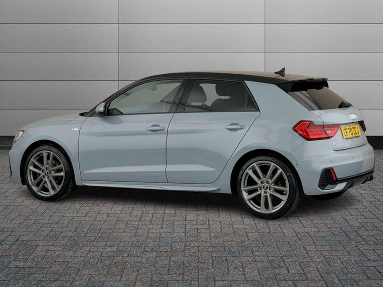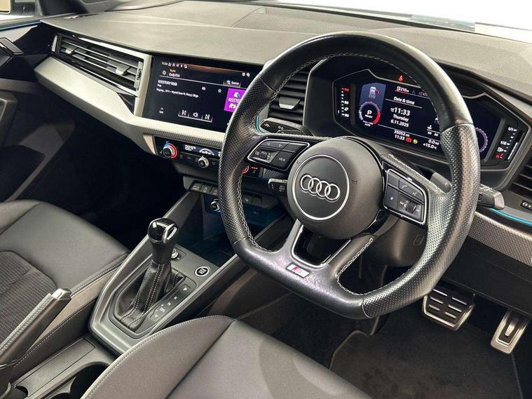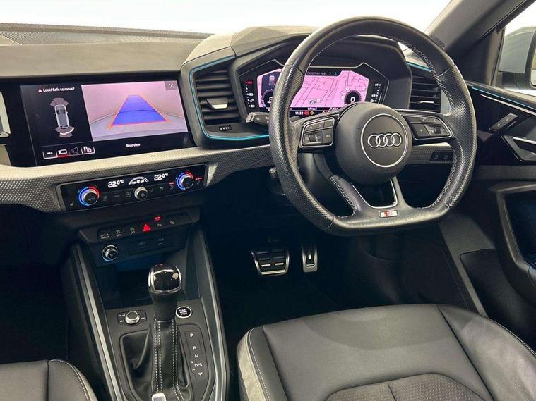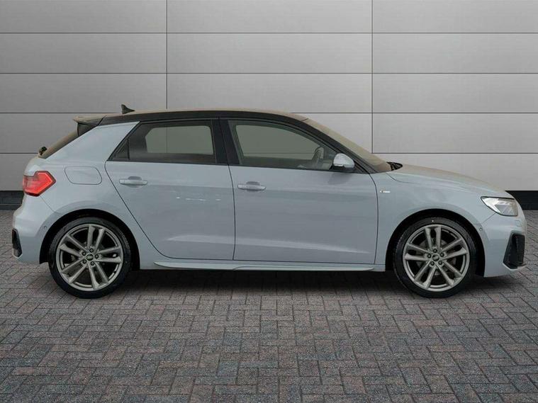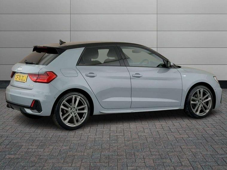 Adaptive speed assist, Audi connect safety emergency and service including E-call, Audi drive select - power steering assistance + engine + gear shift 3 preset modes (auto, dynamic, efficiency and an Individual mode), Audi phone box with wireless charging, Automatic start/stop system, Bluetooth interface, Cruise control, Driver's information system, Electromechanical power steering, Lane departure warning system, Service interval indicator, Speed limiter, Washer fluid level indicator, Sports suspension, 1 x SDXC card reader, 2 x USB type C connection points, DAB Digital radio, Auto dimming rear view mirror, Body coloured door mirrors, Door sills with aluminium inlays and S Line logo, Electric front and rear windows, Electrically adjustable, heated, folding door mirrors with integrated LED side indicator, Front side air inlets in grained matt black and C frame in titanium black, Heat insulating glass windscreen and side windows, Heated rear windscreen, LED headlights with LED rear lights + dynamic rear indicators + headlight adjustment and high beam, turning light + LED daytime running lights, Radiator grille and rear diffuser in matt titanium black, Radiator protective grille frame in matt aluminium silver, Rain and light sensors, Rear fog lights, Rear wiper, S line badges on front wings, Side front spoiler lips in grained matt black, 12V socket in centre console with two cup holders, 3 rear seats with headrests, 3 spoke flat bottomed multi-function plus leather steering wheel with S badging, grips in preforated leather, contrast stitching and paddle shift, 40:60 Split folding rear seat or folded fully, Black cloth headlining, Driver and passenger seat with manual height adjust with forward and backwards adjustment, Frequency alcantara/leatherette upholstery with contrast stitching in fine silver and S embossed logo + front sports seats, Front and rear black floor mats with contrast stitching in fine silver, Front head restraints, Height and reach adjustable steering wheel, ISOFIX child seat mounting for front passenger and outer rear seats including top tether attachment point of outer rear seats, Leather gear knob with aluminium trim, Luggage compartment light with front and rear reading lights, Manually adjustable lumbar support in front seats, Stainless steel pedals, Black exterior styling pack - A1 Sportback Vorsprung, Comfort and sound pack - A1 Sportback, Luggage compartment pack - A1, Multicoloured LED Ambient lighting pack - A1 Sportback, Plus pack - A1 Sportback, Technology pack - A1 Sportback, 3x3 point rear seatbelts, Audi pre-sense front with pedestrain and cyclist recognition, Brake assist function, Driver and front passenger airbag with front side and head airbags, Electronic Stability Control including ABS, EBD, ASR and EDL, Front and rear seatbelt reminder, Front passenger airbag deactivation switch, Hill hold assist, Seatbelt height adjustment for front seats, Seatbelt monitoring, Tyre pressure warning light, Warning triangle and first aid kit, Advanced key, Anti theft alarm, Anti theft wheel bolts and loose wheel warning, Immobiliser, Remote central locking with 2 foldaway keys, Aluminium trim for control switches, air vents and digital instrument cluster, Silver grey inlays polygon structure in diamond paint finish, Structured grey accent areas including air vents, door handle recesses and centre console in quartz paint finish, 18" 5 double arm design alloy wheels in matt titanium look with diamond cut finish,