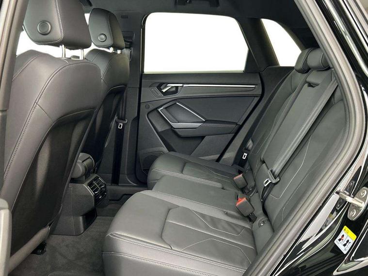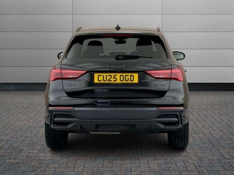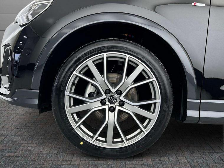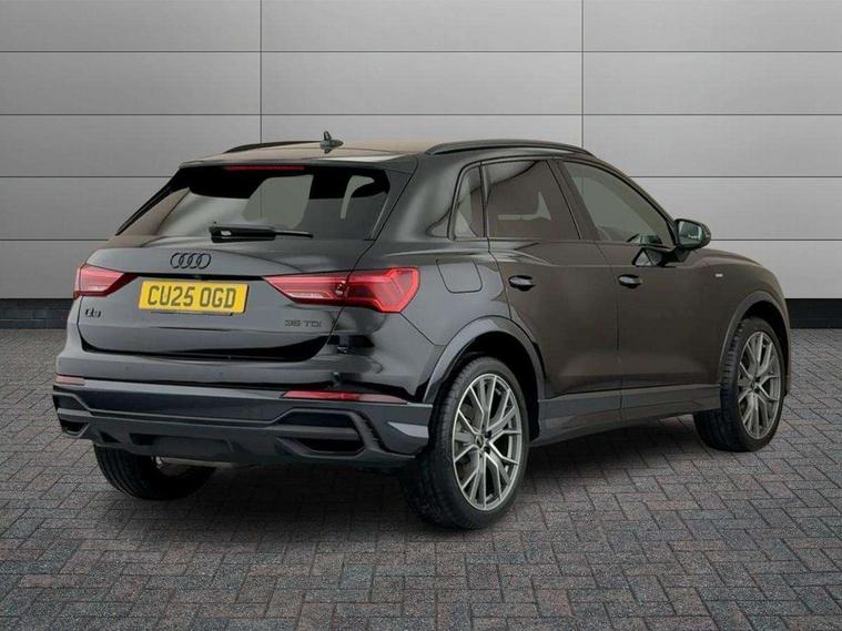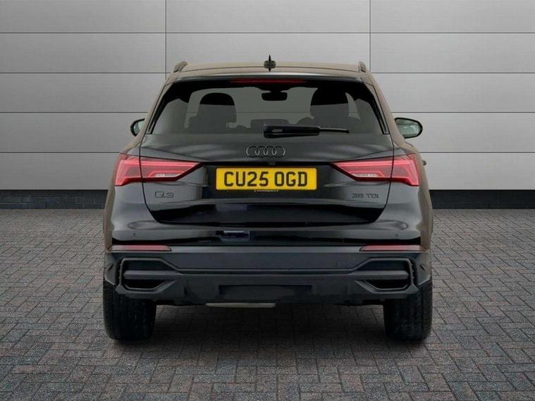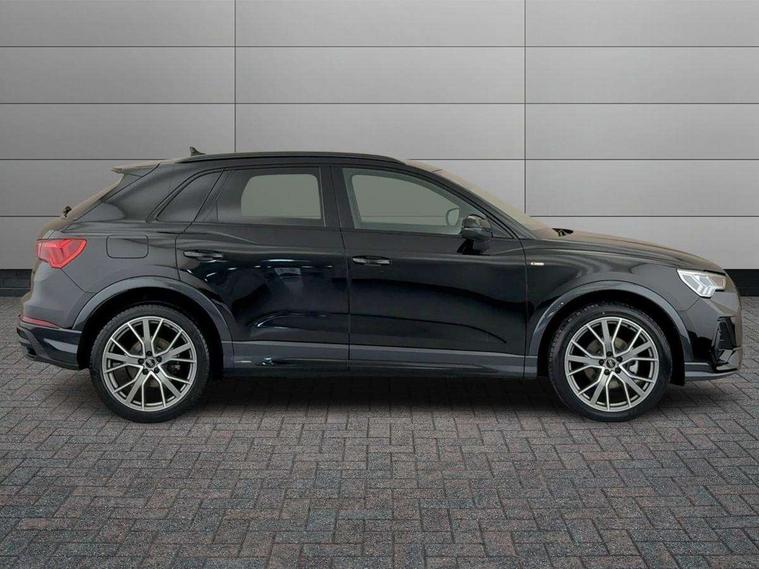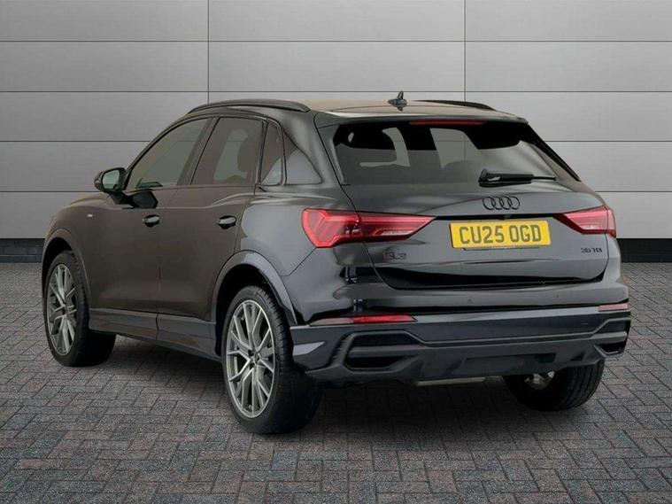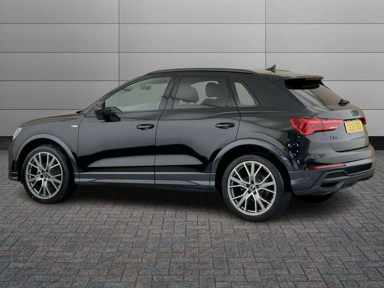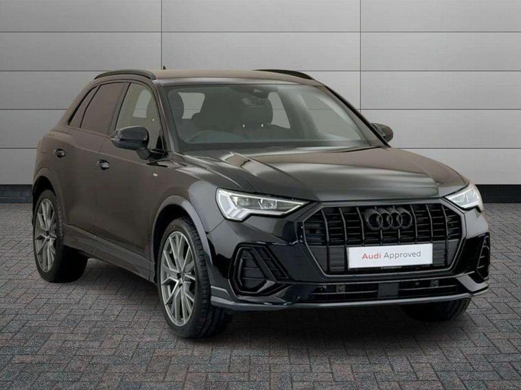 Amazon alexa Integration, Audi connect safety and service, Audi drive select, Audi lane departure warning, Audi Virtual Cockpit - 10.25" display, Bluetooth interface, Camera based traffic sign recognition, Distraction and Fatigue warning, Legal emergency call, MMI Navigation Plus with high resolution 10.1 inch touchscreen colour display, Power operated tailgate, Progressive steering, Service interval indicator, Smartphone interface includes wireless Apple carplay/Android Auto, Start stop system with recuperation, Voice control system with natural language interaction, Diesel particulate filter, Sports suspension, 2 USB-C ports with charge and data functions, 6 passive loudspeakers, DAB digital radio module, Acoustic windscreen, Audi Beam uses LEDs to project the Audi logo onto the ground as you exit your Q3, Auto dimming door mirrors, Auto dimming frameless rear view mirror, Black roof rails, Electrically folding, adjustable and heated door mirrors with integrated LED side indicators and kerb view function for passenger side, Front and rear electric windows, Front fog lights, Grille vertical bars in aluminium silver/Matt, High gloss black finish B and C pillars, LED Dynamic rear indicators, LED headlights with LED daytime running lights, LED rear lights, LED third brake light, Privacy glass dark tinted rear and rear-side windows (from B-pillar backwards), Rain and light sensors, Rear diffuser grille in grained matt black, Rear diffuser strip in matt anthracite black, Rear side wing doors, Rear wiper, S line bumpers in contrasting Manhattan grey, Variable front intermittent wipers, 12V socket in rear centre console, 3 seat bench in 2nd row, 40:20:40 folding with manual adjustment for 60:40 forwards/backwards position and backrest angle, Adjustable rear seat bench/backrest with centre armrest and cupholder, Black cloth headlining, Dual zone electronic climate control, Electric lumbar support, Front and rear black floor mats with contrast stitching in rock grey, Front and rear headrests, Front centre armrest, Height and reach adjustable steering wheel, Illuminated door sill trims with S logo, ISOFIX child seat mounting for front passenger with airbag deactivation and outer rear seat including top tether attachment point for outer rear seats, Manual front seats with height adjustment, Perforated leather gearknob, Single front passenger seat, Stainless steel luggage compartment sill finisher, Stainless steel pedals, Twin leather upholstery with front sport seats + S embossing, Black styling pack - Q3, Non smoking pack - Q3, 3x3 point rear seatbelts, 6 airbags - Driver, front passenger, curtain and side windows, Audi pre-sense front with pedestrain and cyclist recognition, Electrically operated child locks on rear doors, Electromechanical parking brake, Electronic stabilisation control including ABS, ASR and EDL, Front seatbelt reminder, Hill descent control, Hill hold assist, Pre sense basic, Seatbelt monitoring, Tyre pressure warning, Warning triangle and first aid kit, Anti theft alarm, Anti theft wheel bolts, Immobiliser, Remote central locking, Aluminium look interior elements, Detail dashboard around MMI touch colour display in glass look, black with surround in aluminium look, Leatherette door armrest, Piano black inlay,