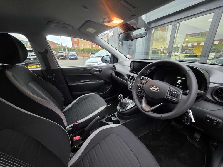 8" Touchscreen satellite navigation including mapcare and LIVE services, Apple car play/Android Auto, Bluelink mobile remote connectivity, Bluetooth connectivity with voice recognition, Cruise control, Driver attention alert system, eCall emergency call system, Forward Collision-Avoidance Assist (FCA) - Pedestrian/Cyclist, Full-width 4.2" LCD instrument cluster, Intelligent speed limit assist, Lane departure warning system with lane keep assist - LKAS, Lane follow assist, PAS, Rear parking sensors, Rear view camera with guidelines, Roadside assistance, Start/Stop function, Tailgate, Trip computer, 2 front/2 rear speakers, Front and rear USB-C ports, Front USB connection, Leading vehicle alert (LVA), Steering wheel audio, phone and cruise controls, 1 speed non intermittent rear windscreen wiper, Black finish on B pillars, Body colour door handles, Body coloured bumpers, Body coloured door mirrors, Electric front windows, Electric rear windows, Electrically adjustable and heated door mirrors, Flat metal emblem, Front grille in matte black, Front intermittent wipers, Halogen headlights, Headlights inner with Black Blade design, Heated rear window, High beam assist, Indicator light on door mirrors, LED daytime running lights, Rear roof spoiler with integrated LED brake light, Rear side wing doors, 12v power outlet - front, 3 seat bench in 2nd row, 60/40 split folding flat to floor rear seats, Auto light control, Bottle holders in front/rear doors + front centre console, Cabin and luggage compartment interior lighting, Cloth upholstery, Driver + passenger vanity mirrors, Driver's seat height adjustment, Driver/passenger sunvisors with ticket holders, Floor mats, Front door pockets, Front Head Restraints - Vertical and Horizontal Adjustment, Glove compartment, Height adjustable steering column, Isofix child seat preparation, Leather wrapped steering wheel and gear knob, Manual air conditioning, Rear door pockets, Single front passenger seat, Vertical adjustment rear head restraints, 3x3 point rear seatbelts, Airbags - front, front side and curtain airbags, Anti-lock brake system (ABS), Autonomous emergency braking (AEB) with forward collision warning system, Brake assist function, Childproof rear door locks, Electronic stability control, Front and rear seatbelt reminder, Front seatbelt pretensioners, Hill start assist control (HAC), Passenger airbag deactivate switch, Traction control, Tyre pressure monitoring system, Immobiliser, Perimeter alarm, Rear occupant alert, Remote central locking, Second remote key, Speed sensitive auto door locking, 15" Alloy wheels, Temporary mobility kit (TMK),
